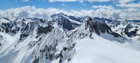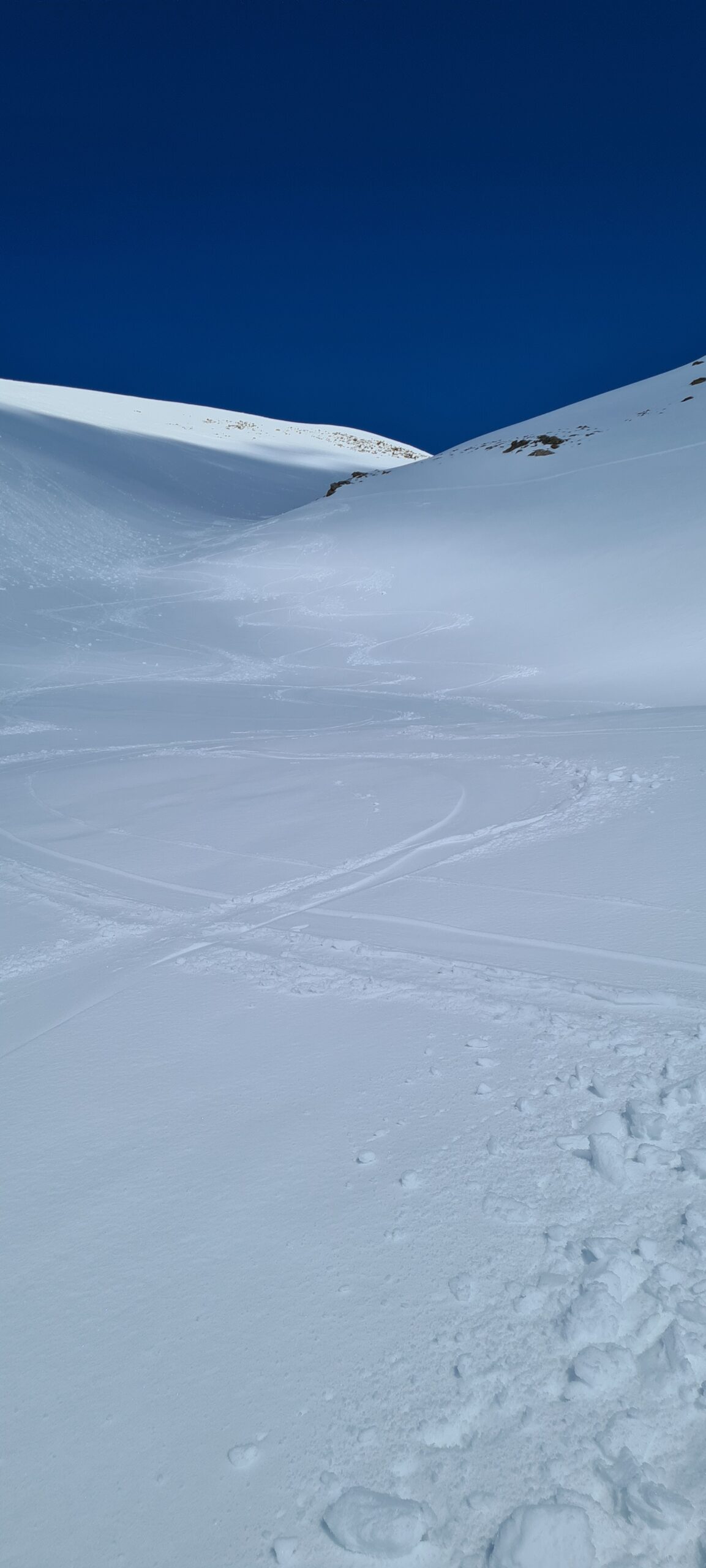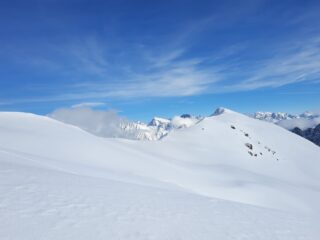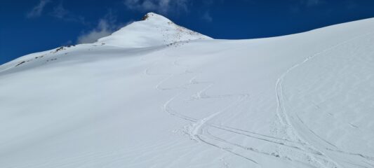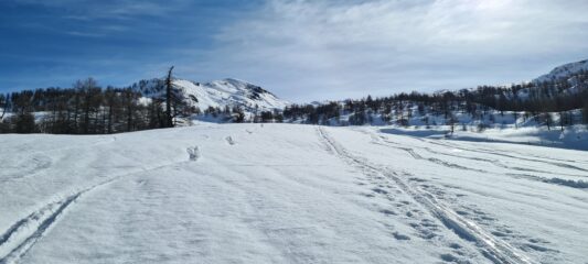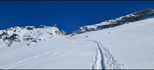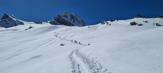 8.30 sci ai piedi. Saliti su ottima traccia fin sotto al Flassin (la cui parte terminale presenta un innevamento eccezionale), quindi svoltato a dx per…
