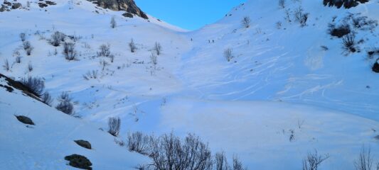 Partiti alle 7.30 dal parcheggio davanti al Rifugio Melezè, sci ai piedi (manca solo sui due ponticelli). Anto è salito da dx, trovando il percorso malagevole.…