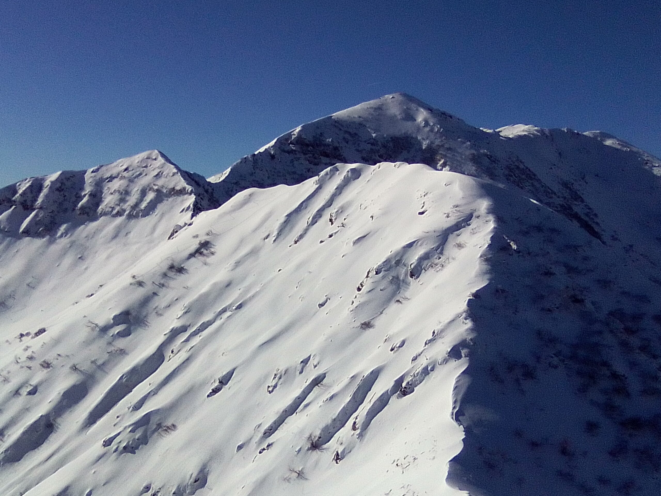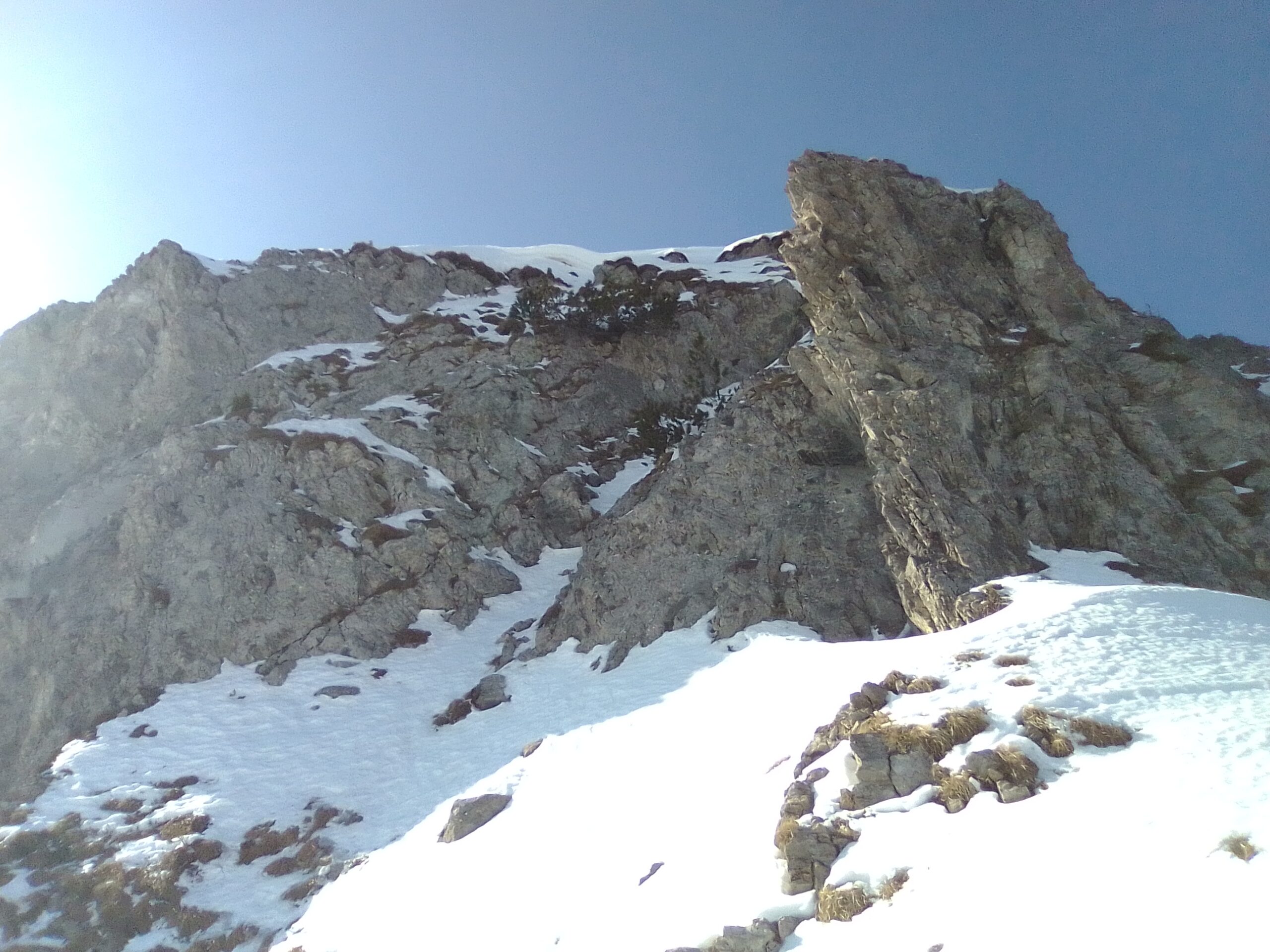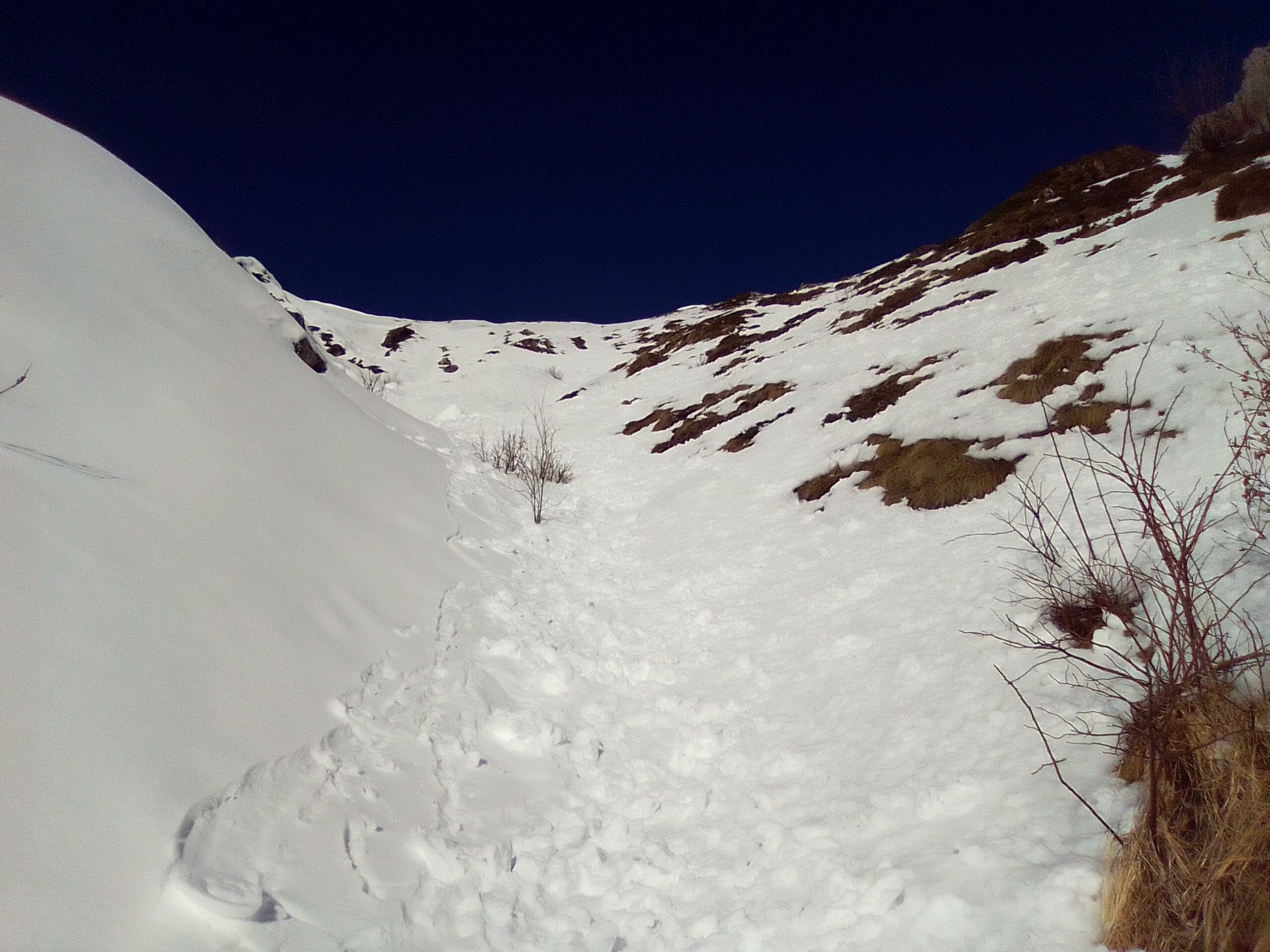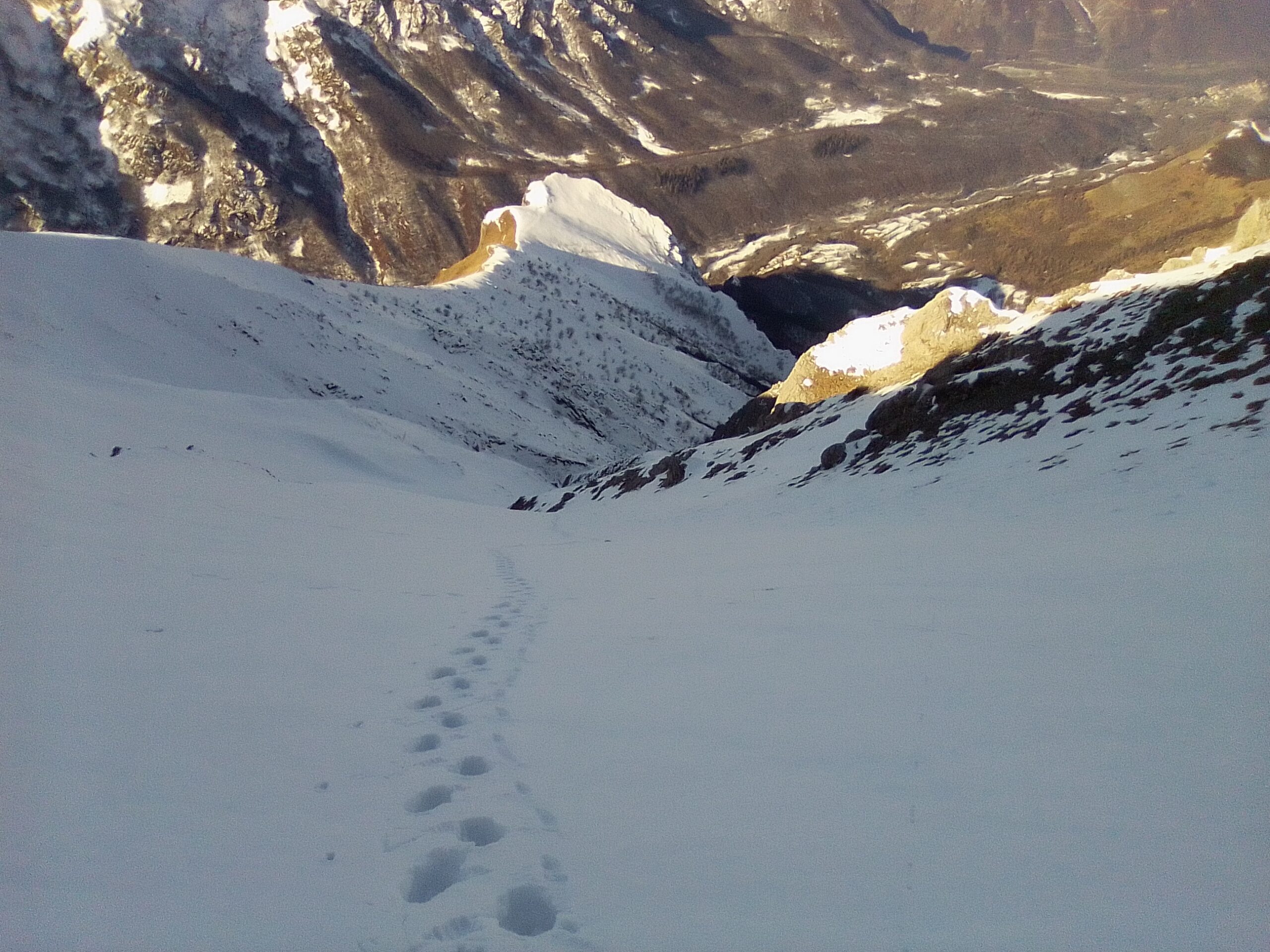| luciano66 | Il canale ben innevato | luciano66 | La breve parte ripida fatta con la picca | luciano66 | La stessa vista dall'alto | luciano66 | La ripida rampa all'uscita del canale | luciano66 | Il facile traverso oltre la rampa per accedere ai pendii superiori | luciano66 | Pendio finale con la vetta a sx | luciano66 | Ultimi metri | luciano66 | Le due punte della vetta | luciano66 | Bella neve in discesa; pelato il pendio sopra Forte Giaura, dove passa il sentiero estivo | luciano66 | In discesa i pendii bassi; non abbondante, ma niente male