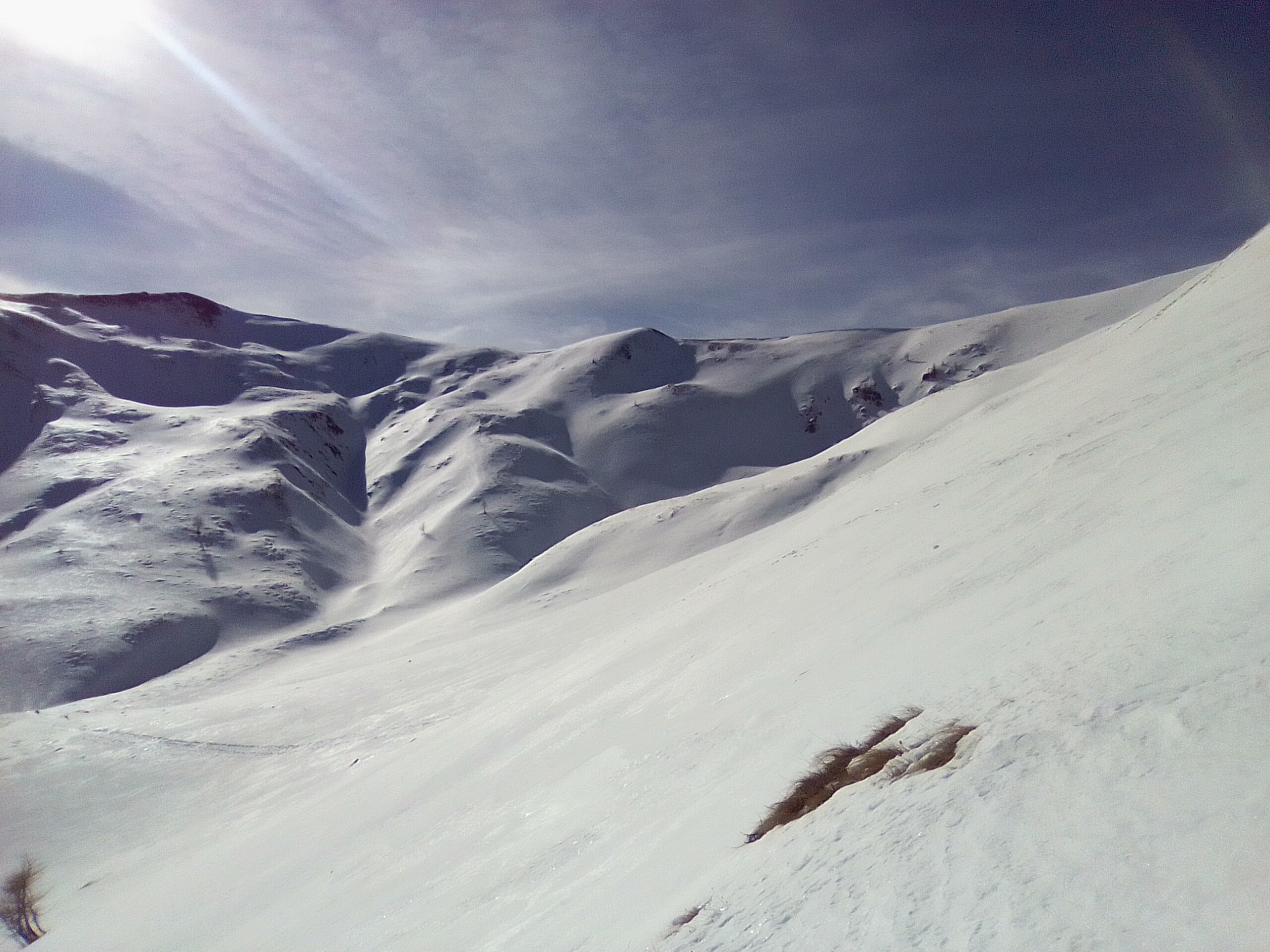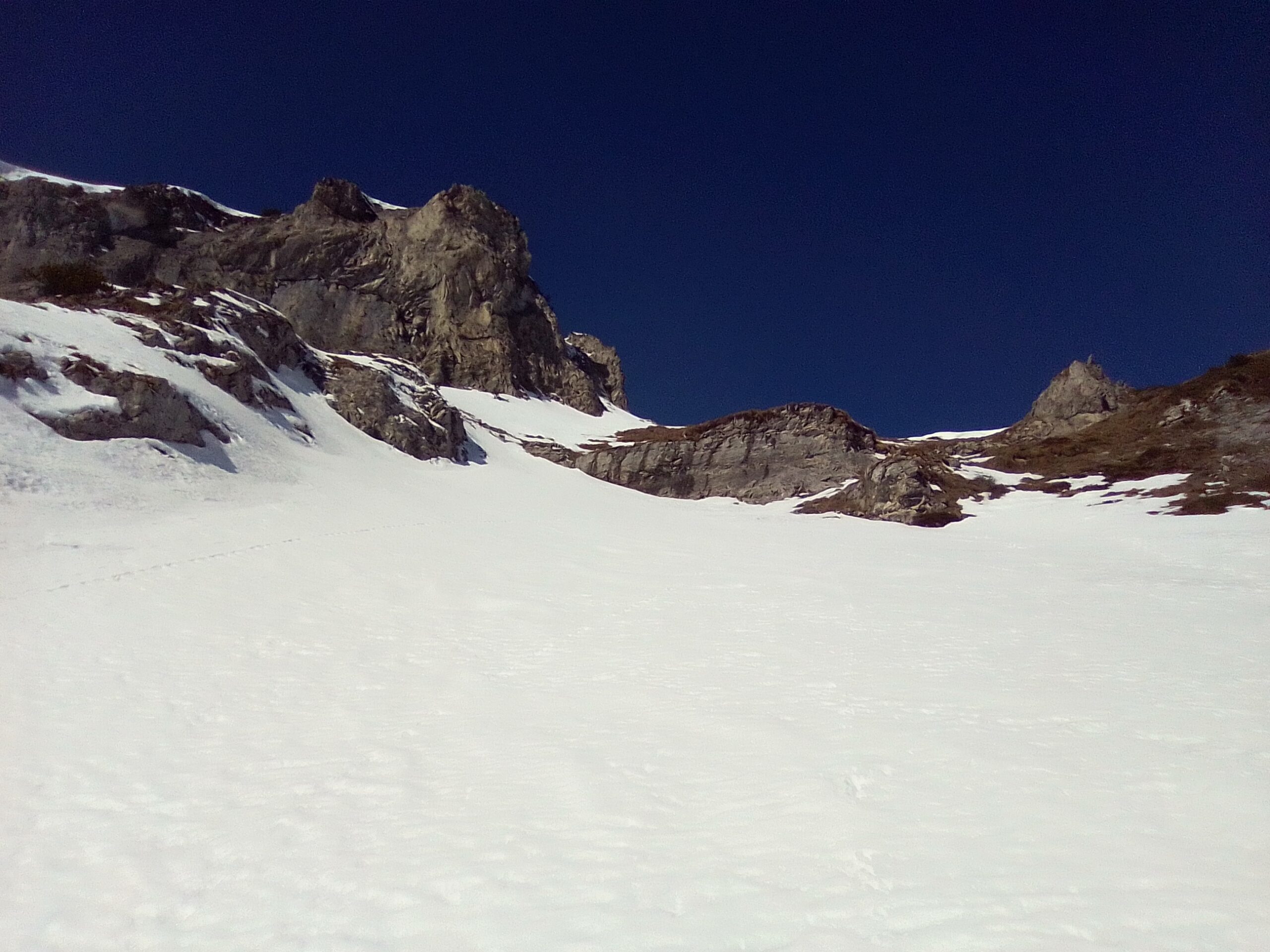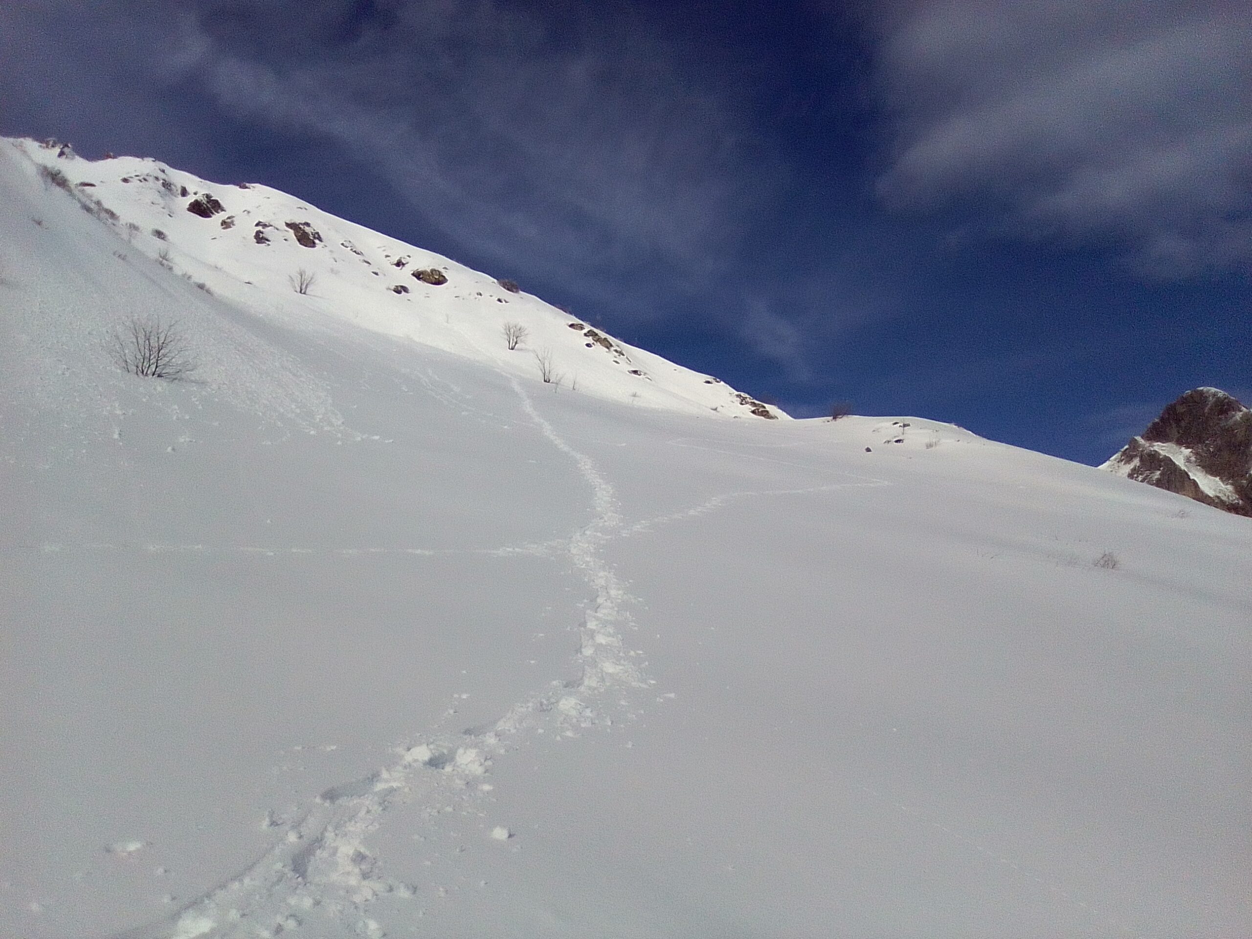 | luciano66 | Il canale ben innevato | luciano66 | La breve parte ripida fatta con la picca | luciano66 | La stessa vista dall'alto | luciano66 | La ripida rampa all'uscita del canale | luciano66 | Il facile traverso oltre la rampa per accedere ai pendii superiori | luciano66 | Pendio finale con la vetta a sx | luciano66 | Ultimi metri | luciano66 | Le due punte della vetta | luciano66 | Bella neve in discesa; pelato il pendio sopra Forte Giaura, dove passa il sentiero estivo | luciano66 | In discesa i pendii bassi; non abbondante, ma niente male