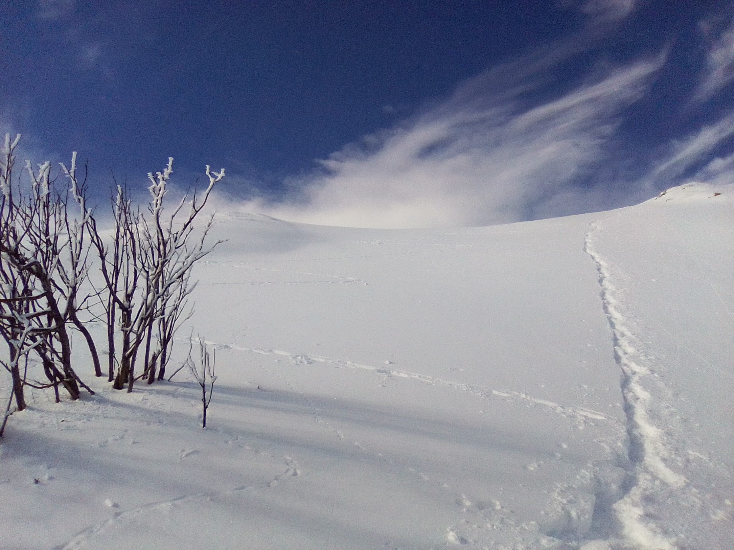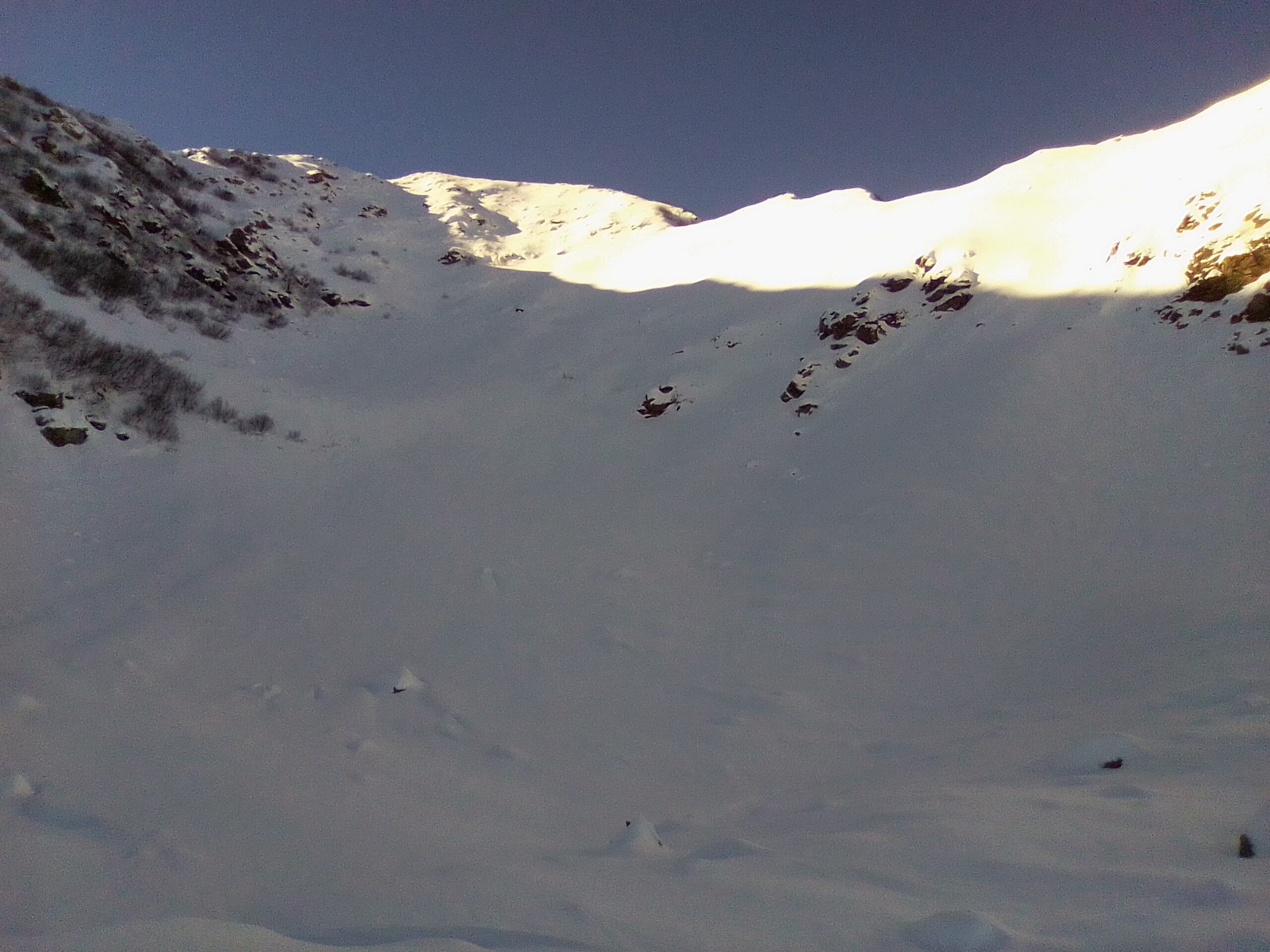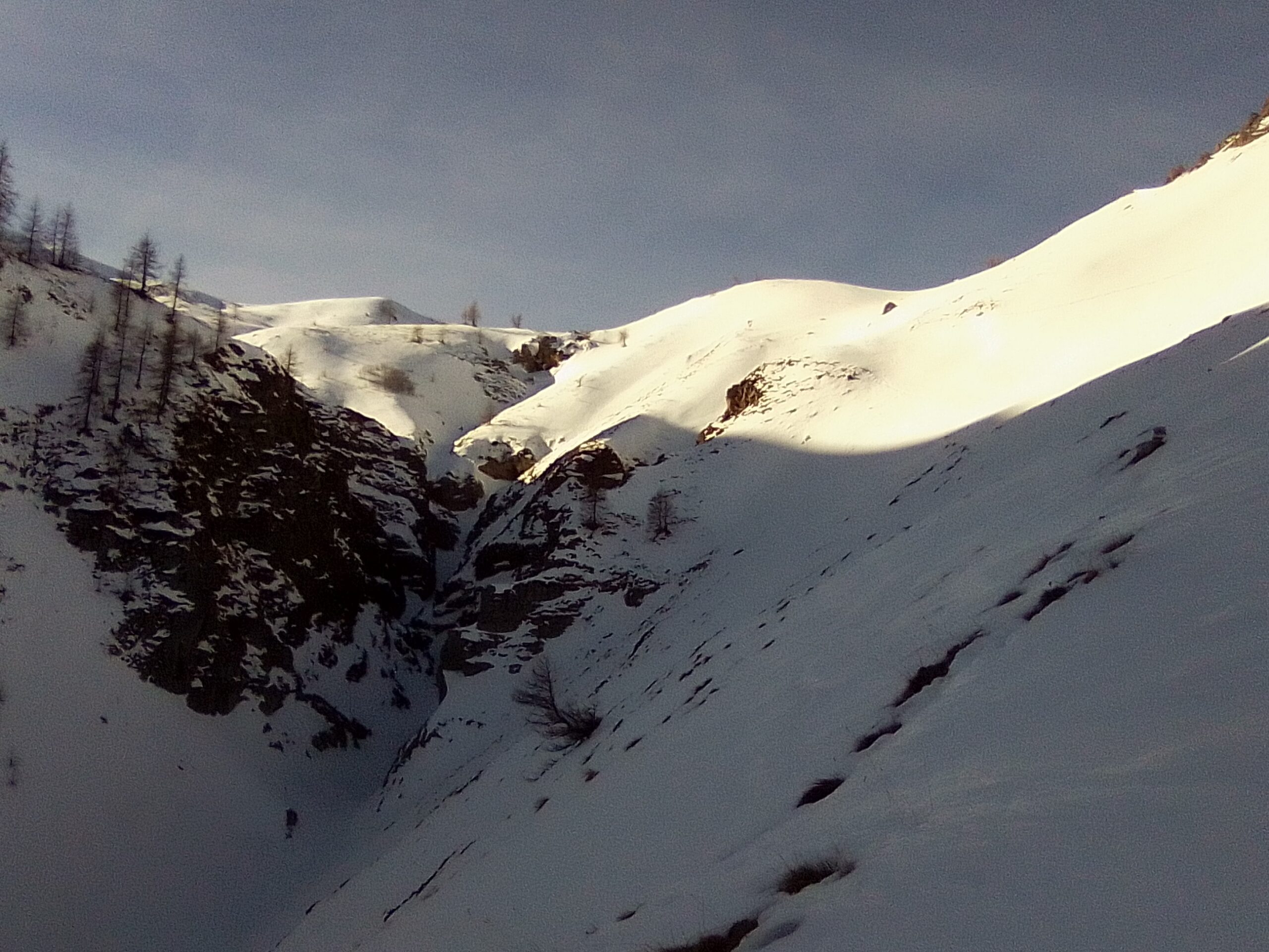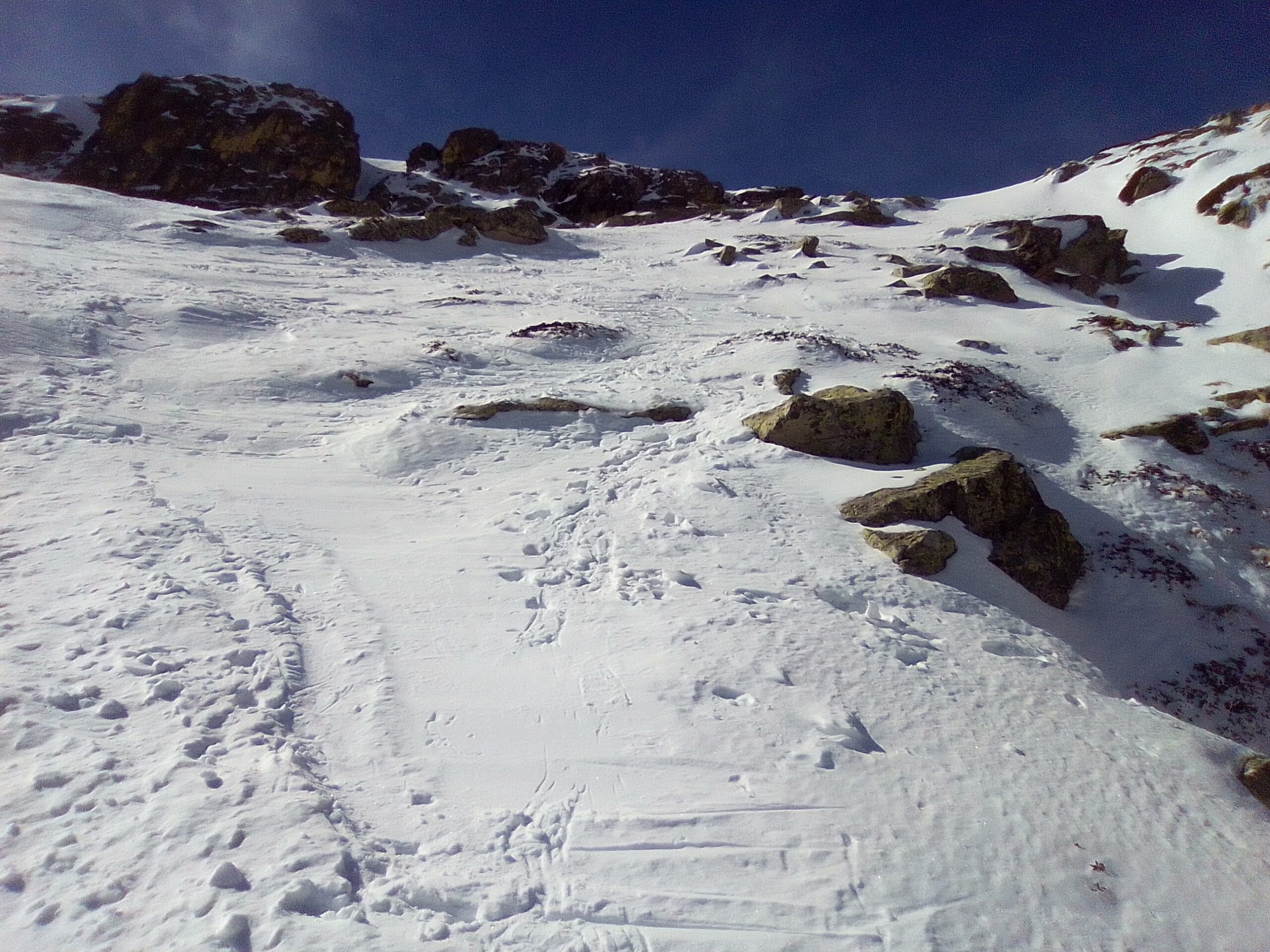 | luciano66 | Il canale ben innevato | luciano66 | La breve parte ripida fatta con la picca | luciano66 | La stessa vista dall'alto | luciano66 | La ripida rampa all'uscita del canale | luciano66 | Il facile traverso oltre la rampa per accedere ai pendii superiori | luciano66 | Pendio finale con la vetta a sx | luciano66 | Ultimi metri | luciano66 | Le due punte della vetta | luciano66 | Bella neve in discesa; pelato il pendio sopra Forte Giaura, dove passa il sentiero estivo | luciano66 | In discesa i pendii bassi; non abbondante, ma niente male