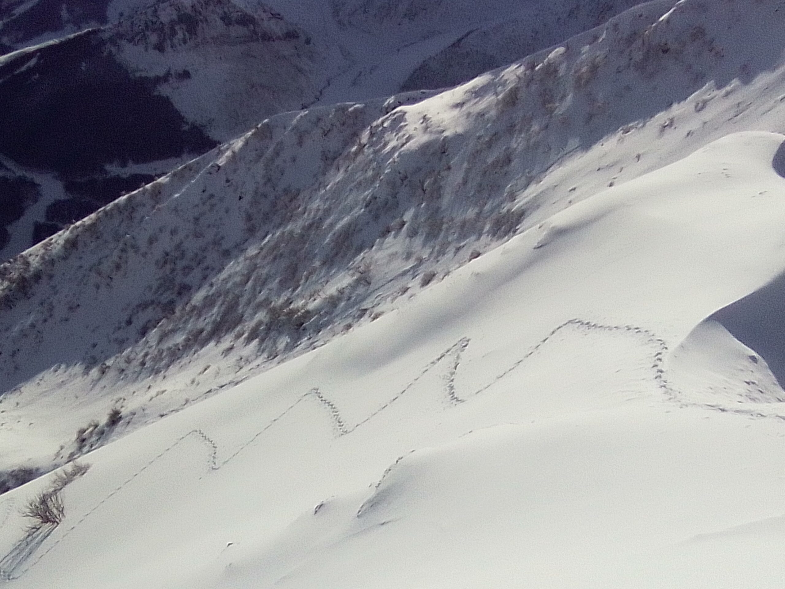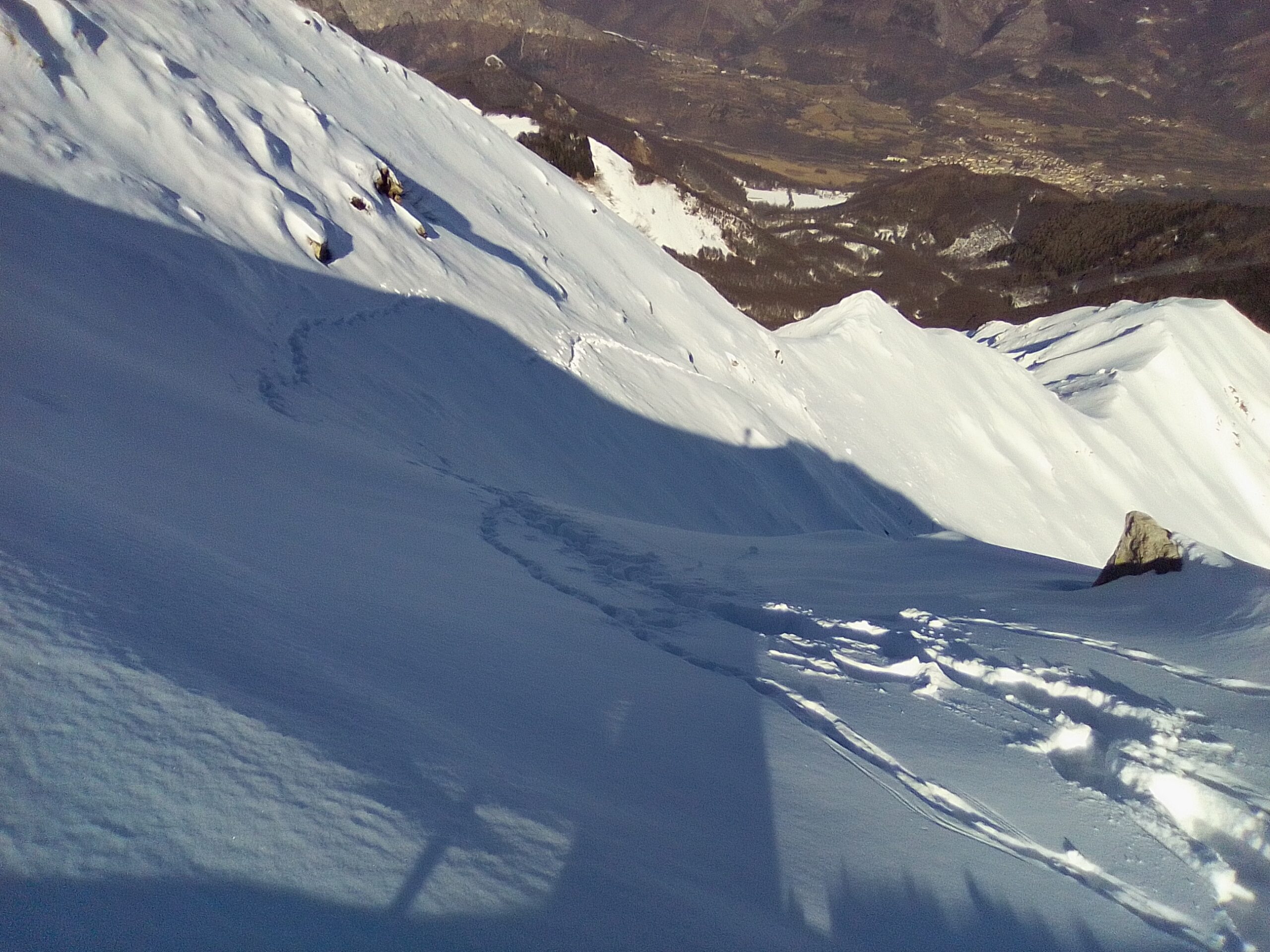 | luciano66 | Condizioni dalla Grangia Lunga | luciano66 | Sguardo indietro verso la Gr. Lunga | luciano66 | Vetta | luciano66 | Il breve tratto delicato sotto la croce | luciano66 | Poi tutto facile | luciano66 | Visto da sotto (in farina compressa) | luciano66 | Il traverso alto del sentiero estivo | luciano66 | Uscendo dalle barricate: io salito a dx e sceso a sx | luciano66 | Pian Ceiol e Rocca Senghi