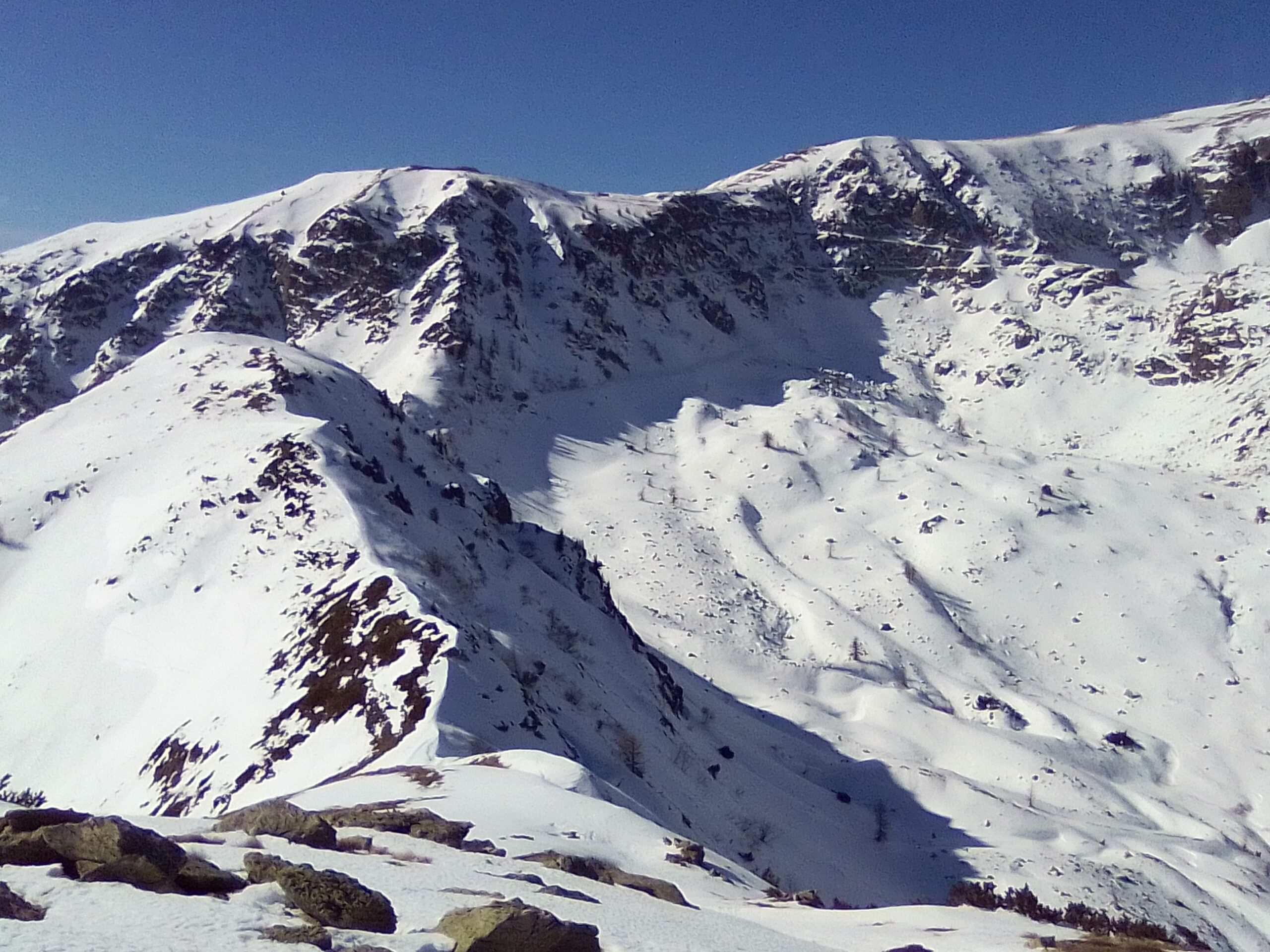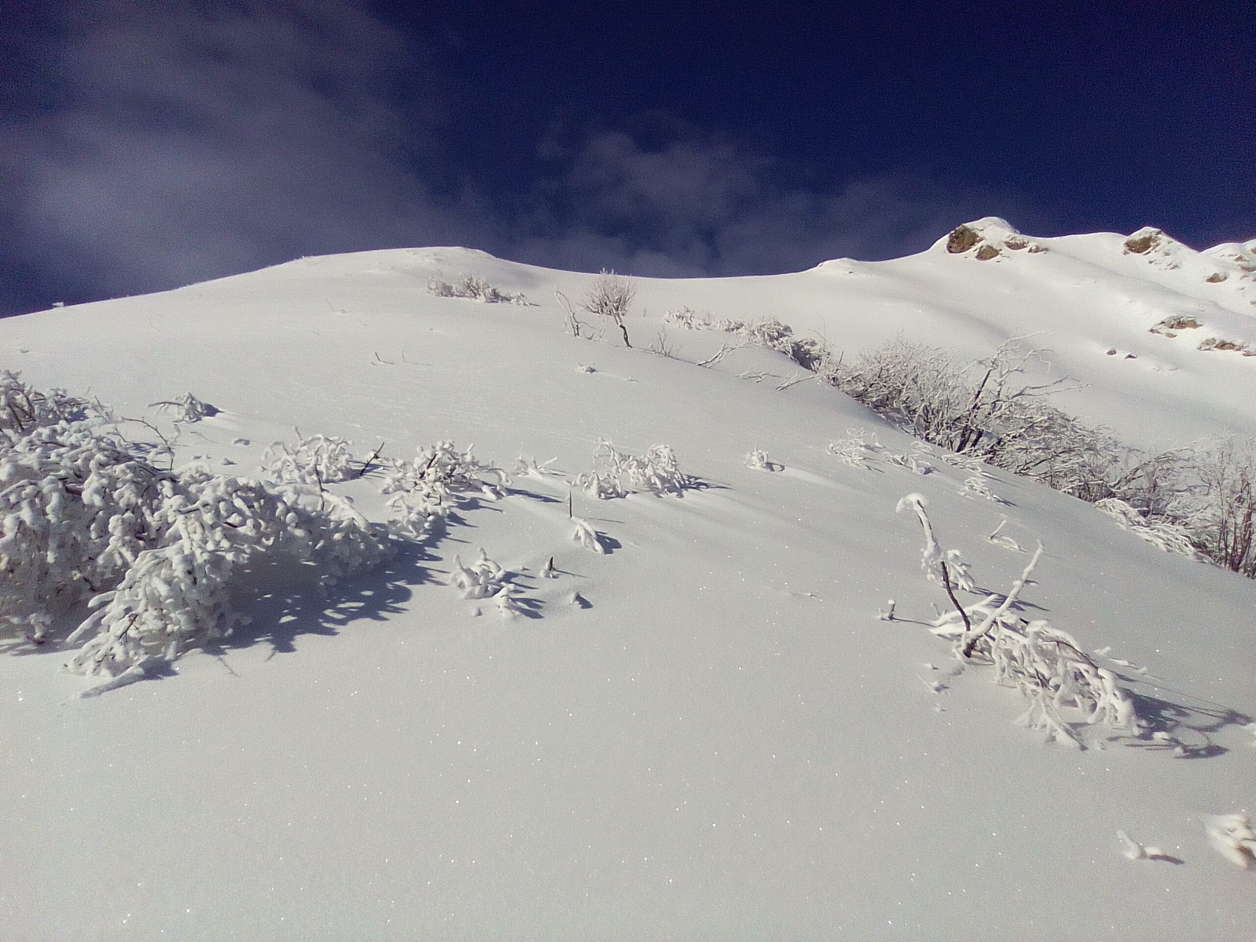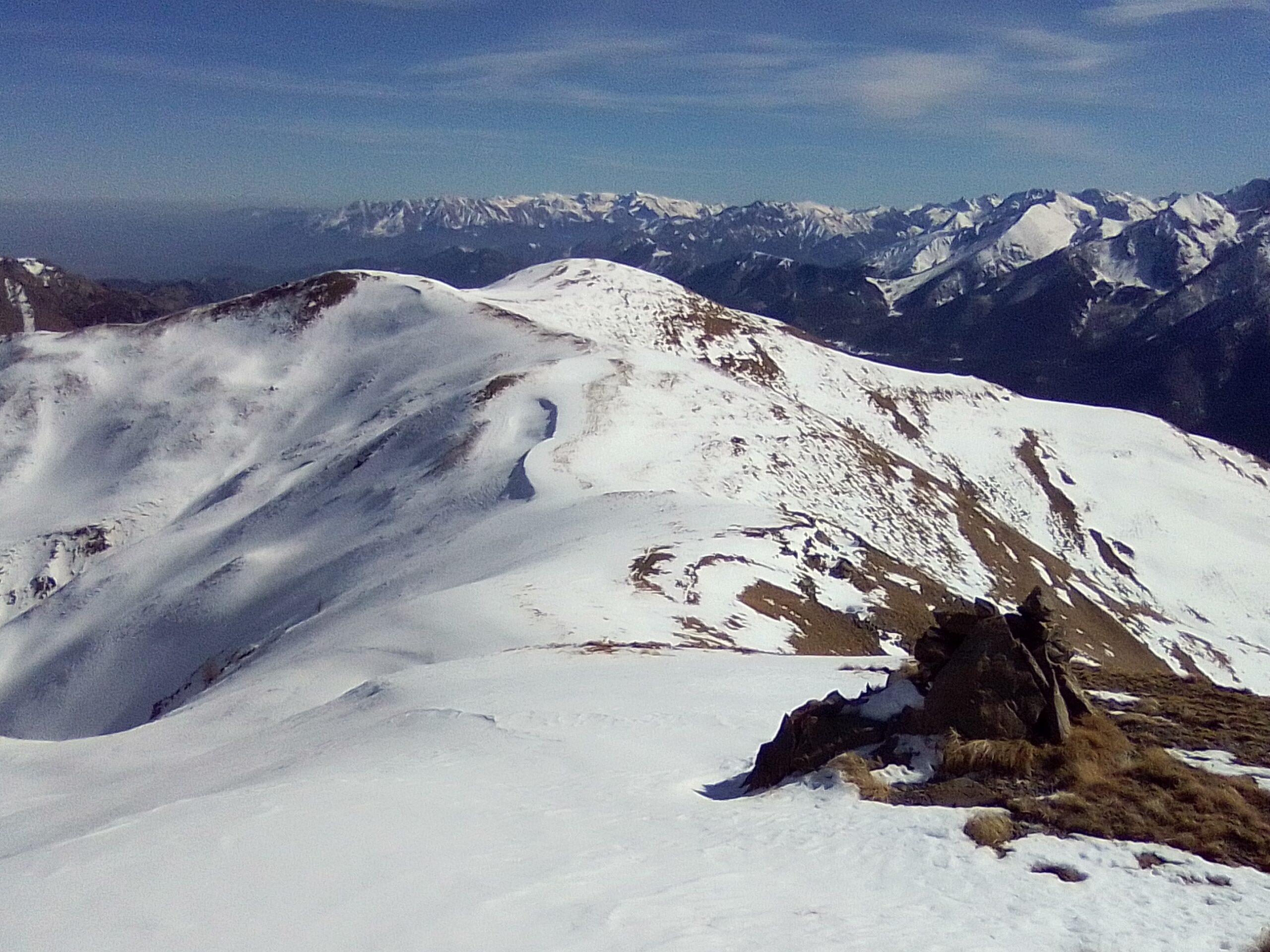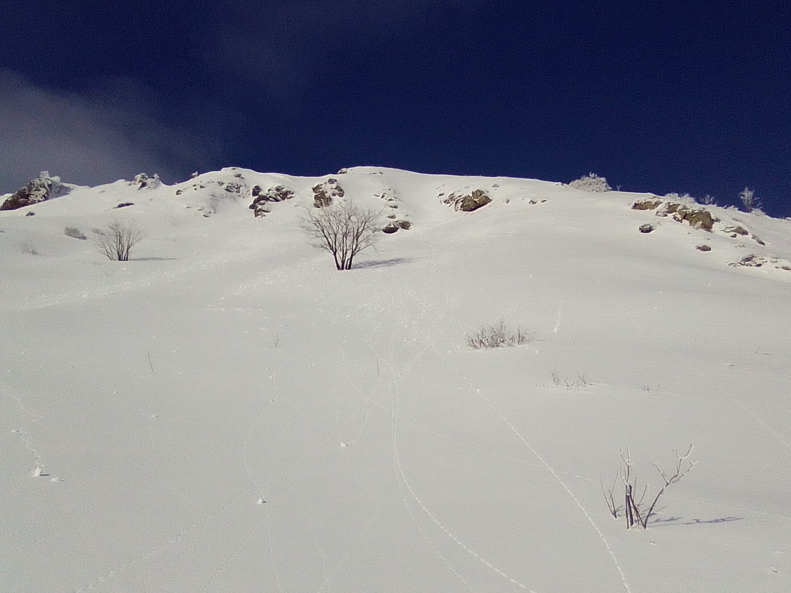 | luciano66 | Pendio finale con la vetta a sx | luciano66 | Ultimi metri | luciano66 | Le due punte della vetta | luciano66 | Bella neve in discesa; pelato il pendio sopra Forte Giaura, dove passa il sentiero estivo | luciano66 | In discesa i pendii bassi; non abbondante, ma niente male | luciano66 | Tornate a quota 1500 dove si passa sul versante opposto | luciano66 | Gias Serour 1813m | luciano66 | Dalla sella 1960m il percorso; in alto a sx il Colle Morina | luciano66 | Il traverso su pendio ripido verso il masso isolato | luciano66 | Il masso con la targa | luciano66 | Dopo il masso pendii più facili verso Colle Morina | luciano66 | Vetta | luciano66 | Pendio sommitale sud senza neve | luciano66 | Ometto grande e Colle Morina poco sotto | luciano66 | Il traverso ripido in discesa; al centro a sx la sella 1960