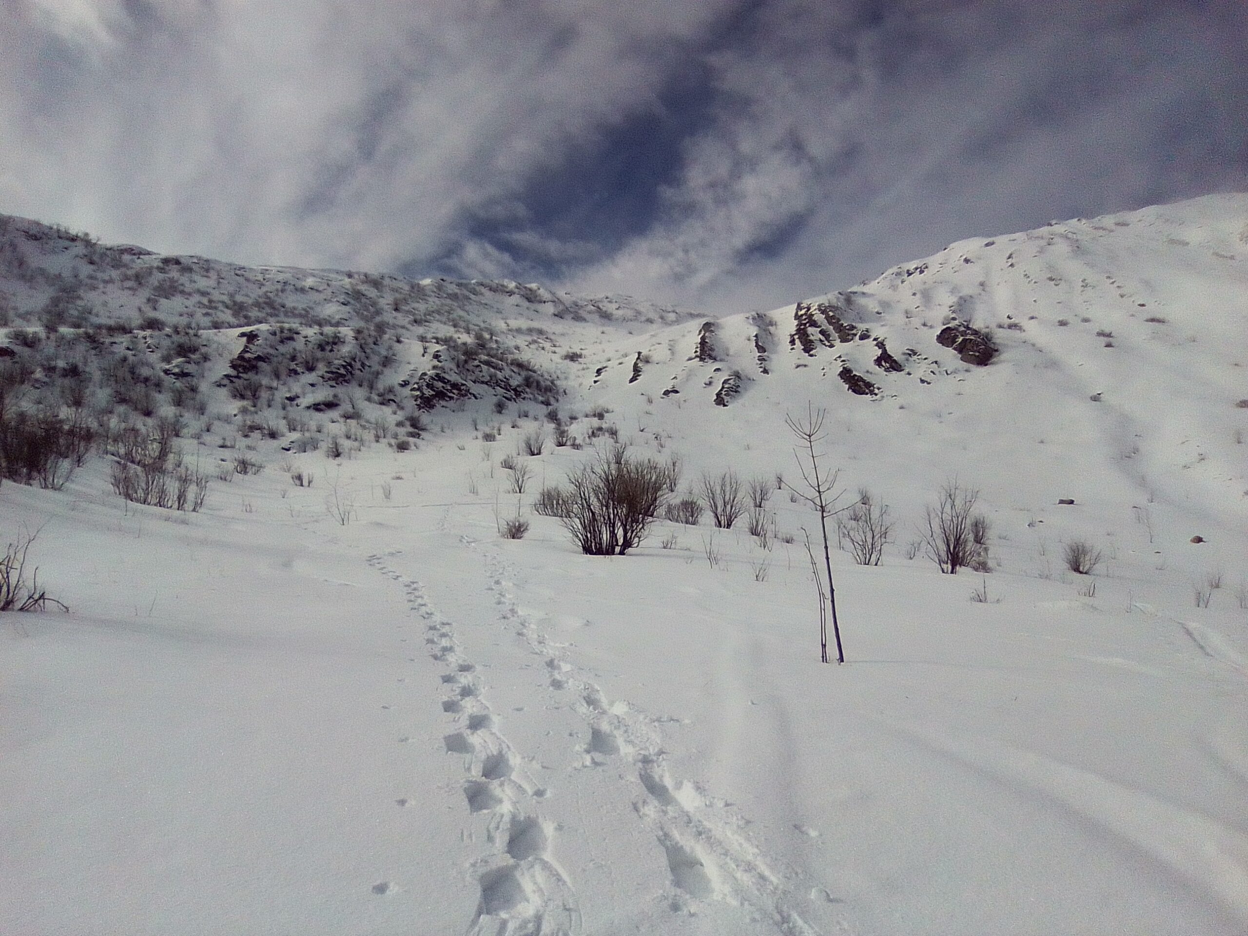 | luciano66 | Salendo nella gorgia | luciano66 | Inizio del traverso | luciano66 | In pieno pendio ovest | luciano66 | Pendio ovest verso valle | luciano66 | Vetta | luciano66 | Dal Pianard: a sx il versante ovest di salita, a dx la cresta classica in discesa | luciano66 | Innevamento continuo dal parcheggio fino al Pianard