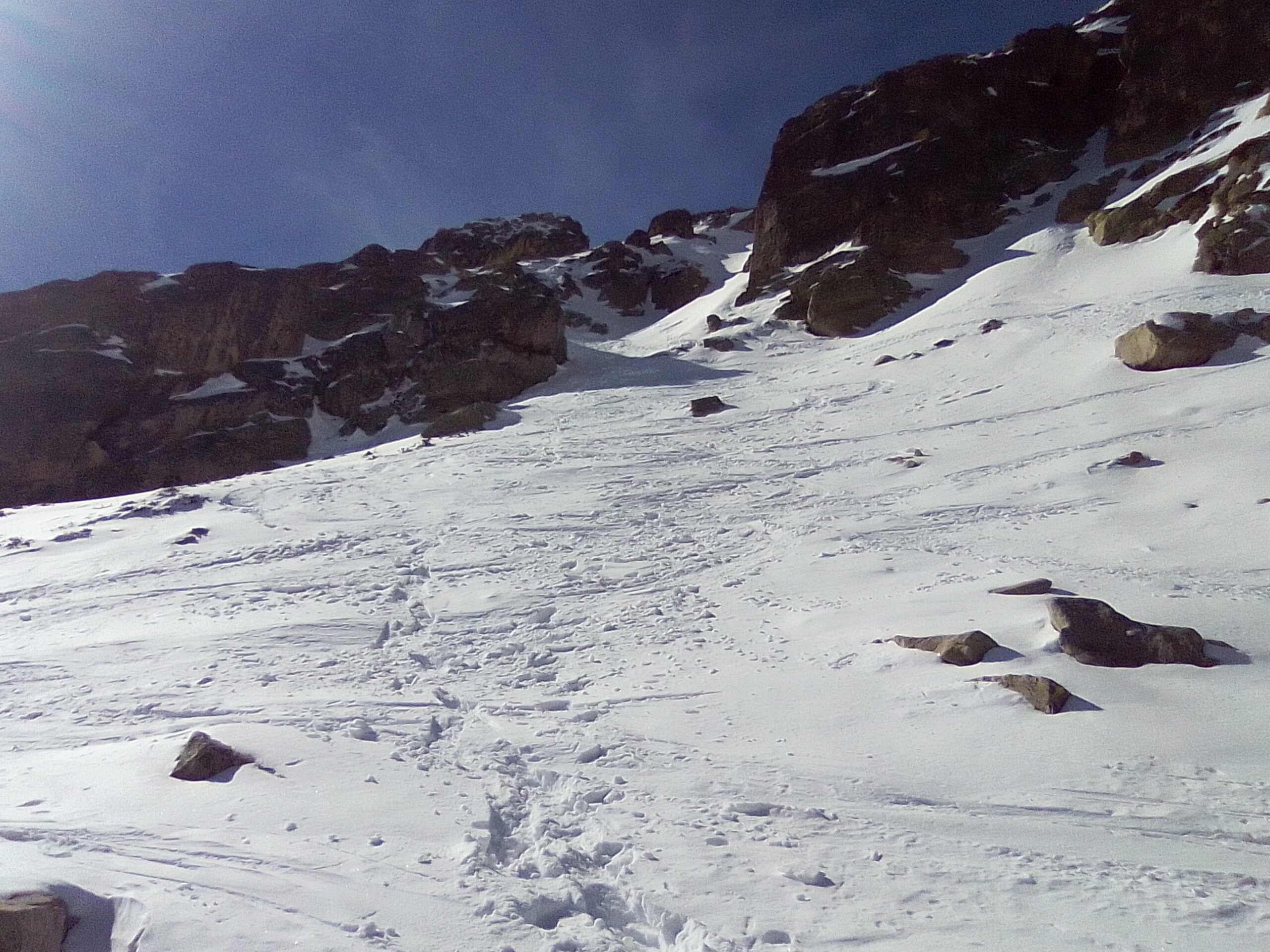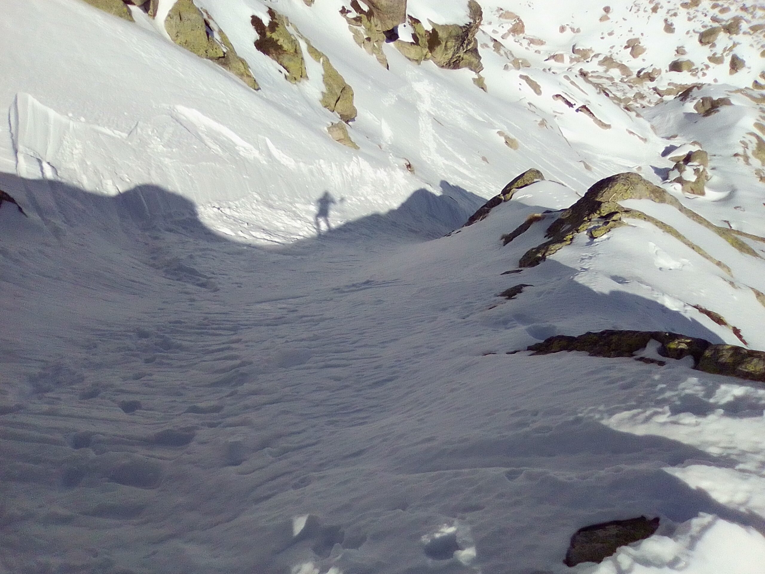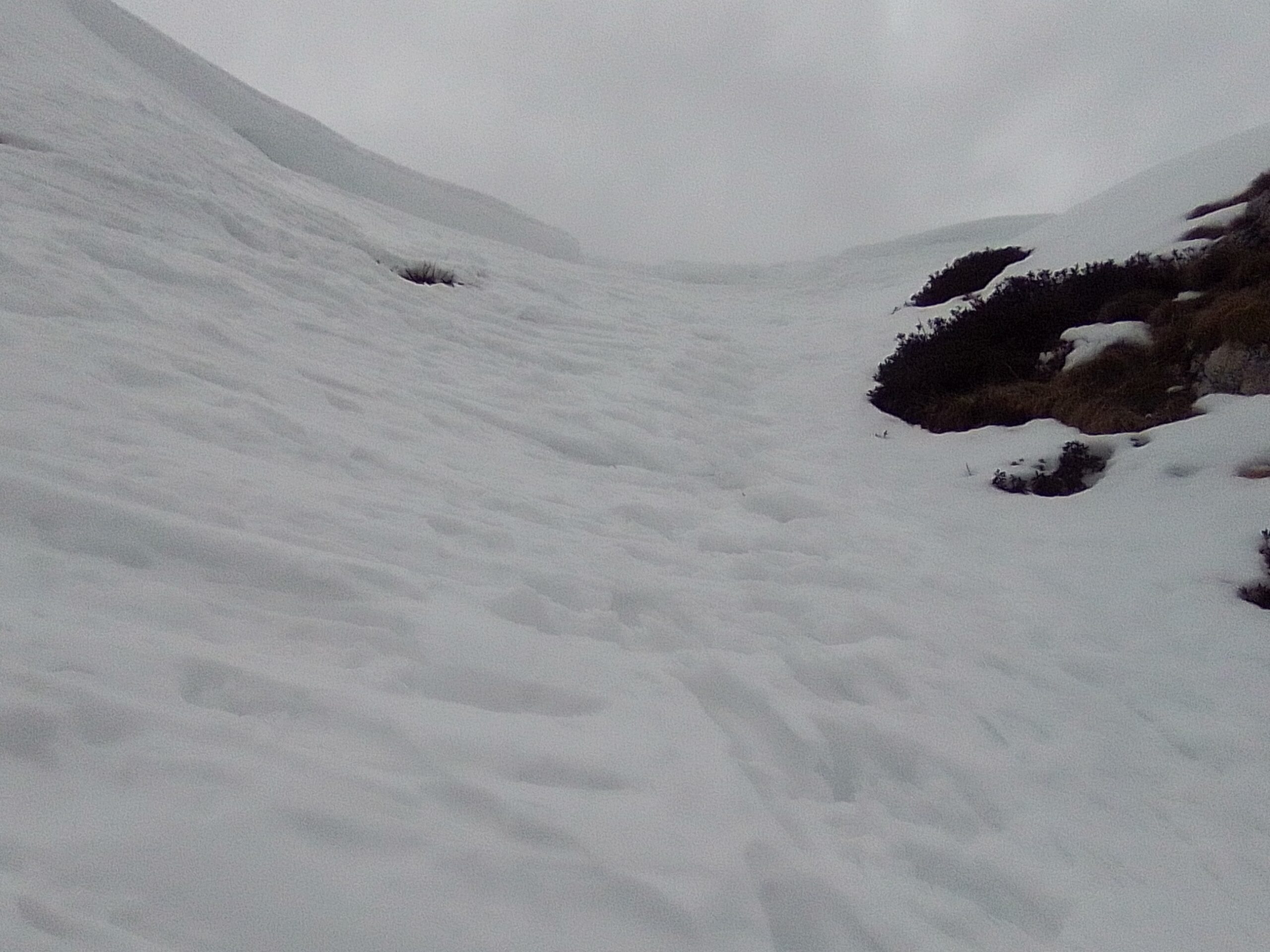 | luciano66 | Verso la parte alta | luciano66 | A monte delle cornici | luciano66 | Tratto finale con aria a folate | luciano66 | Vetta | luciano66 | La cresta percorsa vista dalla vetta | luciano66 | Il canale NE in sx or in discesa, con bella neve | luciano66 | Tornando sull'altipiano e vista verso il Bec du Lievre | luciano66 | Colla Bauzano | luciano66 | A dx la classica via normale, a sx il versante nord dai pressi dell'inghiottitoio | luciano66 | Verso il canale, tutto tracciato fino all'uscita | luciano66 | La strettoia | luciano66 | Condizioni strettoia | luciano66 | Vista da sopra | luciano66 | Pendio finale oltre la strettoia | luciano66 | Uscita in cresta