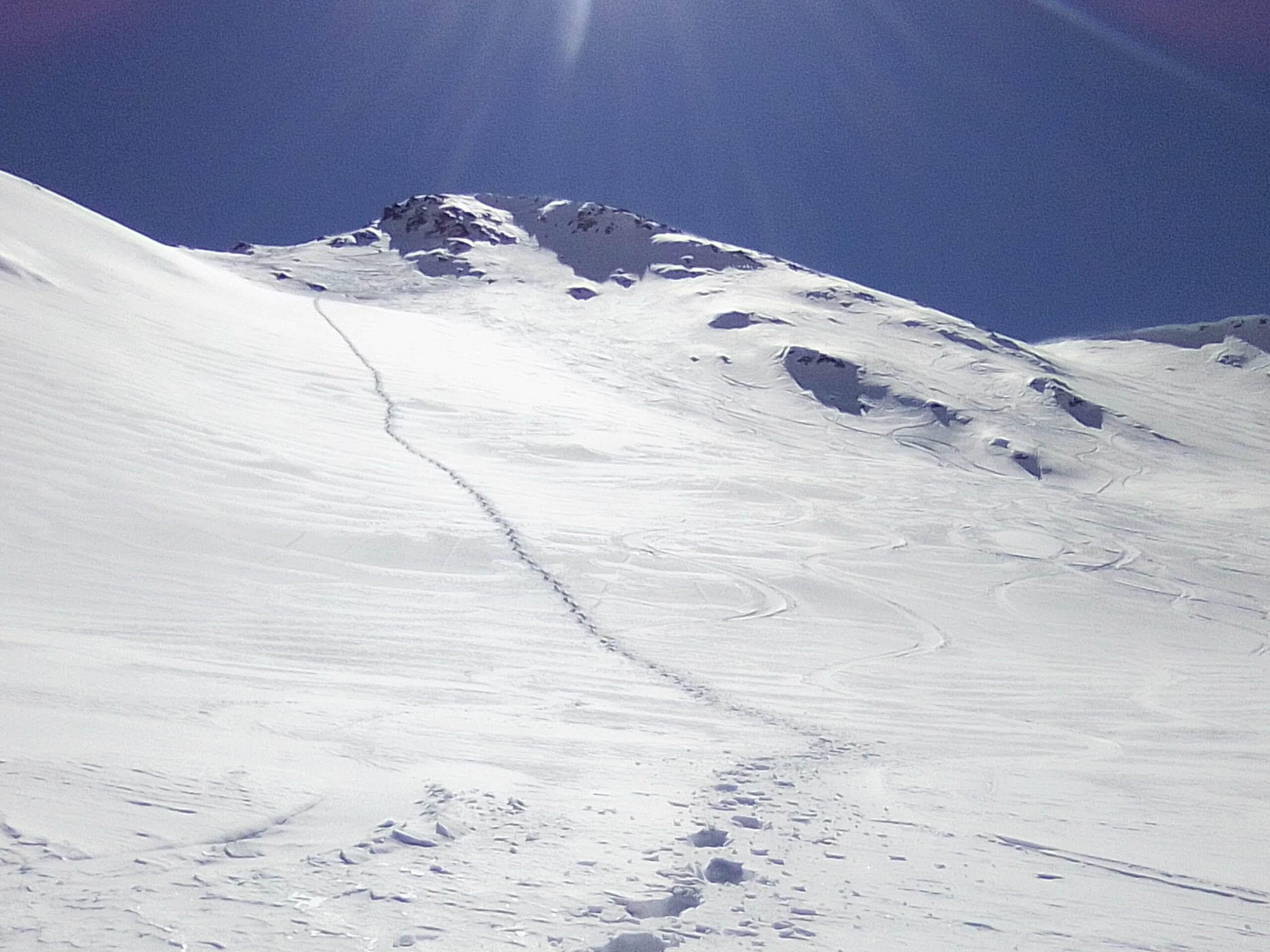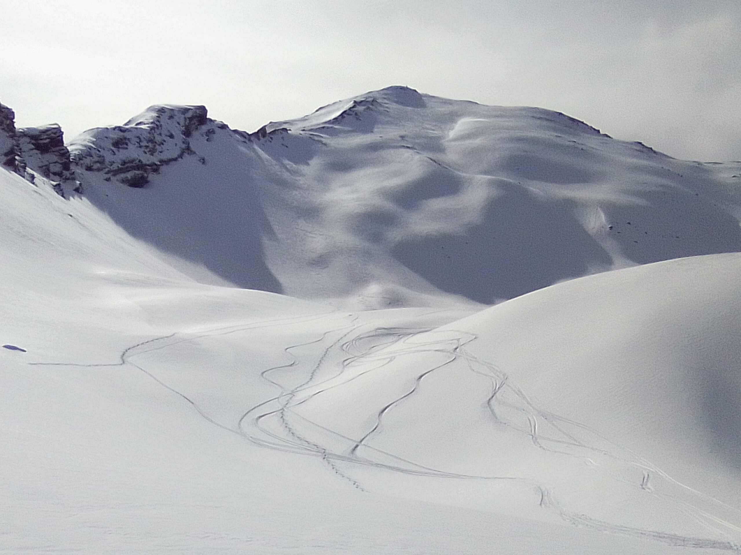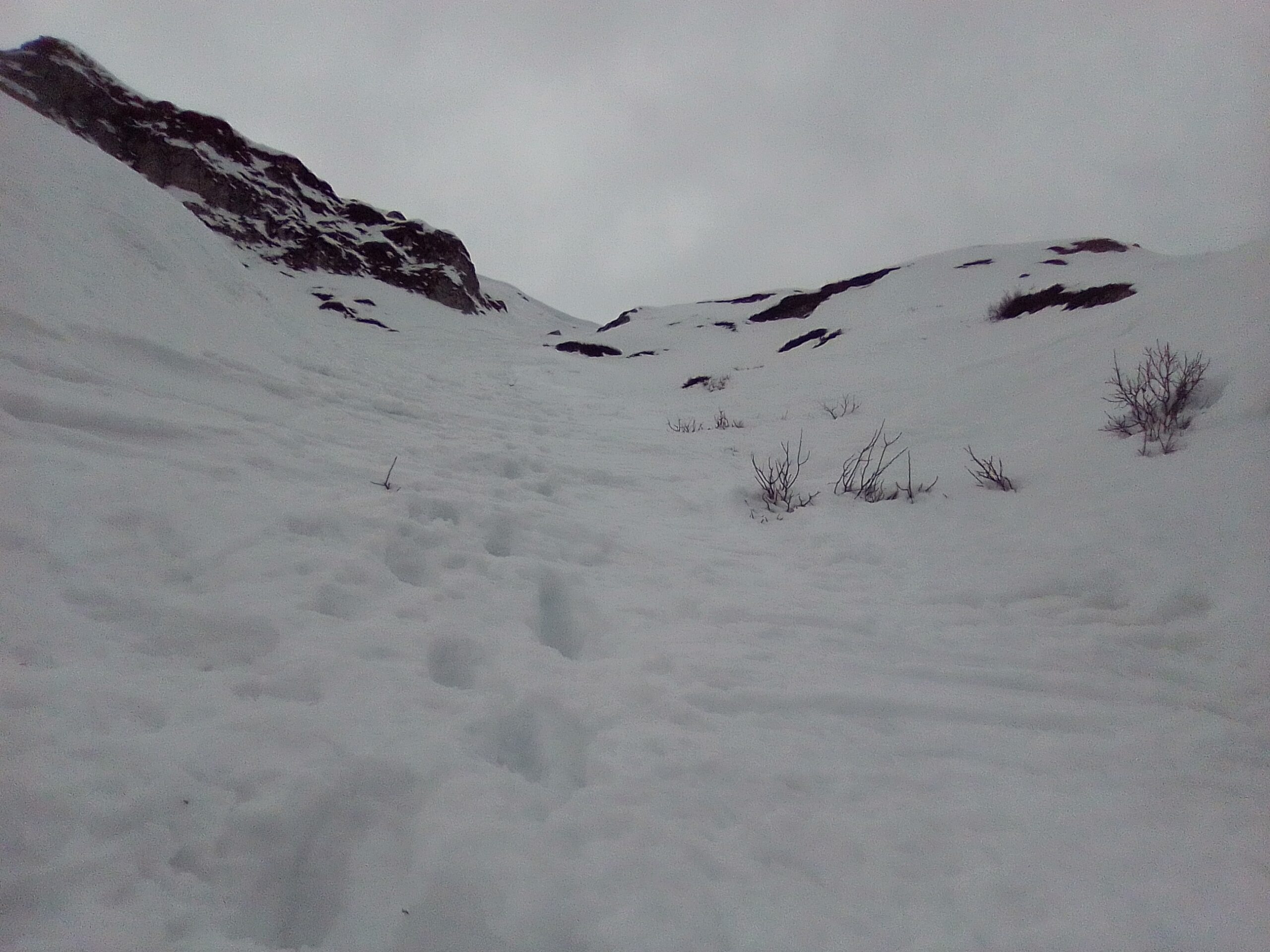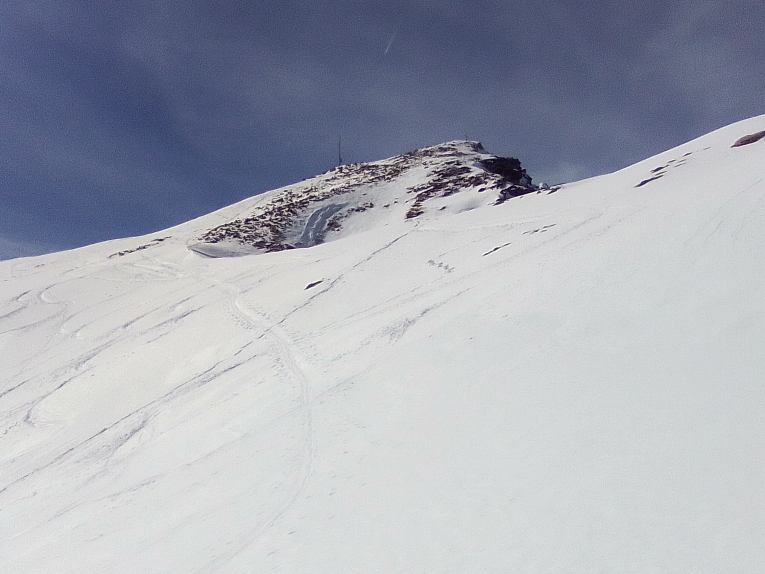 | luciano66 | Verso la parte alta | luciano66 | A monte delle cornici | luciano66 | Tratto finale con aria a folate | luciano66 | Vetta | luciano66 | La cresta percorsa vista dalla vetta | luciano66 | Il canale NE in sx or in discesa, con bella neve | luciano66 | Tornando sull'altipiano e vista verso il Bec du Lievre | luciano66 | Colla Bauzano | luciano66 | A dx la classica via normale, a sx il versante nord dai pressi dell'inghiottitoio | luciano66 | Verso il canale, tutto tracciato fino all'uscita | luciano66 | La strettoia | luciano66 | Condizioni strettoia | luciano66 | Vista da sopra | luciano66 | Pendio finale oltre la strettoia | luciano66 | Uscita in cresta