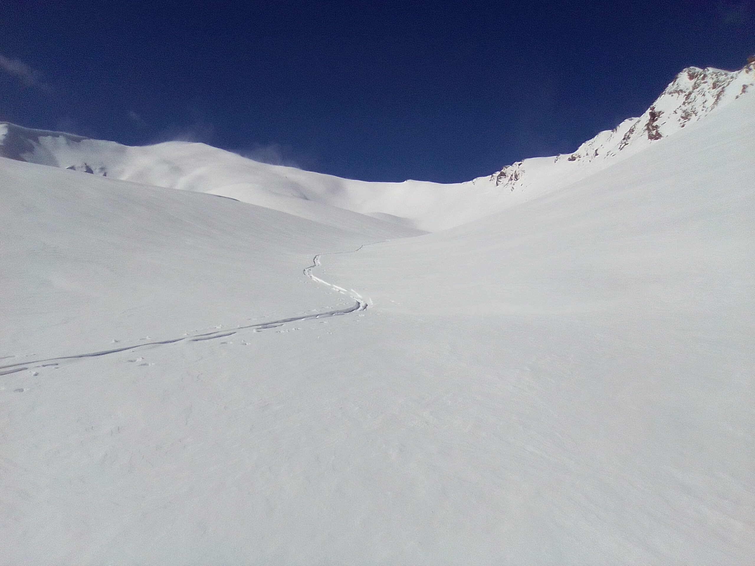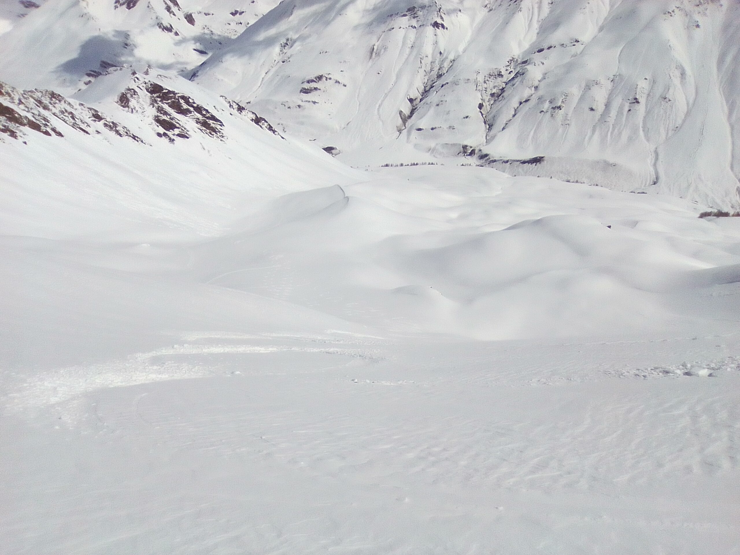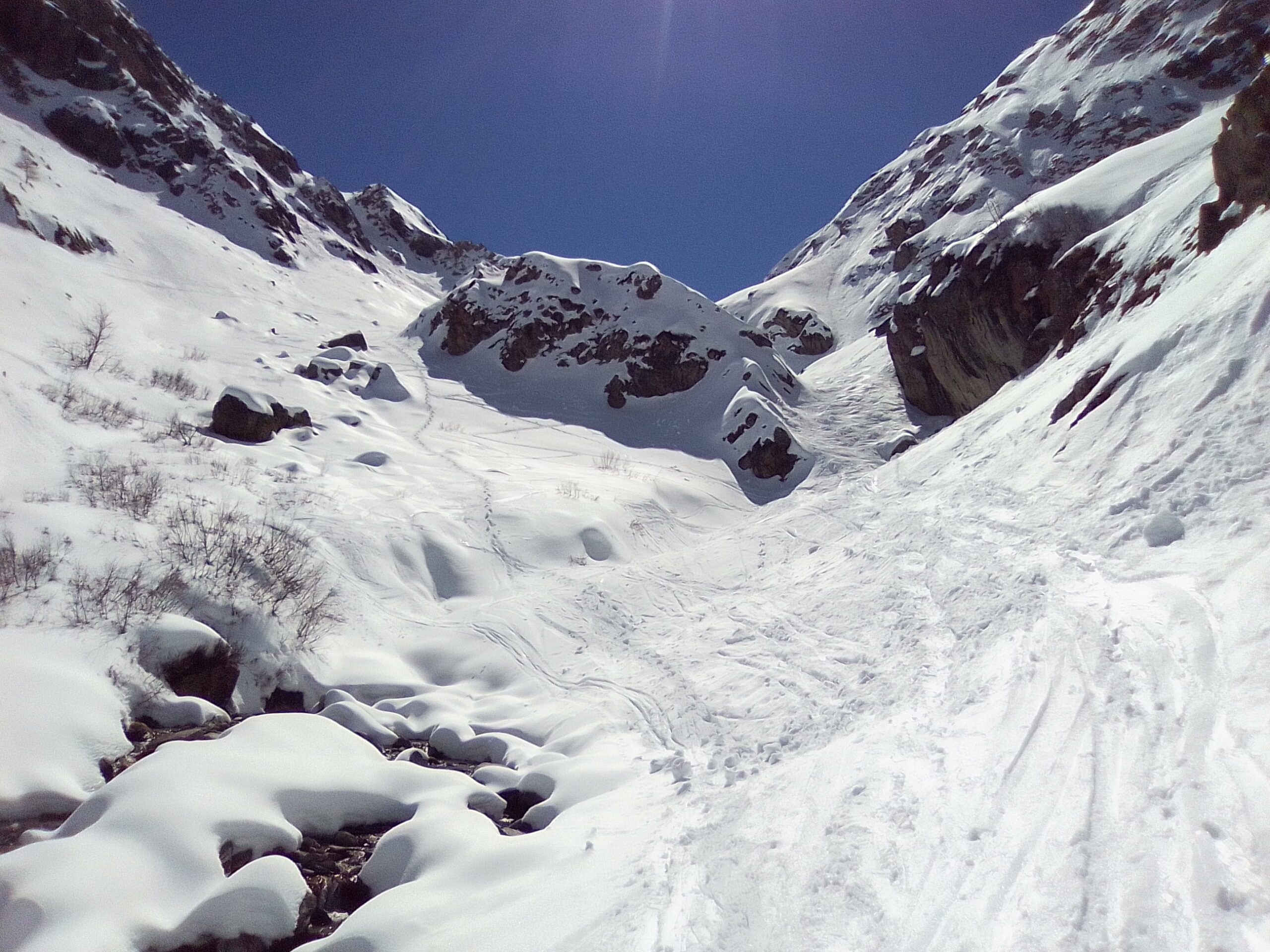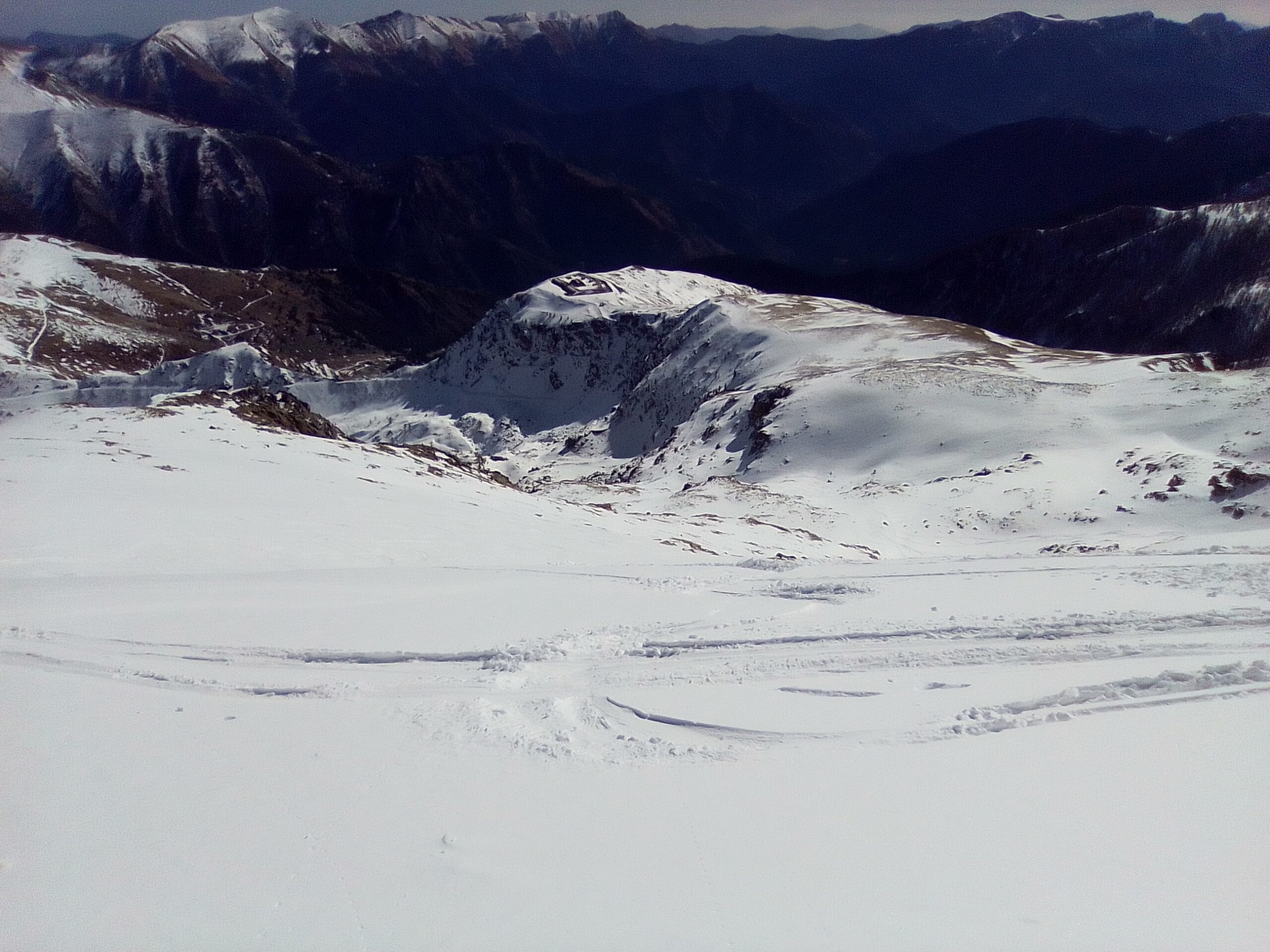 | luciano66 | Vista sulla Crete de Parassac | luciano66 | Il percorso di salita dalla breche della Crete des Bals (a sx) | luciano66 | La breche da cui sono salito | luciano66 | A sx si intravede la breche di salita; discesa sul pendio centrale su neve spettacolare | luciano66 | Tornando alla Cabane de Courrouit (in basso a dx); in alto a sx il Bec de l'Aigle e il Pic de Chamois | luciano66 | Salendo nella gorgia | luciano66 | Inizio del traverso | luciano66 | In pieno pendio ovest | luciano66 | Pendio ovest verso valle | luciano66 | Vetta | luciano66 | Dal Pianard: a sx il versante ovest di salita, a dx la cresta classica in discesa | luciano66 | Innevamento continuo dal parcheggio fino al Pianard | luciano66 | Entrando sull'altipiano | luciano66 | Il canale | luciano66 | Canale parte alta