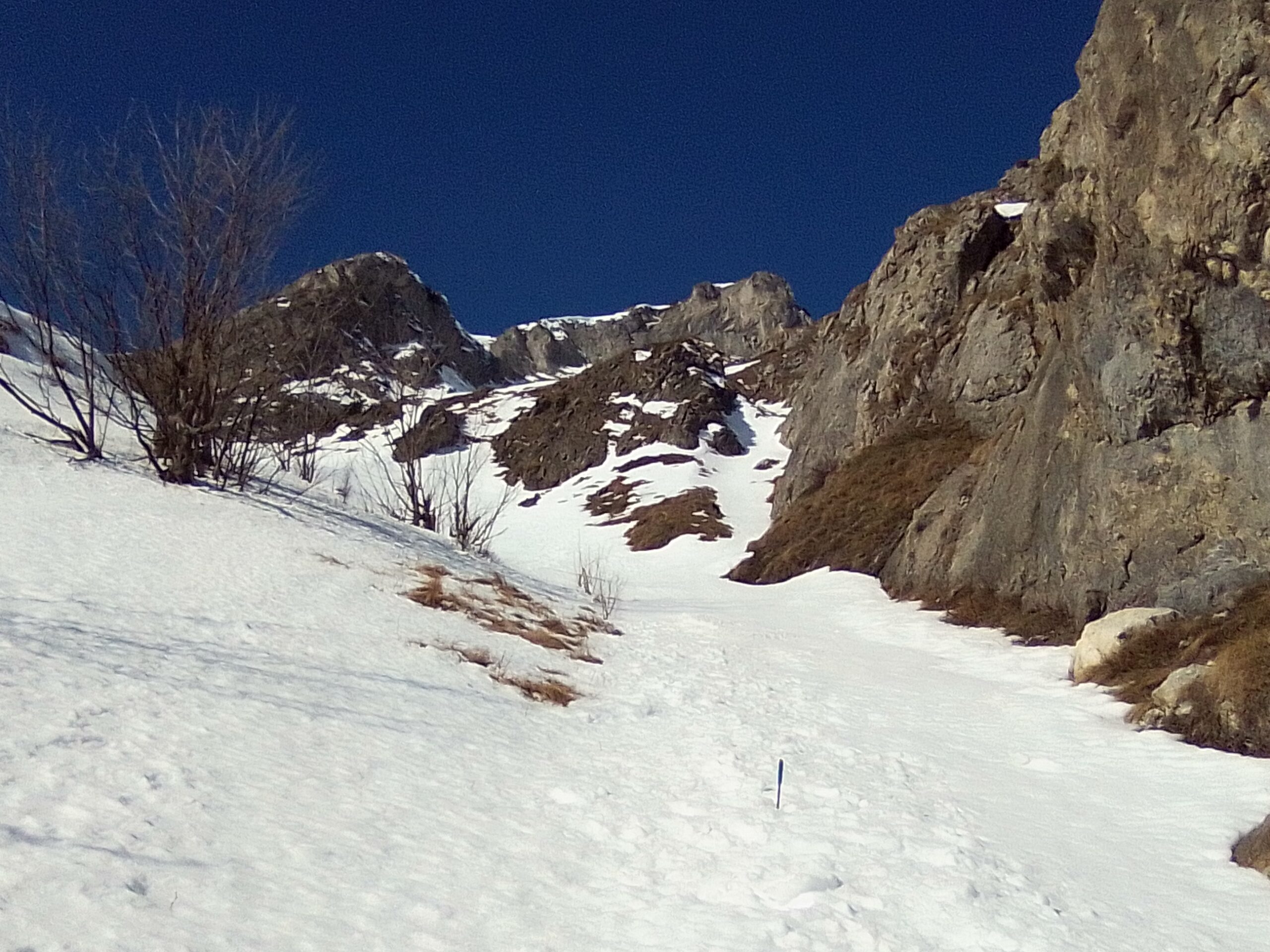 | luciano66 | Colla Bauzano | luciano66 | A dx la classica via normale, a sx il versante nord dai pressi dell'inghiottitoio | luciano66 | Verso il canale, tutto tracciato fino all'uscita | luciano66 | La strettoia | luciano66 | Condizioni strettoia | luciano66 | Vista da sopra | luciano66 | Pendio finale oltre la strettoia | luciano66 | Uscita in cresta | luciano66 | Dall'uscita manca poco alla vetta