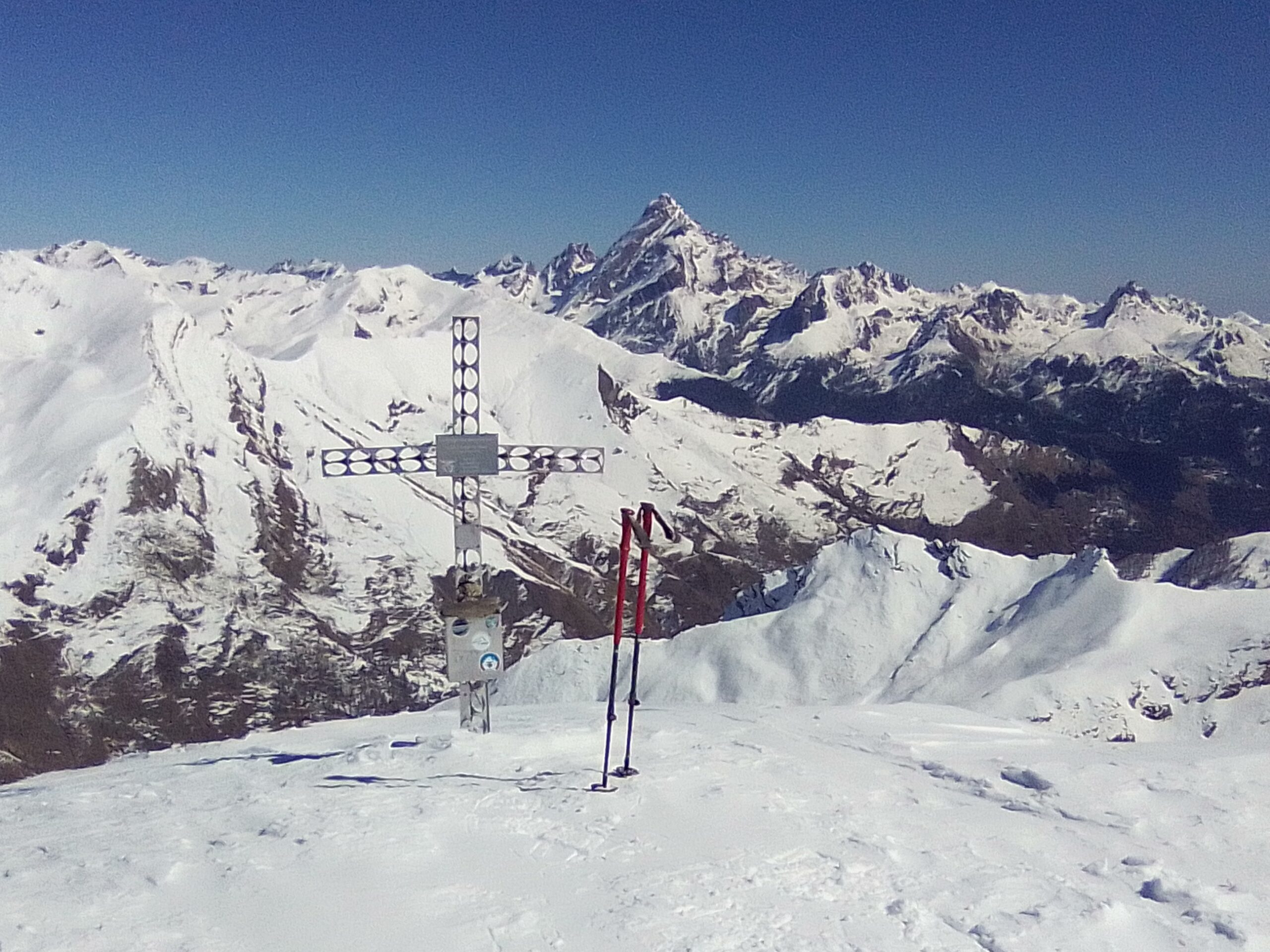 | luciano66 | Il caratteristico pilone | luciano66 | Visto da sopra | luciano66 | Il pendio finale oltre il gendarme | luciano66 | Vetta e Bussaia | luciano66 | Questa volta discesa per la cresta SE (vista dal Bric dell'Omo); vetta in alto a dx | luciano66 | La Rocca dell' Abisso da Cima Salauta | luciano66 | Verso il Becco Rosso, visibile sotto Forte Giaura, e tutto il resto della salita | luciano66 | In primo piano il Becco Rosso; in ombra il canale nord al Forte Giaura | luciano66 | Metà superiore del canale e uscita | luciano66 | Dal Forte Giaura tutta la salita per l'itinerario estivo | luciano66 | Il plateau a monte del forte privo di neve a tratti | luciano66 | Traverso agevole verso il pendio finale | luciano66 | Manca poco | luciano66 | In cima | luciano66 | Il canale per Forte Giaura visto dalla via normale
