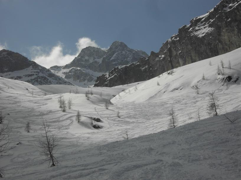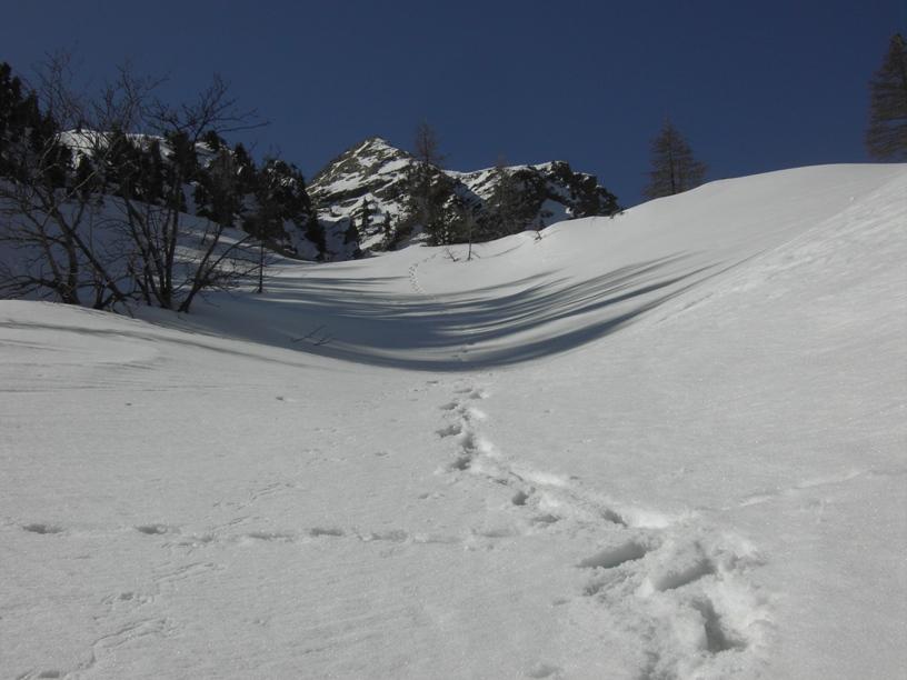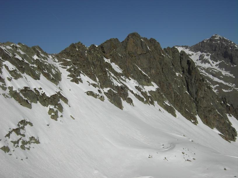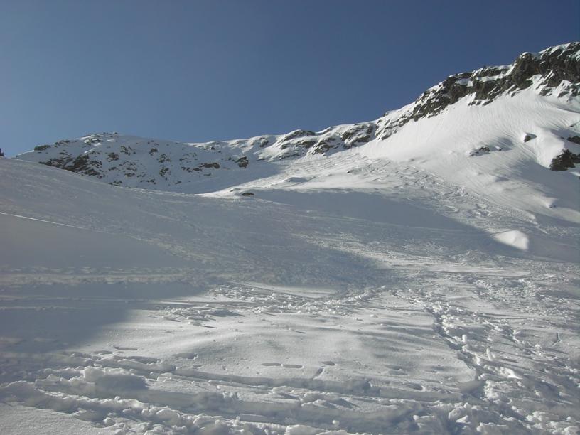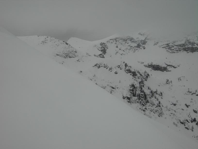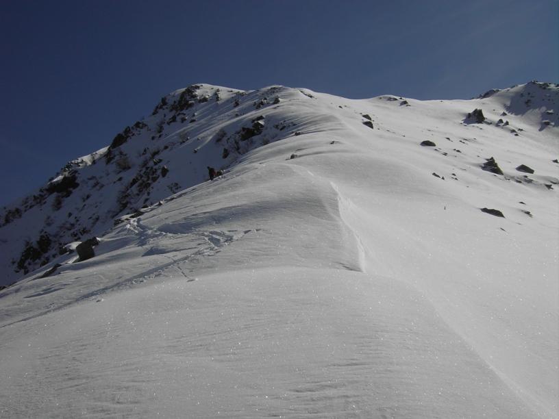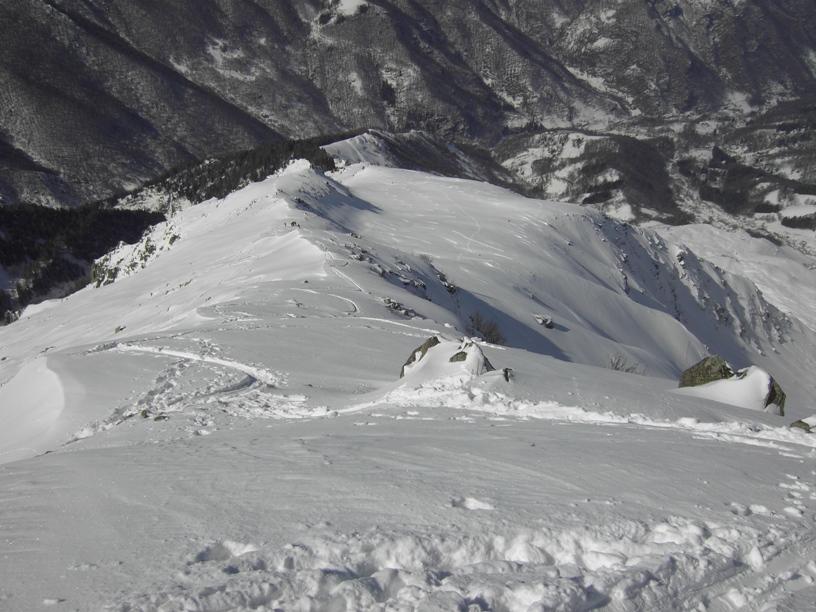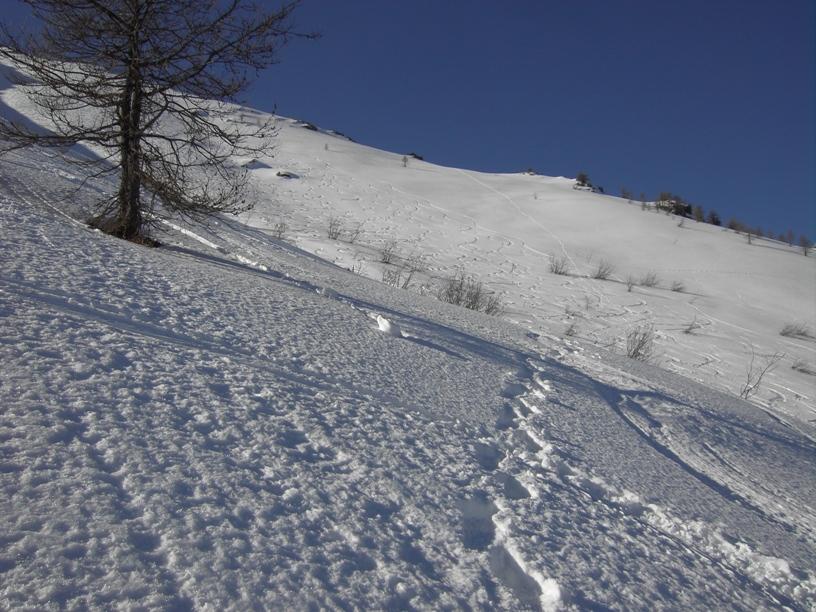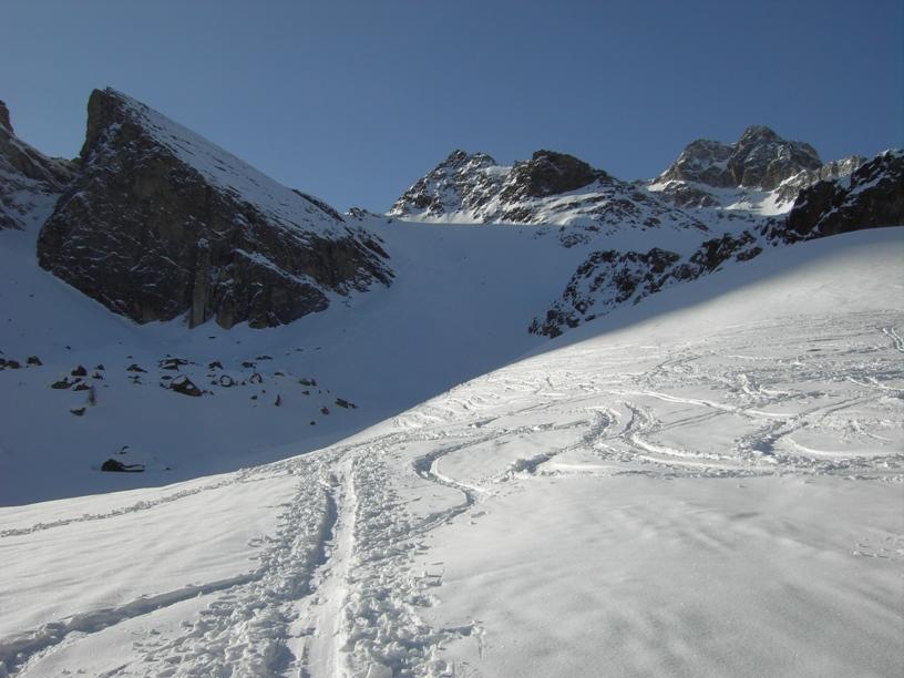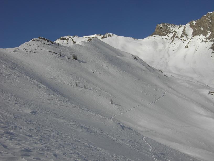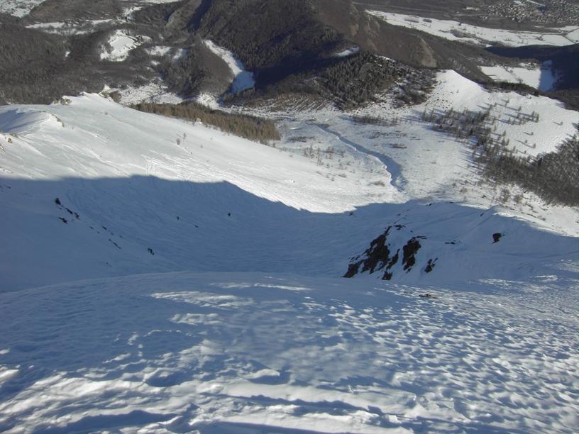 | luciano66 | Cima | luciano66 | Salita a dx,discesa a sx. | luciano66 | Tracciatura in corso al Buc Faraut. | luciano66 | Neve abbondante nella parte superiore. | luciano66 | Ritorno nelle barricate. | luciano66 | Barricate:sentiero estivo. | luciano66 | Uscita dalle barricate.