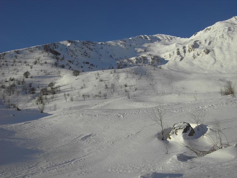 | luciano66 | Uscita sull'inizio della cresta NO(di fronte Cialancia e La Piastra) | luciano66 | Inizio della cresta. | luciano66 | Un tratto del lungo traverso sottocresta lato Colle Marchiana. | luciano66 | Colle Marchiana e Matto. | luciano66 | Il bivacco sepolto. | luciano66 | Ventabren(Gorgia Cagna dietro) | luciano66 | Il percorso degli scialpinisti. | luciano66 | Il canale praticabile dalla vetta. | luciano66 | Il Matto e me. | luciano66 | Scendendo per cresta. | luciano66 | Ancora la cresta. | luciano66 | Verso l'inizio della cresta:si vede la traccia di salita e il punto di ingresso nel canalone(le tracce di discesa precedenti). | luciano66 | Canalone parte alta. | luciano66 | Idem guardando verso il Chiot. | luciano66 | Incrociando la traccia di salita | luciano66 | Canalone parte bassa. | luciano66 | Quasi al Chiot | luciano66 | A sx Costa Plunera,a dx il pendio di salita. | luciano66 | Chiot. | luciano66 | Il tentativo alla Costa Plunera. | luciano66 | Costa Plunera vista dalla radura sotto il Chiot. | luciano66 | Verso Bergemolo,fine gita.