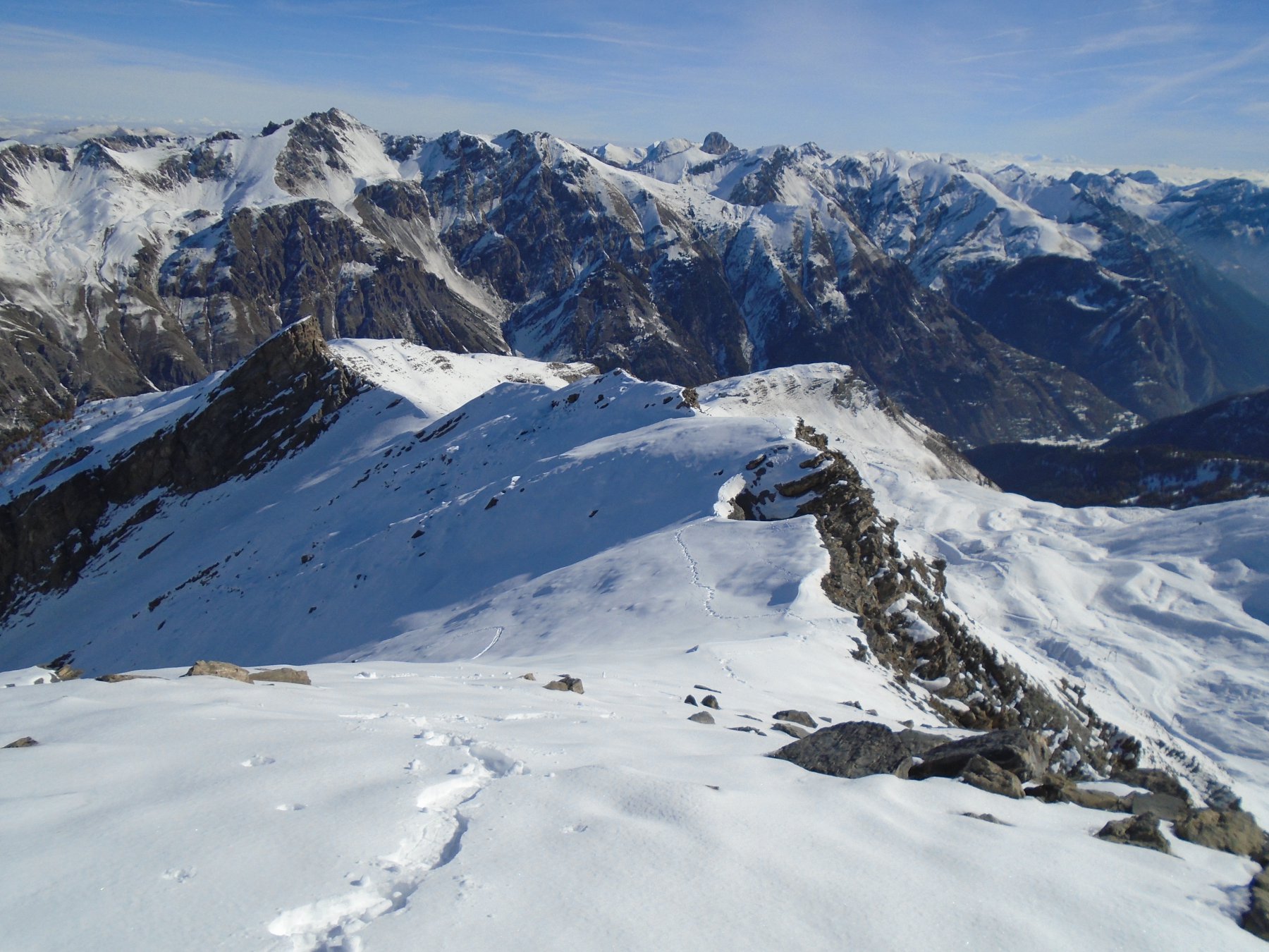 | luciano66 | Dal colle la salita diretta all'anticima ovest (in alto a dx) | luciano66 | Bec du Lievre dall'anticima: traversata breve, ma delicata | luciano66 | Pendio di salita/discesa dal Col de la Gypiere de L'Oronaye | luciano66 | La facile anticima ovest e il vero Bec du Lievre | luciano66 | In primo piano da sx: Tete Dure,Col Remy,Les Auguilettes | luciano66 | Discesa da Col Auriesses ma in direzione dei pendii sud-ovest;a dx il percorso di salita | luciano66 | Sui pendii sud-ovest verso Le Pontet | luciano66 | Dall'auto a Le Pontet: a dx il pendio SE di salita,a sx i pendii SO di discesa | luciano66 | Si parte | luciano66 | Ingresso nel canale: qui metto i ramponi | luciano66 | In mezzo alle rocce svolto a sx (breve traverso in direzione cresta nord) | luciano66 | Il pendio sospeso,poco ripido, che porta all'inizio della cresta nord | luciano66 | Il comodo poggio panoramico sulla cresta | luciano66 | Cresta nord e Tete des Blaves | luciano66 | Ultimo tratto di cresta