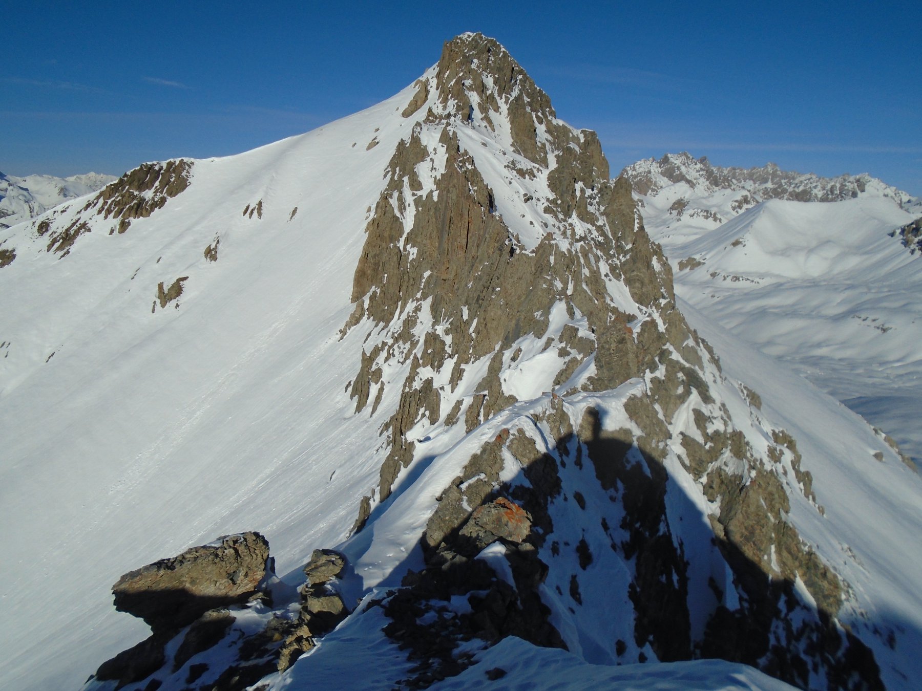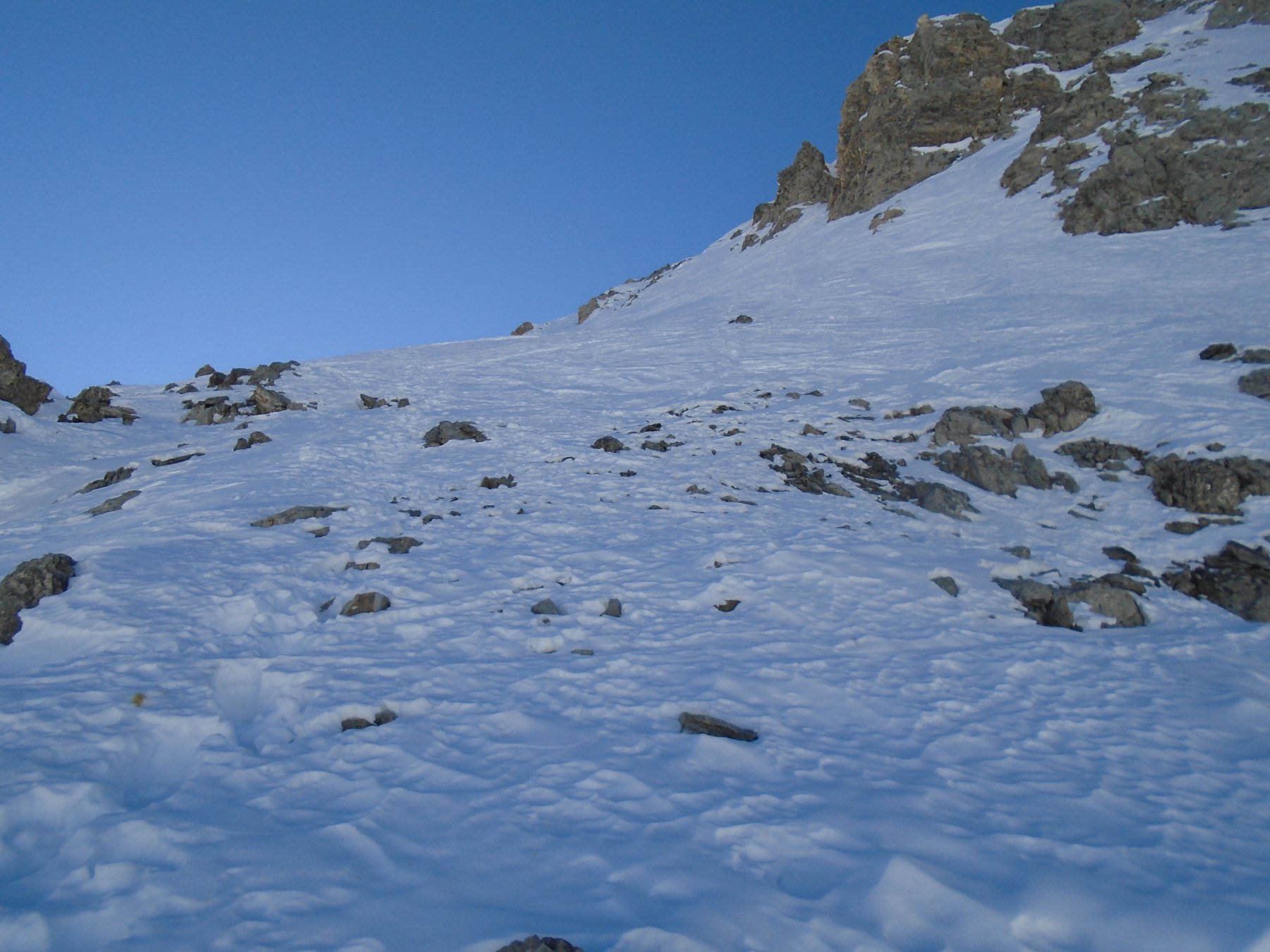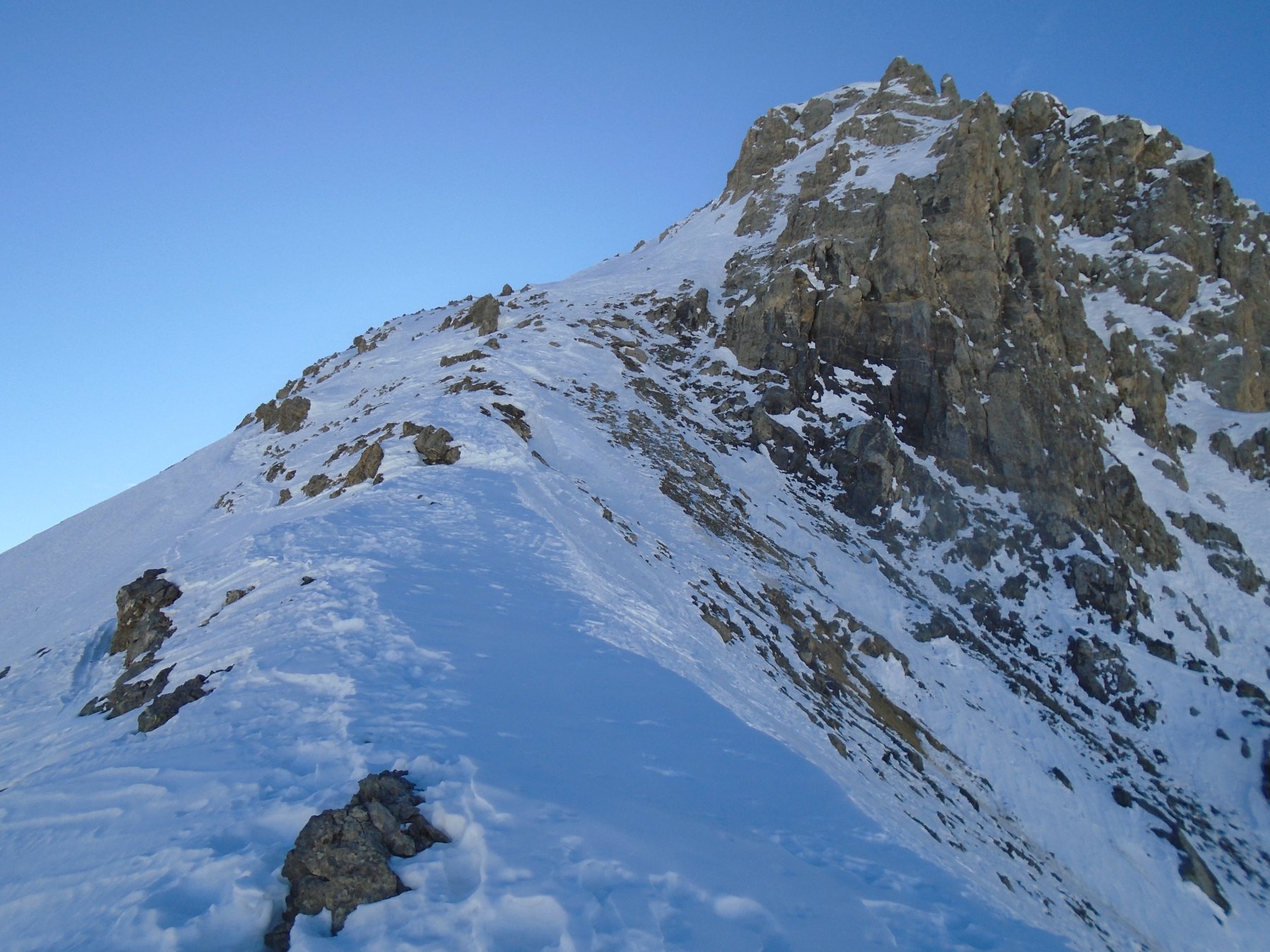 | luciano66 | Si parte | luciano66 | Ingresso nel canale: qui metto i ramponi | luciano66 | In mezzo alle rocce svolto a sx (breve traverso in direzione cresta nord) | luciano66 | Il pendio sospeso,poco ripido, che porta all'inizio della cresta nord | luciano66 | Il comodo poggio panoramico sulla cresta | luciano66 | Cresta nord e Tete des Blaves | luciano66 | Ultimo tratto di cresta | luciano66 | Dalla cresta: a sx per la massima pendenza, a dx sul pendio sospeso | luciano66 | Sguardo indietro con panorama | luciano66 | Pendio finale e vetta vicina | luciano66 | In cima: in basso a dx all'ombra l'ultima parte di salita | luciano66 | Ingresso nel canale/versante sud-ovest (rifugio e Colle Maddalena al fondo) | luciano66 | In discesa nel canale SO | luciano66 | Fuori dal ripido, quasi al ripiano sottostante | luciano66 | Il ripiano a metà versante SO | luciano66 | Dal ripiano: canale SO al centro, a sx le Blaves | luciano66 | Bec du Lievre | luciano66 | Tete des Blaves dal parcheggio di Le Pontet