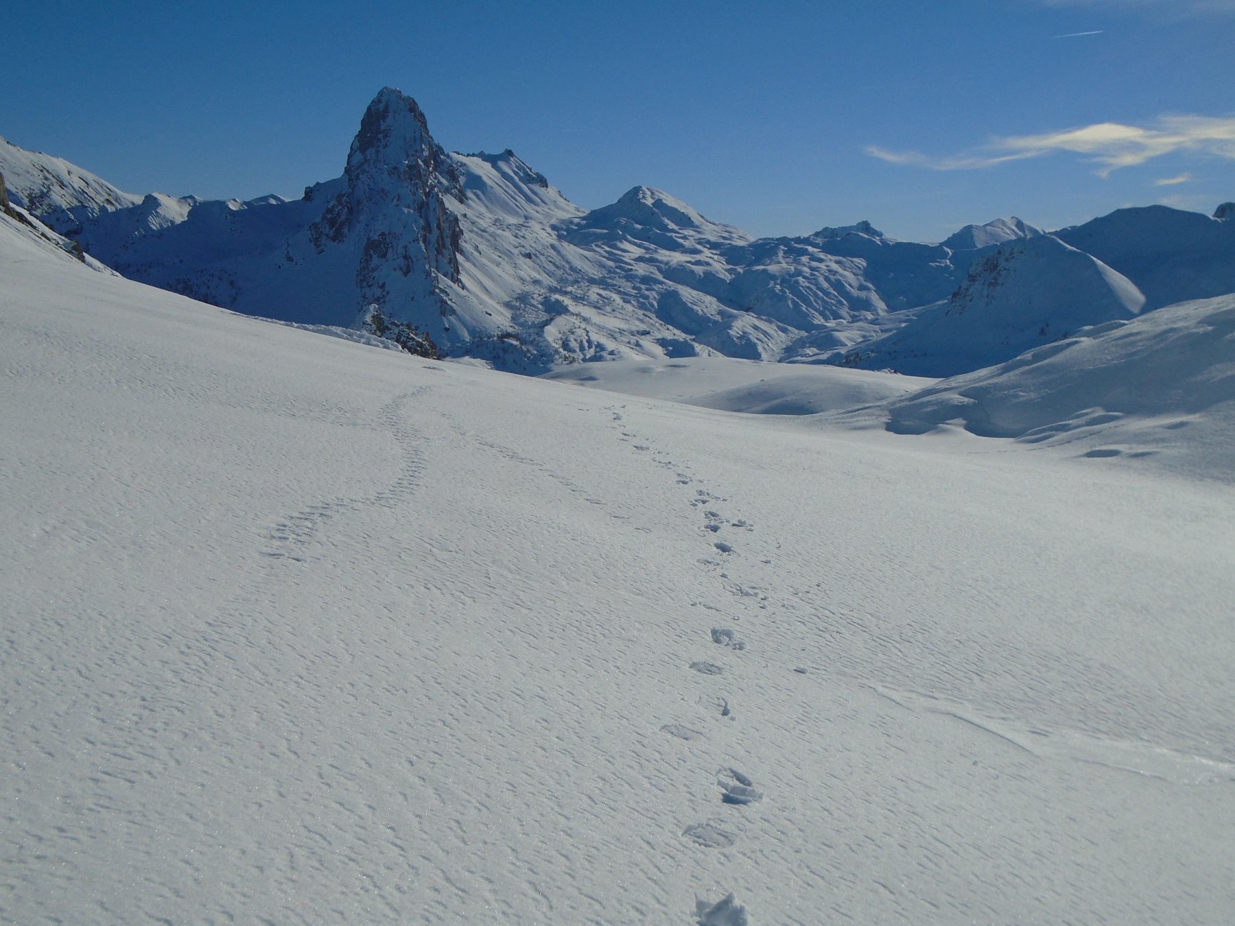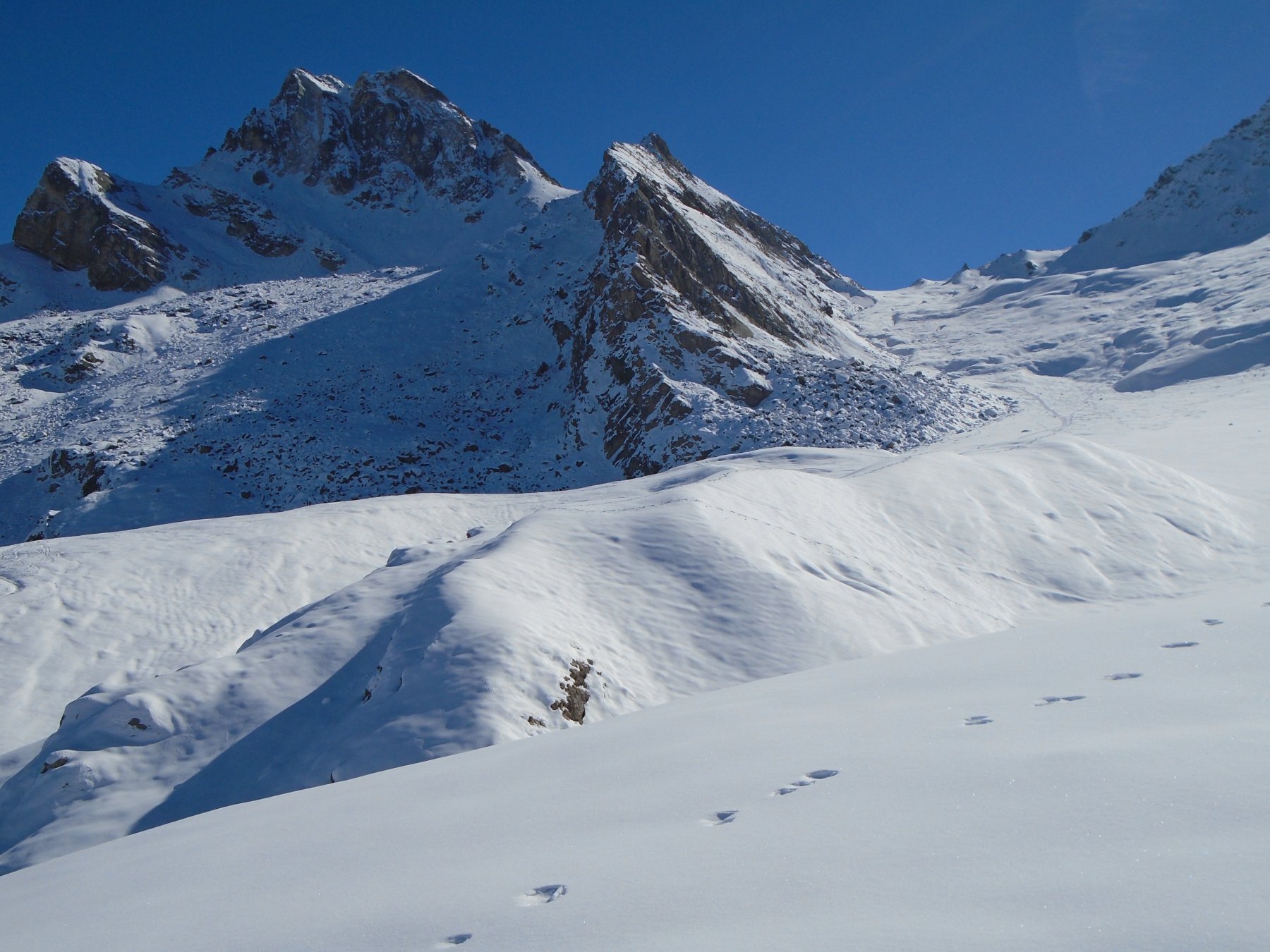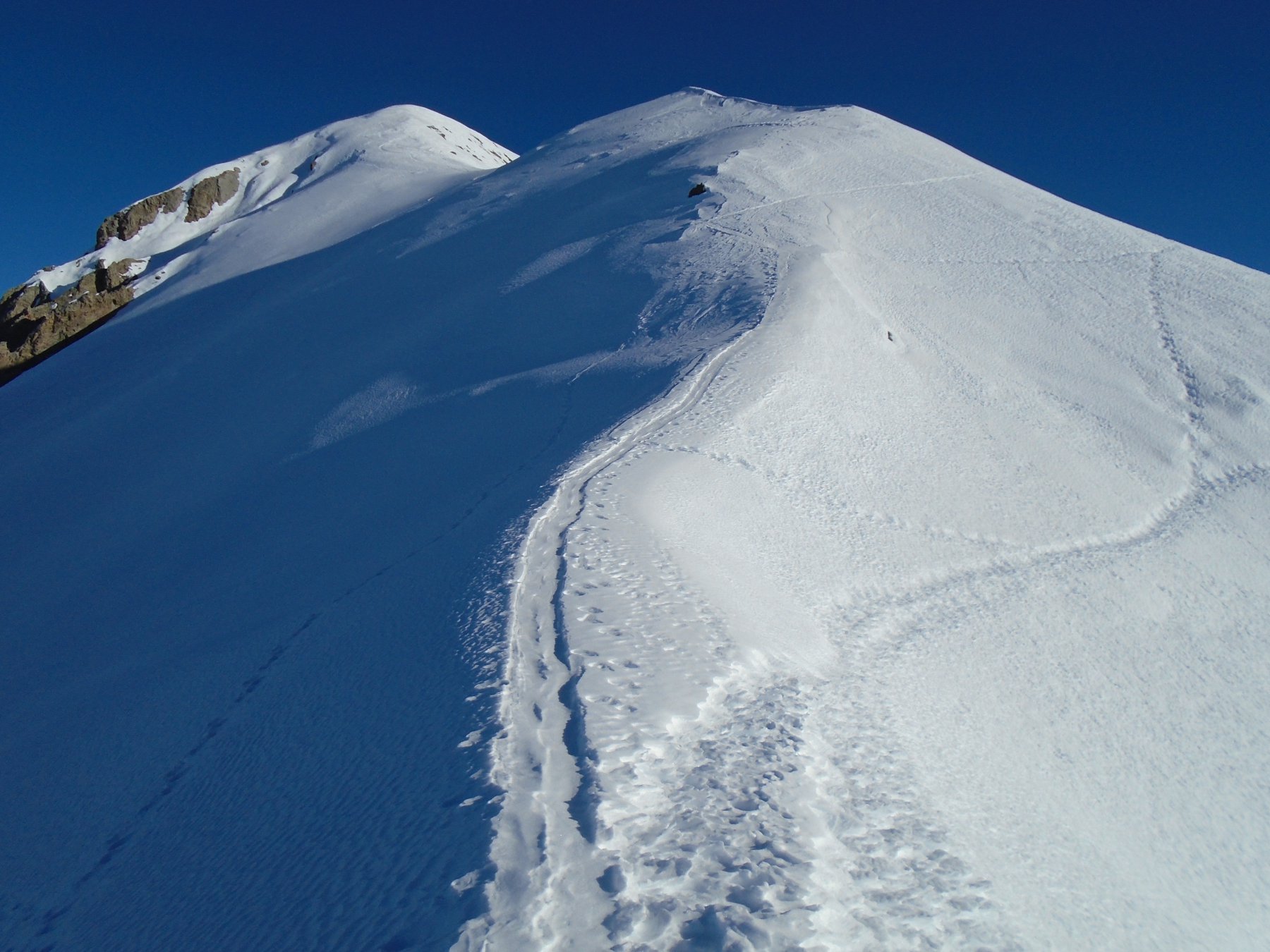 | luciano66 | Si parte | luciano66 | Ingresso nel canale: qui metto i ramponi | luciano66 | In mezzo alle rocce svolto a sx (breve traverso in direzione cresta nord) | luciano66 | Il pendio sospeso,poco ripido, che porta all'inizio della cresta nord | luciano66 | Il comodo poggio panoramico sulla cresta | luciano66 | Cresta nord e Tete des Blaves | luciano66 | Ultimo tratto di cresta | luciano66 | Dalla cresta: a sx per la massima pendenza, a dx sul pendio sospeso | luciano66 | Sguardo indietro con panorama | luciano66 | Pendio finale e vetta vicina | luciano66 | In cima: in basso a dx all'ombra l'ultima parte di salita | luciano66 | Ingresso nel canale/versante sud-ovest (rifugio e Colle Maddalena al fondo) | luciano66 | In discesa nel canale SO | luciano66 | Fuori dal ripido, quasi al ripiano sottostante | luciano66 | Il ripiano a metà versante SO | luciano66 | Dal ripiano: canale SO al centro, a sx le Blaves | luciano66 | Bec du Lievre | luciano66 | Tete des Blaves dal parcheggio di Le Pontet