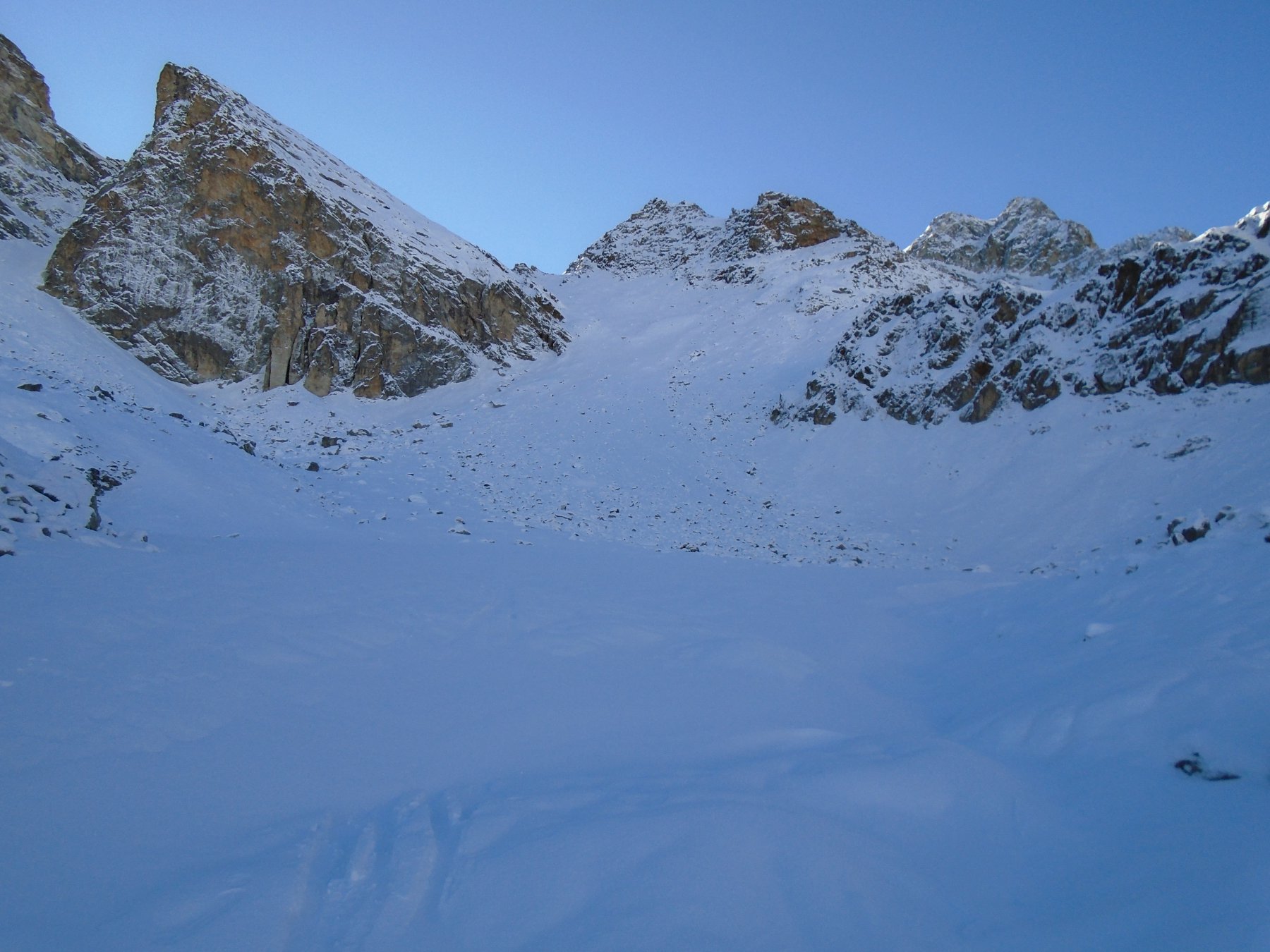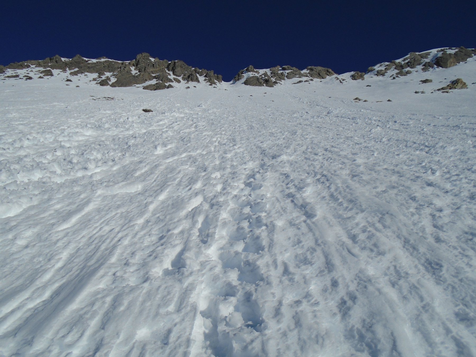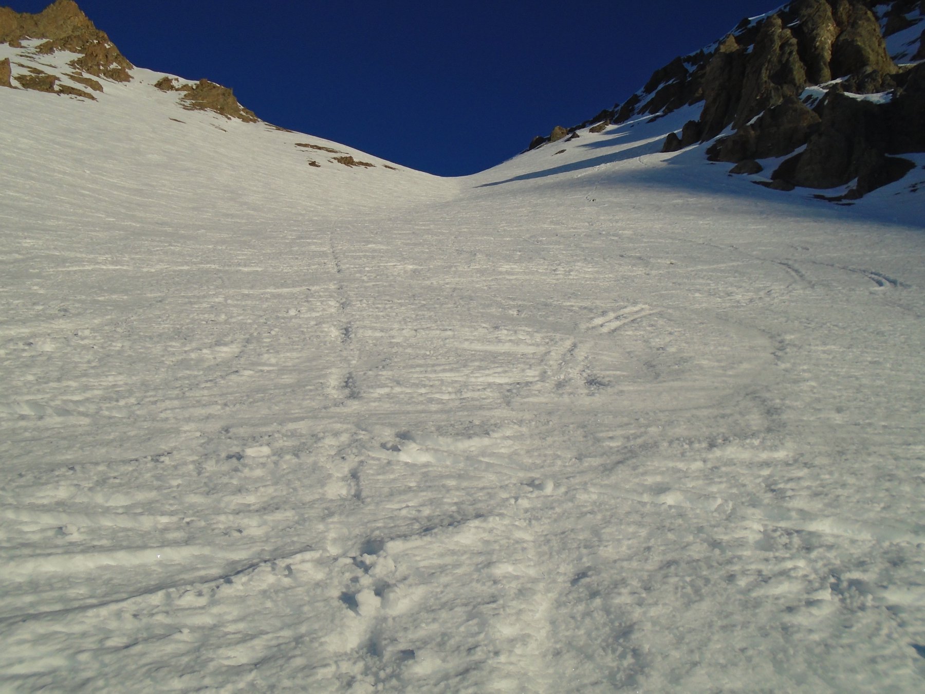 | luciano66 | La gorgia vista dall'alto | luciano66 | Uscita dalla gorgia e pianoro del Vallone Forneris | luciano66 | Passo Escalon al centro (un po' nascosto) | luciano66 | Si passa sotto il canale N-E,da cui scenderò dopo | luciano66 | Alla base del canale N,a dx Colle Scaletta (non visibile) | luciano66 | Inizio canale N | luciano66 | Parte alta con uscita al centro | luciano66 | La ripida paretina oggi con neve inconsistente | luciano66 | Uno sguardo indietro dall'uscita del canale | luciano66 | Ultimo tratto di pendio sommitale visto dalla cima | luciano66 | In vetta | luciano66 | Ingresso canale N-E | luciano66 | Parte alta canale N-E | luciano66 | Sguardo indietro | luciano66 | Verso la parte inferiore