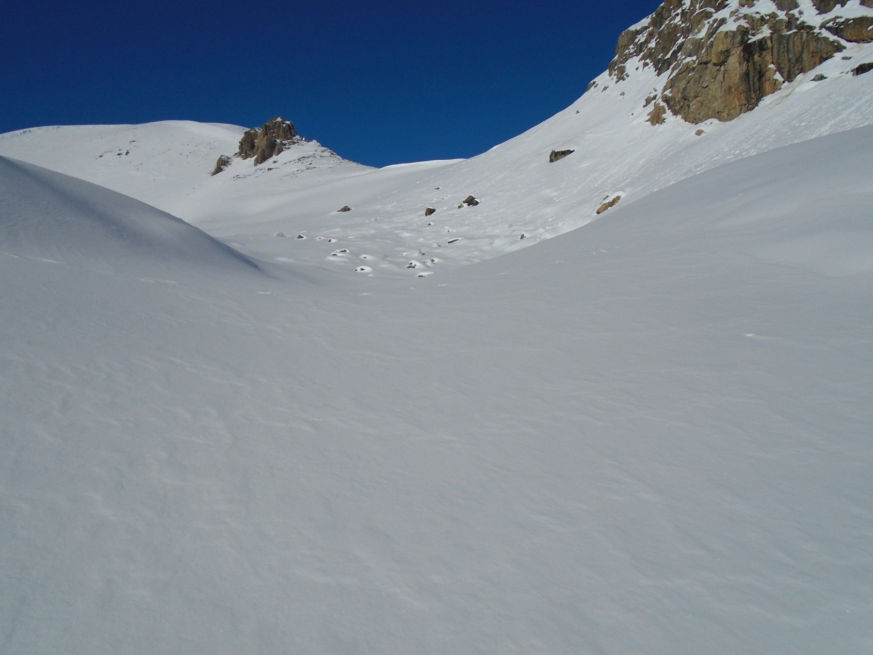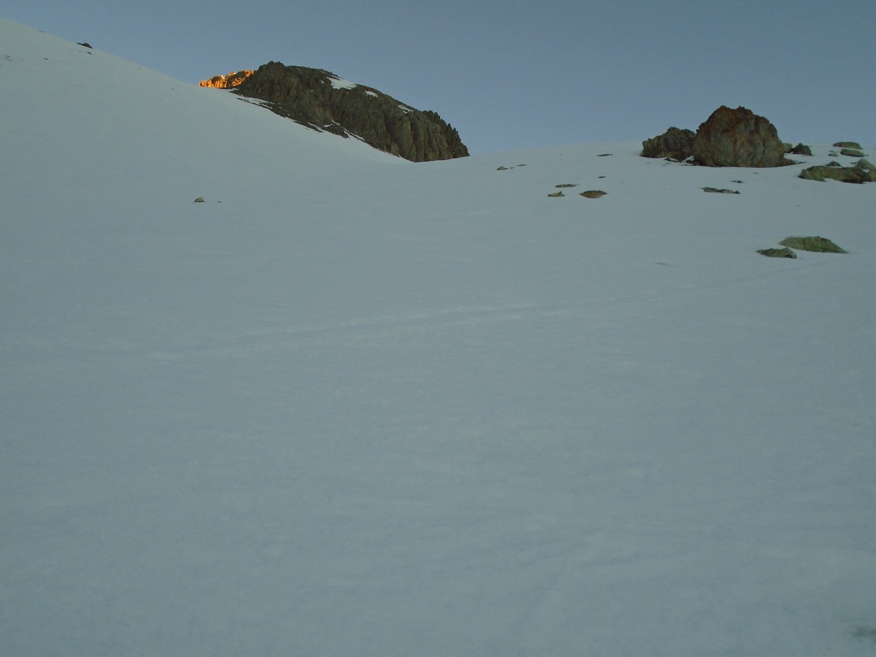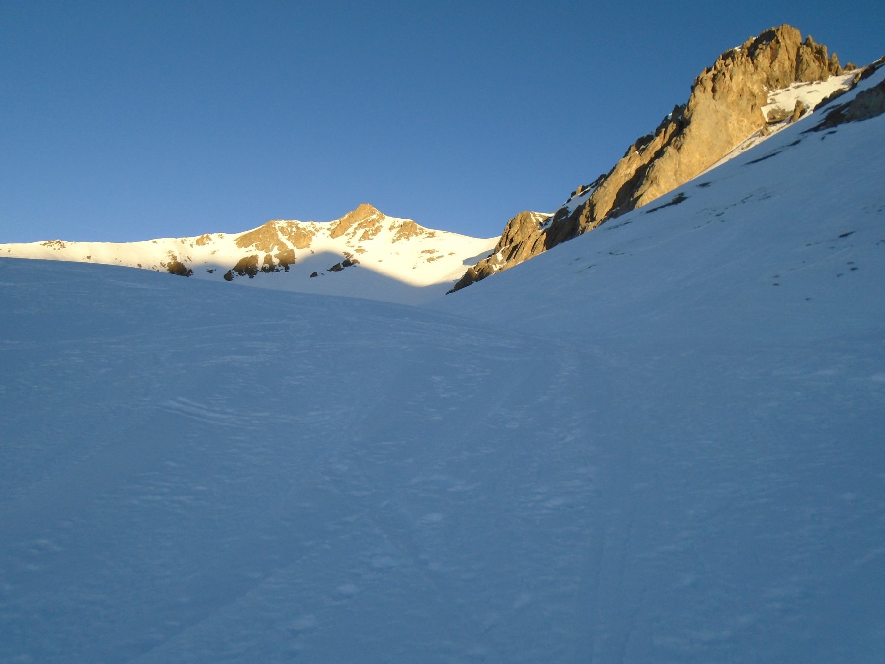 | luciano66 | La gorgia vista dall'alto | luciano66 | Uscita dalla gorgia e pianoro del Vallone Forneris | luciano66 | Passo Escalon al centro (un po' nascosto) | luciano66 | Si passa sotto il canale N-E,da cui scenderò dopo | luciano66 | Alla base del canale N,a dx Colle Scaletta (non visibile) | luciano66 | Inizio canale N | luciano66 | Parte alta con uscita al centro | luciano66 | La ripida paretina oggi con neve inconsistente | luciano66 | Uno sguardo indietro dall'uscita del canale | luciano66 | Ultimo tratto di pendio sommitale visto dalla cima | luciano66 | In vetta | luciano66 | Ingresso canale N-E | luciano66 | Parte alta canale N-E | luciano66 | Sguardo indietro | luciano66 | Verso la parte inferiore