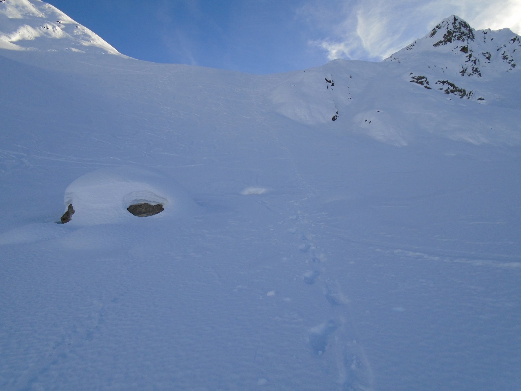 | luciano66 | La metà inferiore devastata dalla valanga | luciano66 | Gr. Servino ai piedi del canalone S-E | luciano66 | Un ultimo sguardo indietro da Gr. Selvest | luciano66 | La salita iniziale nel bosco a fianco del rio | luciano66 | Ingresso nel Vallone Forneris | luciano66 | Alla base del pendio/gorgia per accedere alla parte superiore | luciano66 | I magnifici pendii e ripiani superiori;Colle Stau in vista. | luciano66 | Bella traccia fino al Colle di Stau | luciano66 | Colle di Stau e Rocca Verde | luciano66 | Il tratto finale per la vetta | luciano66 | Traverso su pendio ripido verso l'anticima | luciano66 | Manca poco alla vetta | luciano66 | In cima | luciano66 | Bellissima neve | luciano66 | Di ritorno verso la gorgia