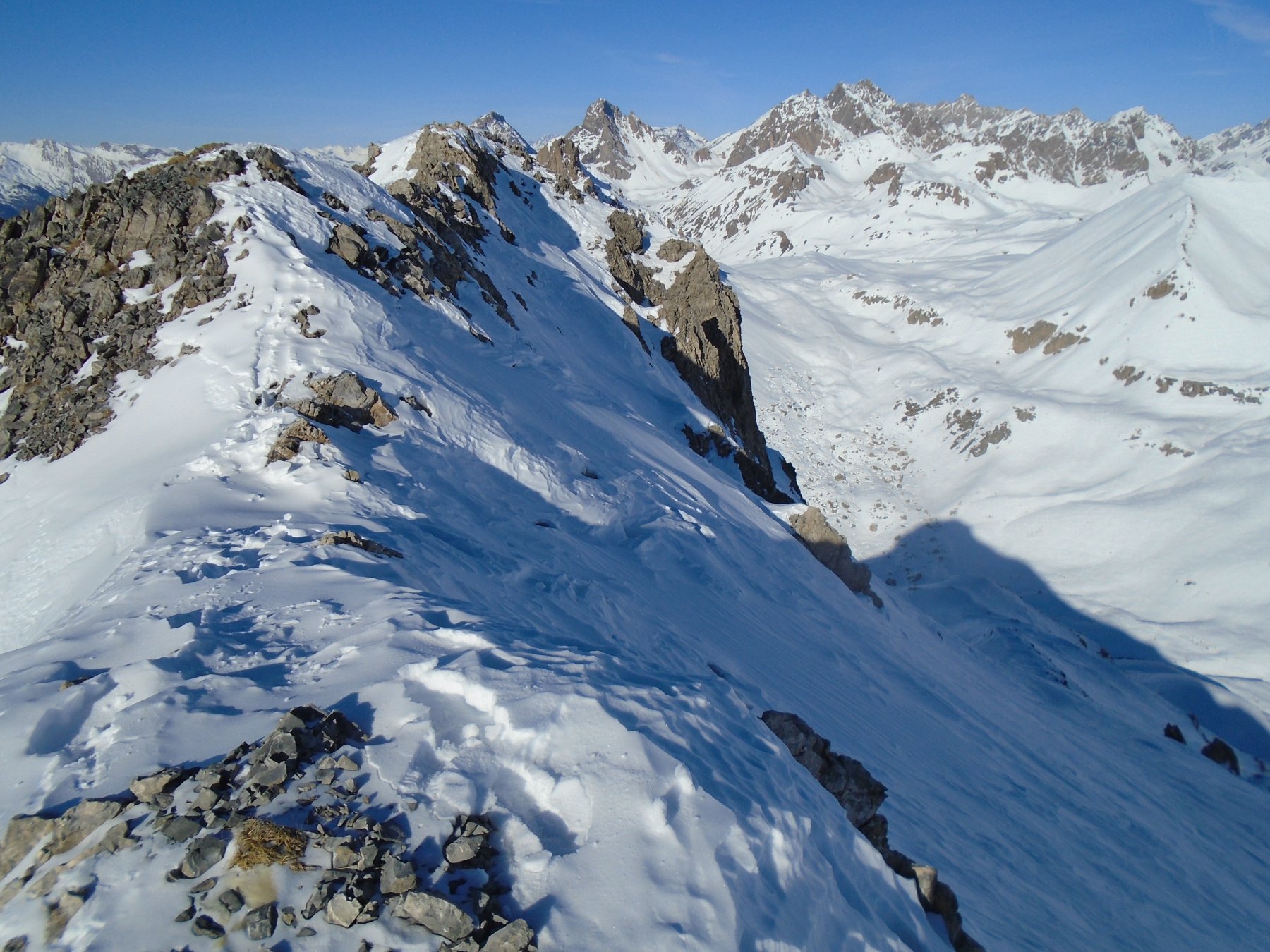 | luciano66 | In salita, a dx il Sebolet | luciano66 | In vetta | luciano66 | Marchisa: in basso a dx il Colle di Vers | luciano66 | Il breve tratto di cresta dal colletto 2950 alla cima | luciano66 | Condizioni a sud | luciano66 | Colletto 2950 e cresta verso la cima | luciano66 | Inizio discesa dal colletto | luciano66 | Al fondo del pendio-canale | luciano66 | Poca neve verso il colle centrale della Marchisa | luciano66 | L' altipiano superiore a circa 2600mt