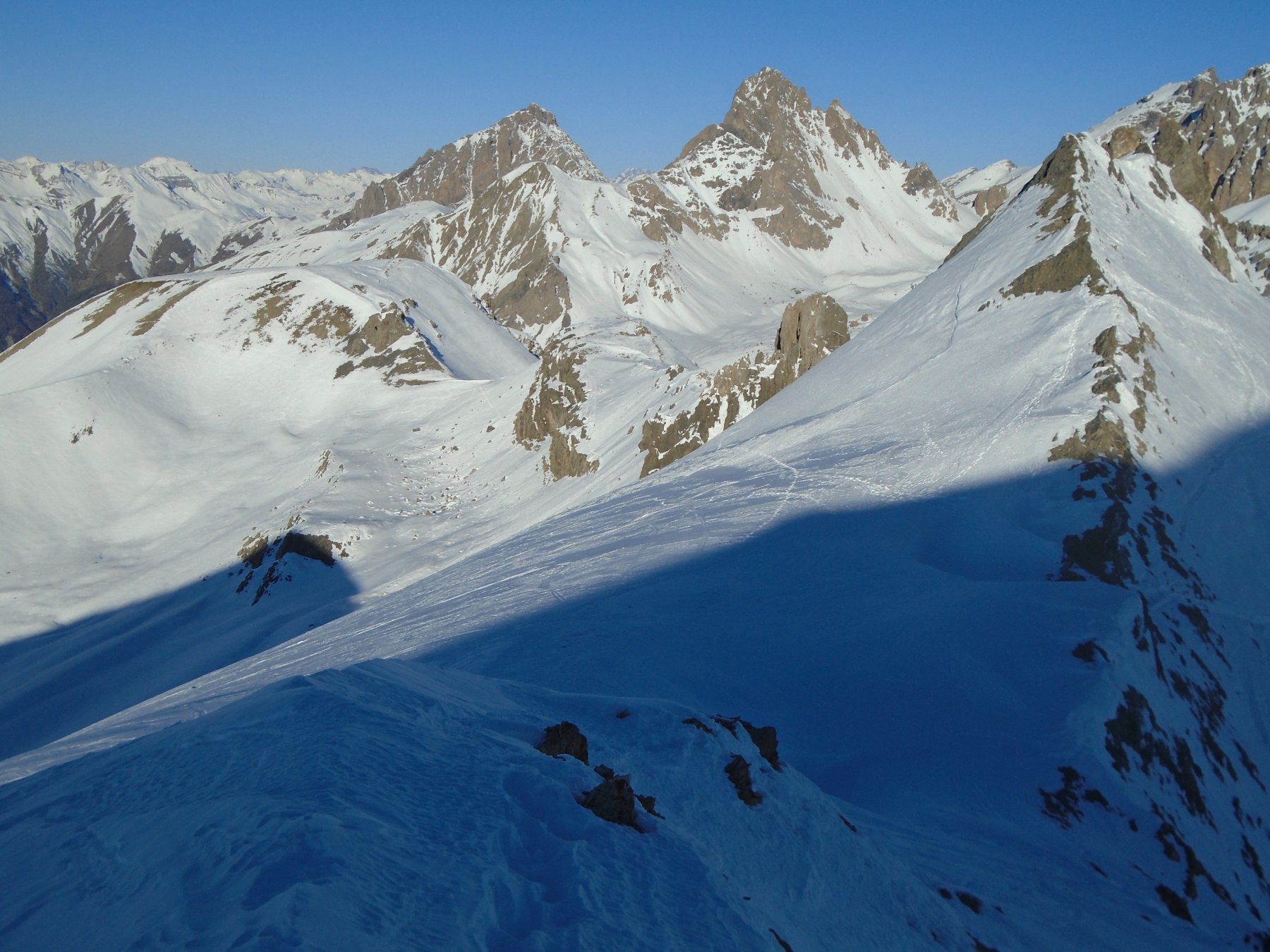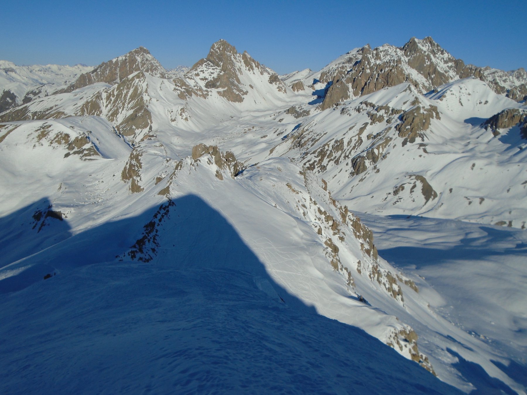 | luciano66 | Dalla cresta: a sx per la massima pendenza, a dx sul pendio sospeso | luciano66 | Sguardo indietro con panorama | luciano66 | Pendio finale e vetta vicina | luciano66 | In cima: in basso a dx all'ombra l'ultima parte di salita | luciano66 | Ingresso nel canale/versante sud-ovest (rifugio e Colle Maddalena al fondo) | luciano66 | In discesa nel canale SO | luciano66 | Fuori dal ripido, quasi al ripiano sottostante | luciano66 | Il ripiano a metà versante SO | luciano66 | Dal ripiano: canale SO al centro, a sx le Blaves | luciano66 | Bec du Lievre | luciano66 | Tete des Blaves dal parcheggio di Le Pontet | luciano66 | Canalone S-E visto dal Colle del Preit | luciano66 | Colle del Preit | luciano66 | Altipiano della Gardetta | luciano66 | Guardando verso Colle Servagno