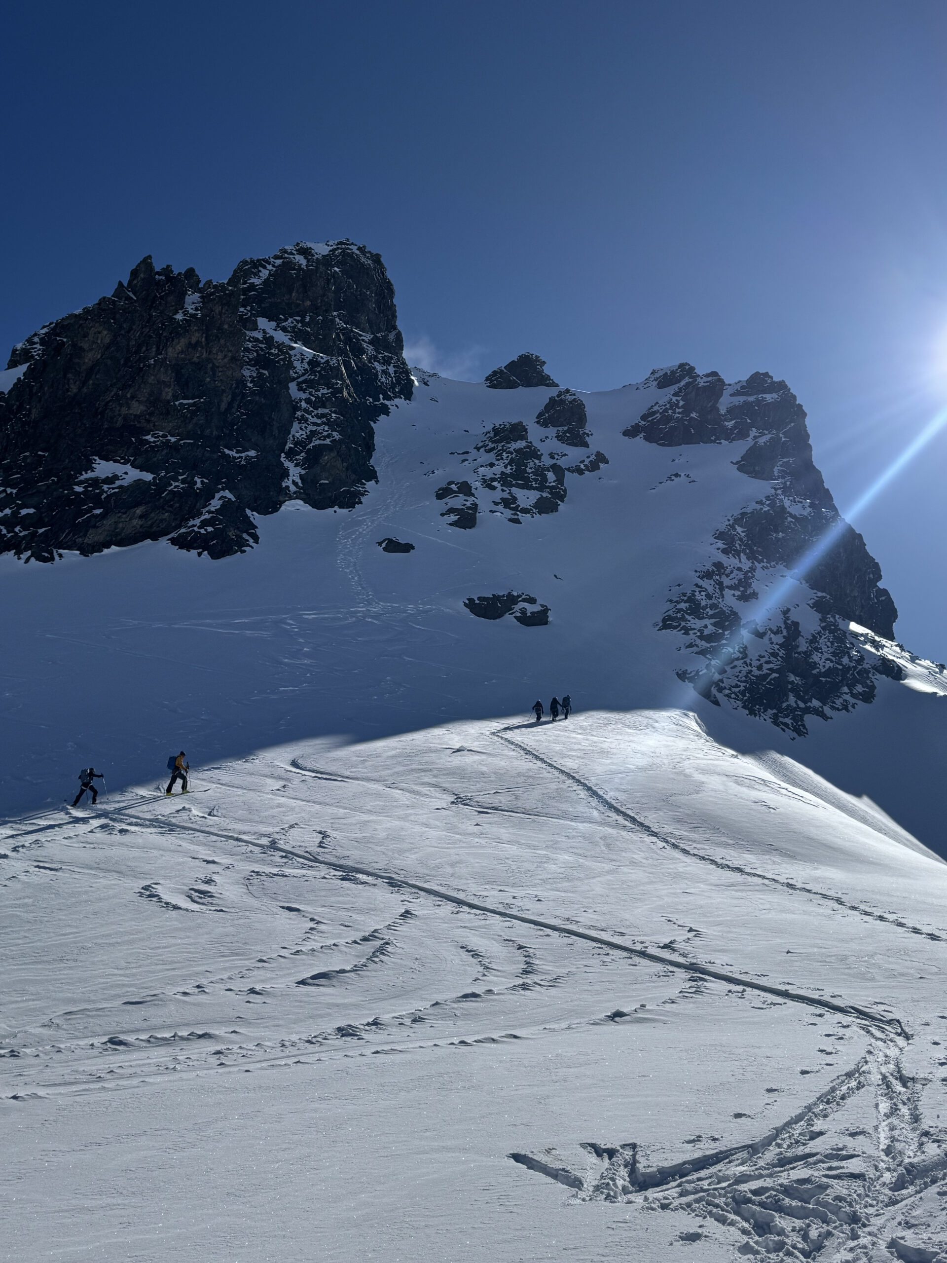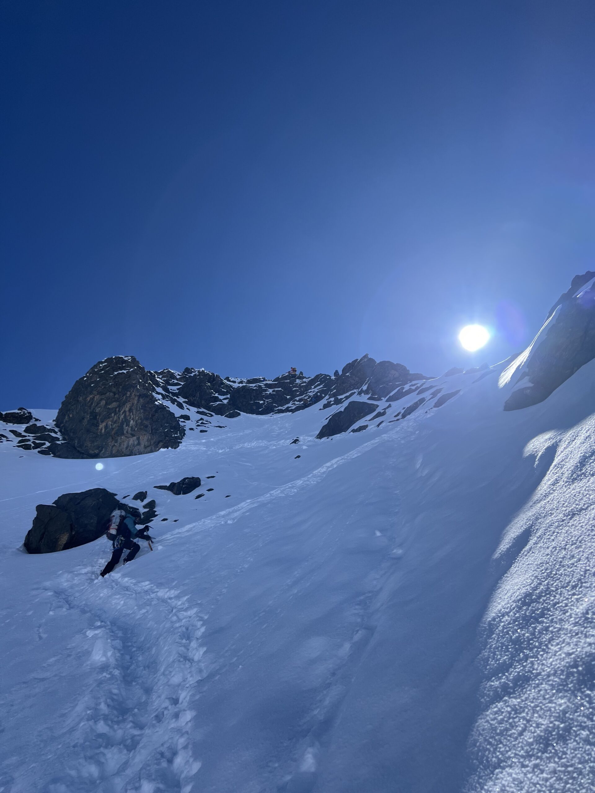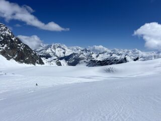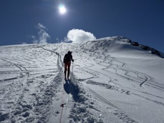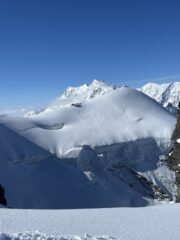 Condizioni meteo magnifiche, sempre sopra le nuvole, neve stupenda per aver nevicato il giorno prima. La salita sci alpinistica è semplice e in ambiente magnifico,…