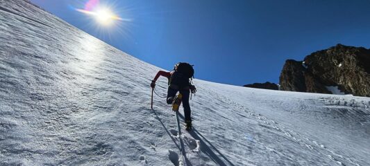 Partiti dal rifugio Borletti alle 04.10 arrivati in vetta alle 9.30, la via si percorrere slegati fino al ghiacciaio, per la parte rocciosa basta una…
