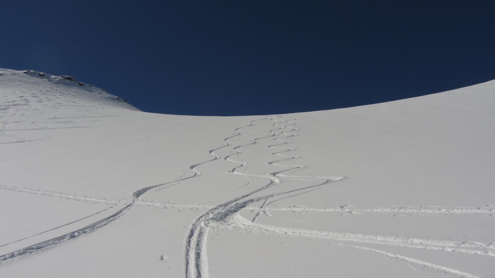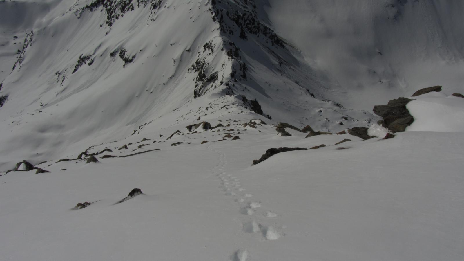 | lupo-solitario | La cresta finale osservata dalla cima | lupo-solitario | Vecchie tracce di discesa. Oggi il fondo era più portante | lupo-solitario | Cima solitaria
