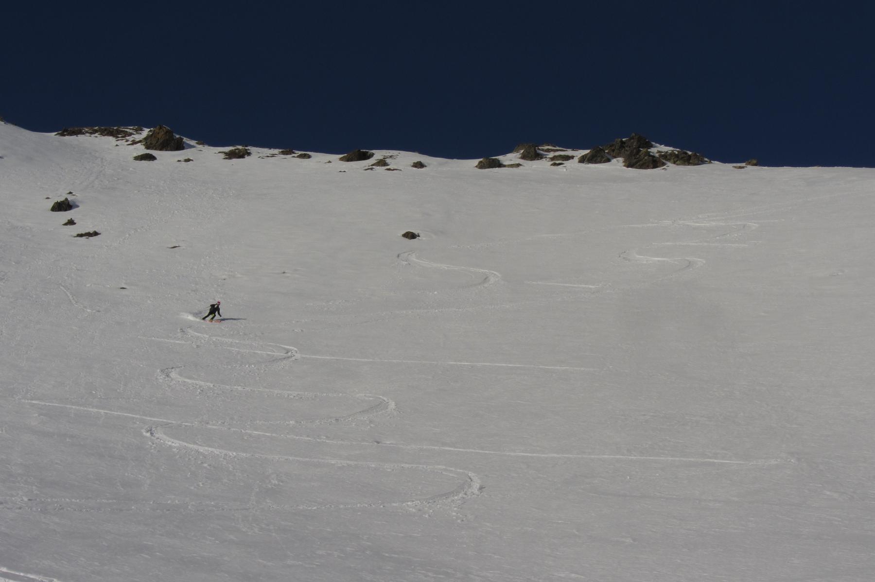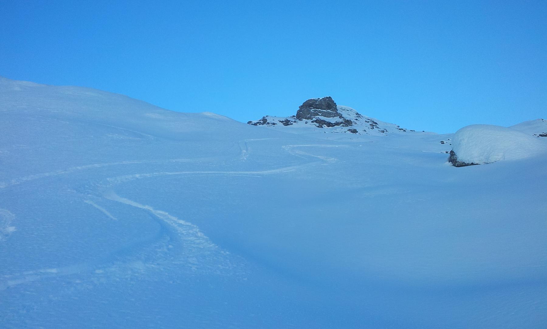 | lupo-solitario | La bella farina del pendio sotto la cima | lupo-solitario | Parte mediana itinerario | lupo-solitario | Perplessità circa la prosecuzione verso la grande aiguille rousse