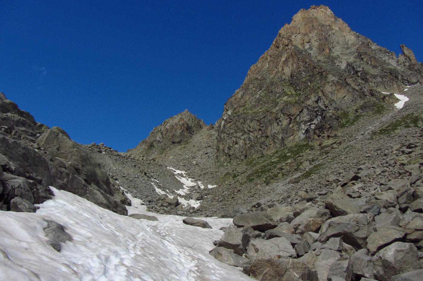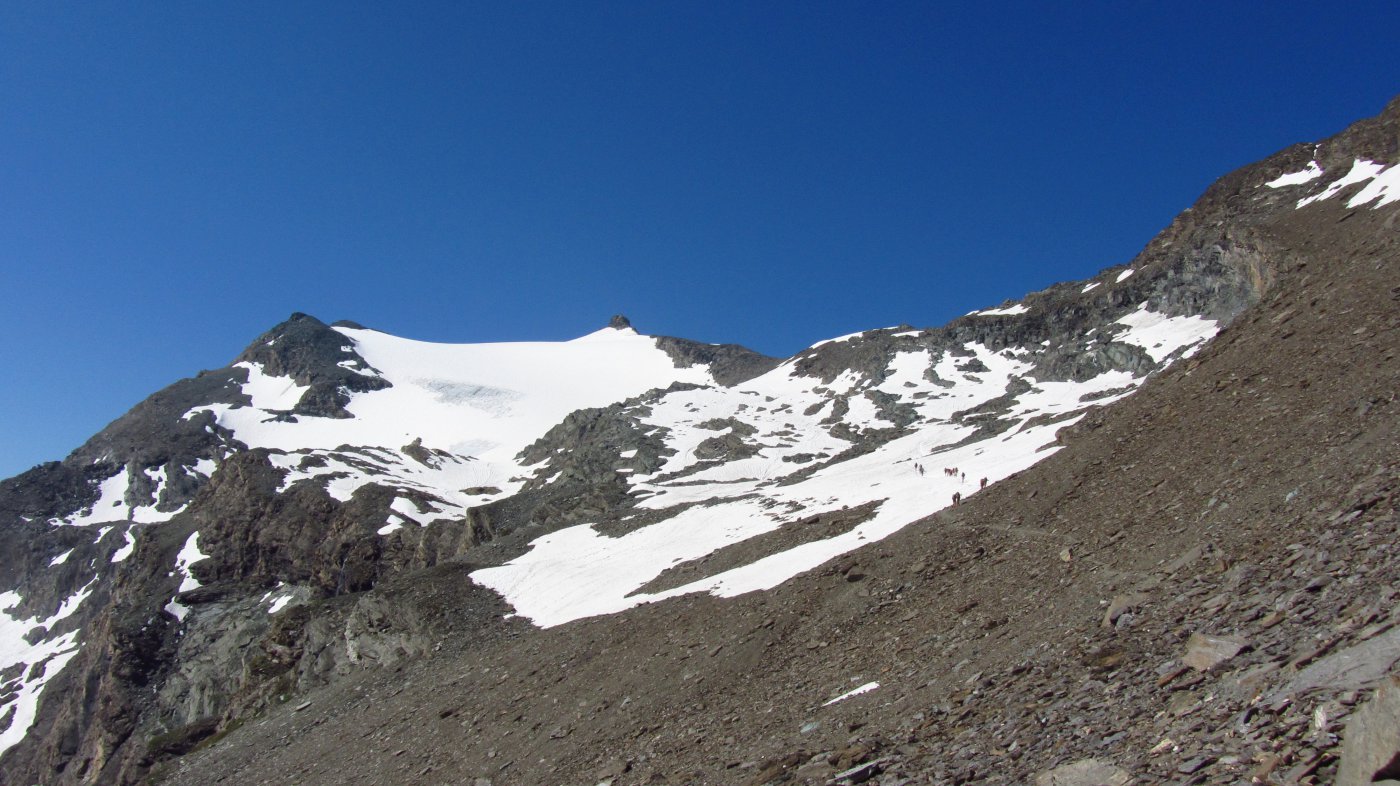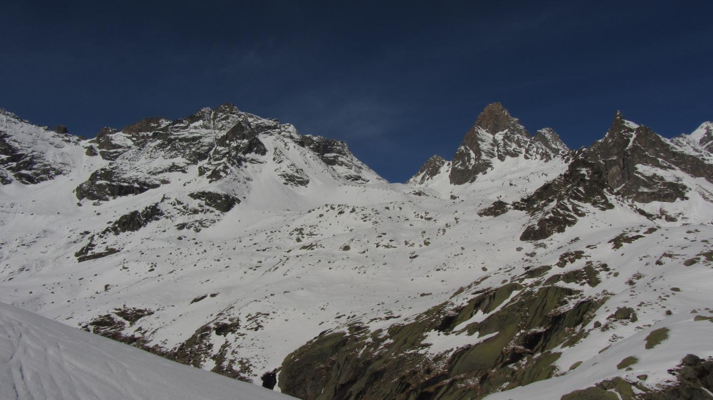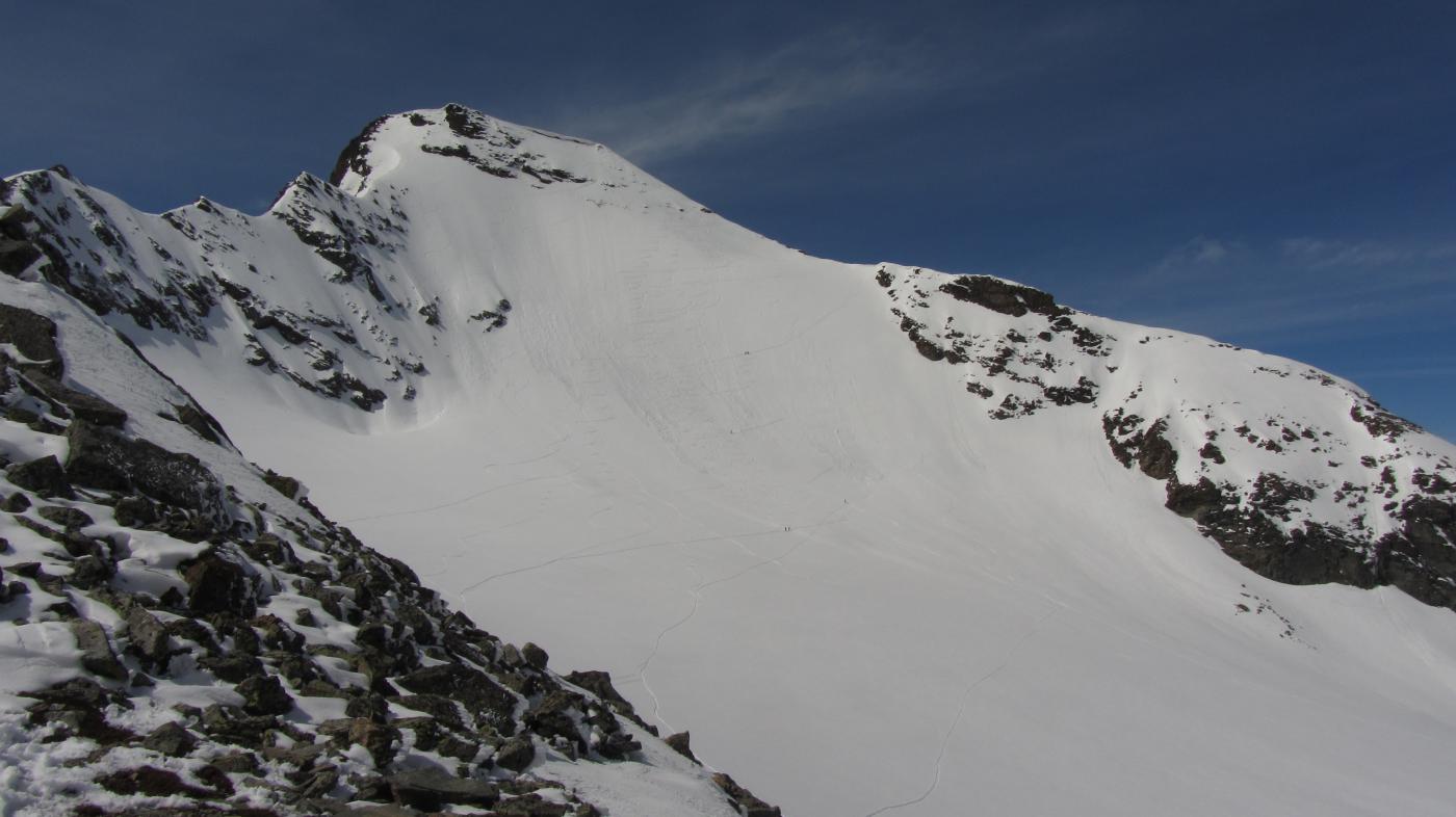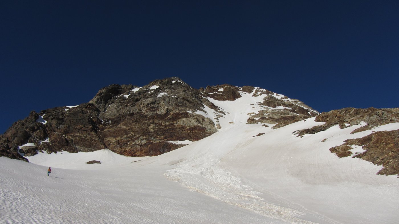 | lupo-solitario | In salita dal vallone del Grand Torrent verso la Valfredda | lupo-solitario | Punta Valfredda oggi | lupo-solitario | Le nostre tracce di discesa dalla punta Valnera