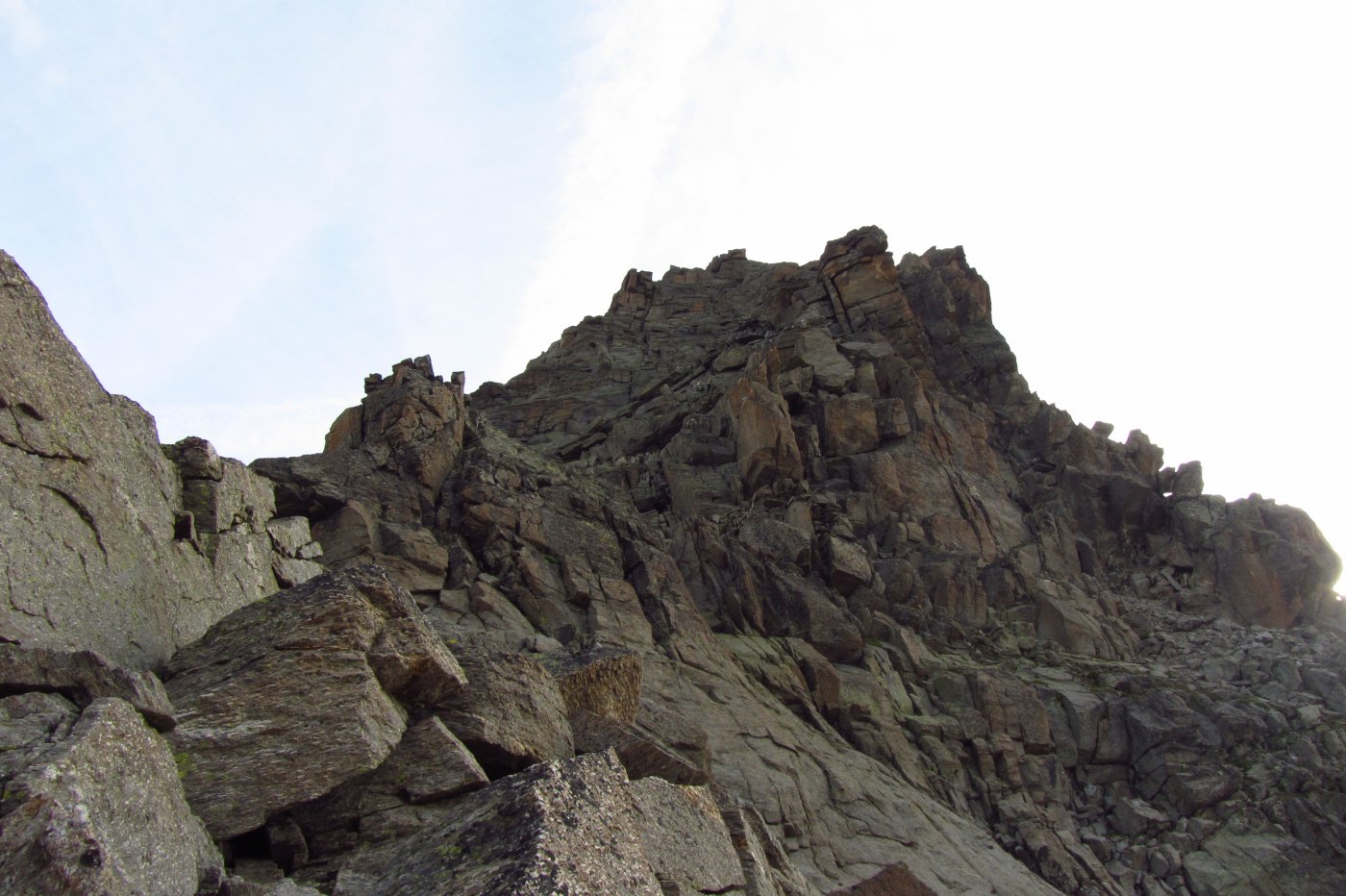 | lupo-solitario | Sulla sinistra il pendio da risalire per raggiungere la base della cresta | lupo-solitario | La placca iniziale di 120 metri in cui sono presenti le due varinati a destra e sinistra | lupo-solitario | Ormai fuori dalla placca di 120 metri | lupo-solitario | Primi due torrioni superati | lupo-solitario | Ultimi torrioni prima del tratto finale | lupo-solitario | Uno sguardo verso il basso | lupo-solitario | Ultimi metri prima della vetta | lupo-solitario | L'itineraio di salita con le tre varianti sulla placca iniziale. Quella gialla è la via percorsa da Cretier