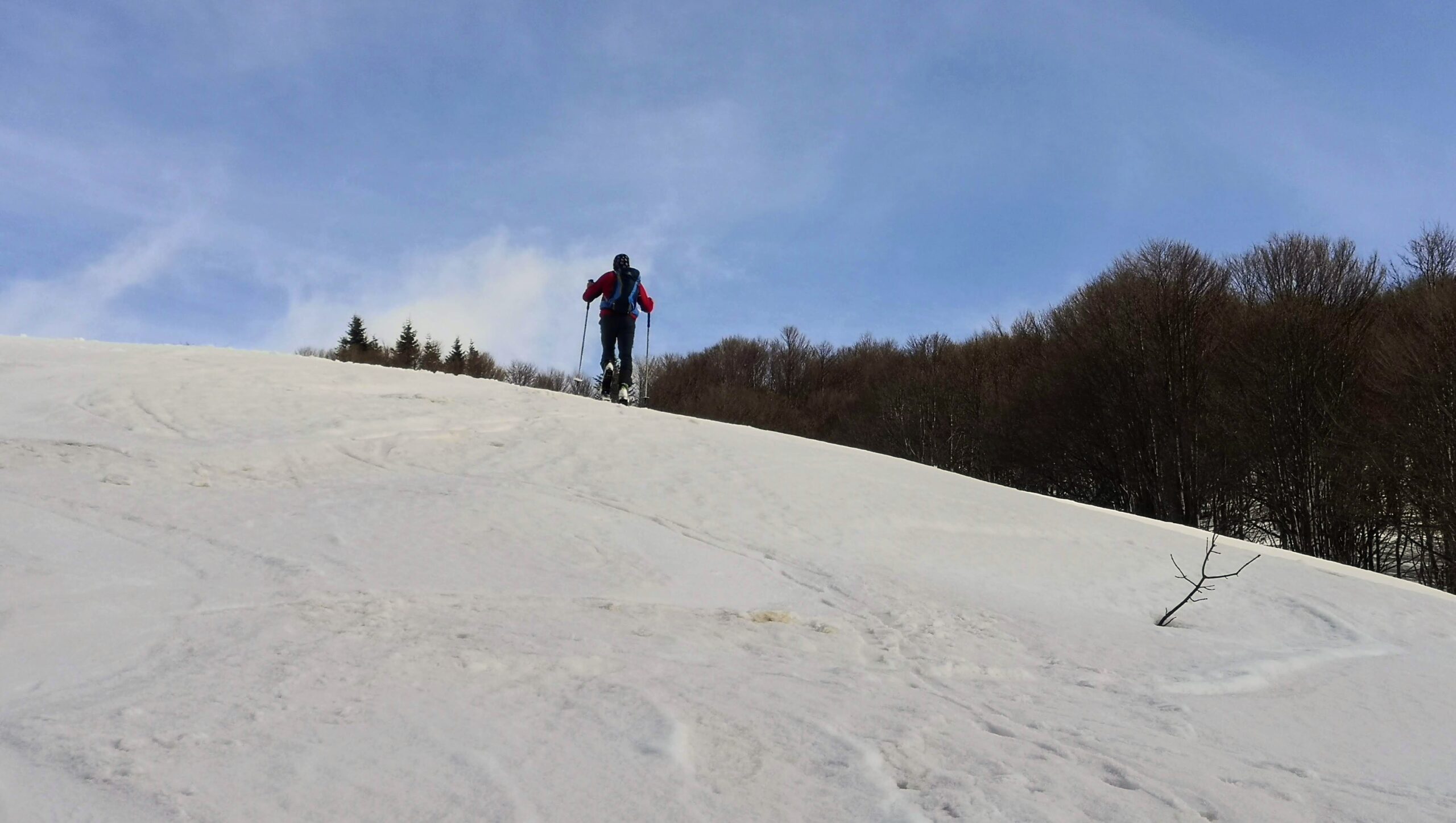 Si parte ancora sci ai piedi da Bossea anche se poi ci sono già alcuni tratti al sole in cui manca le neve. Abbiamo raggiunto Cima…