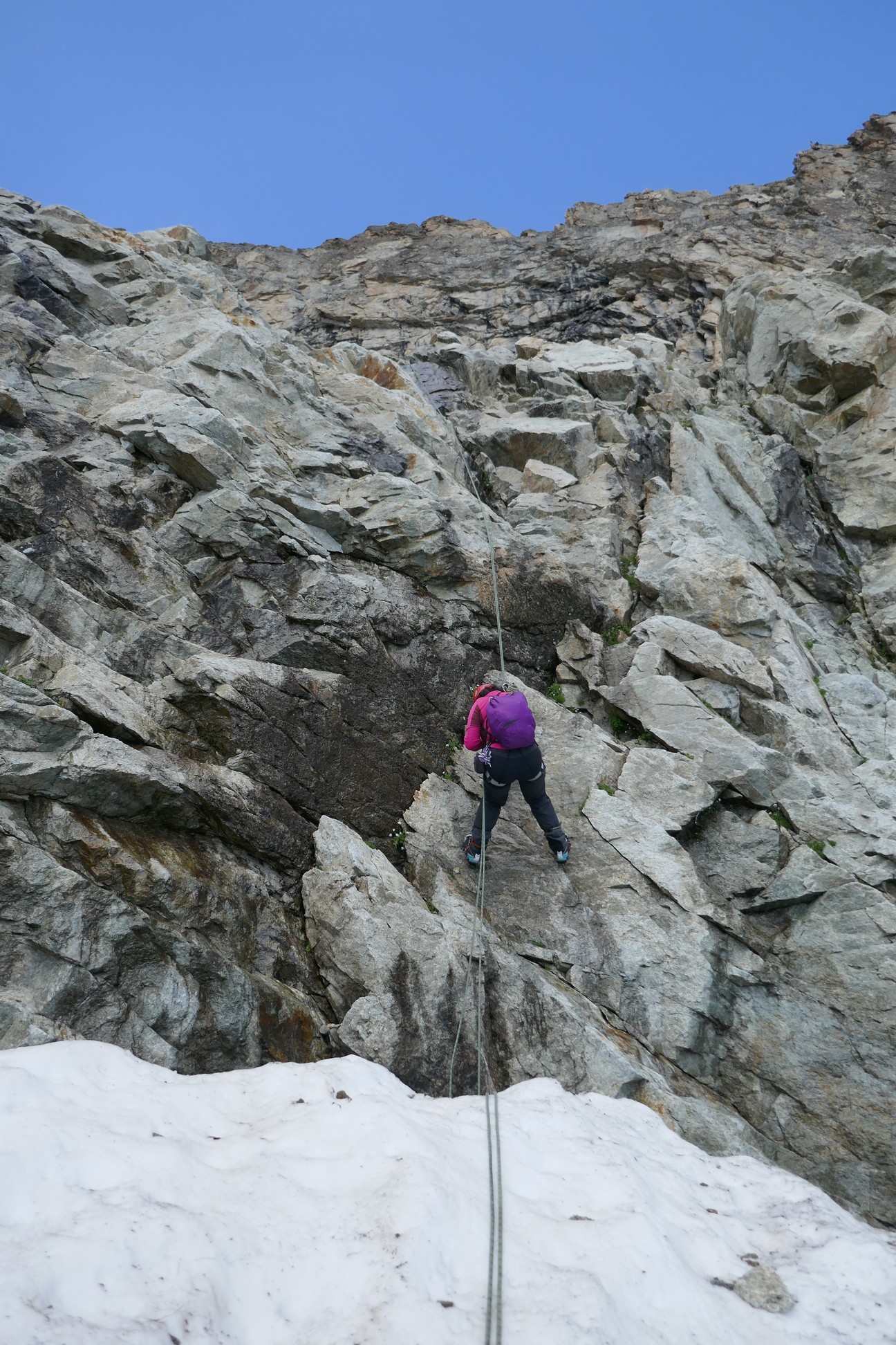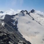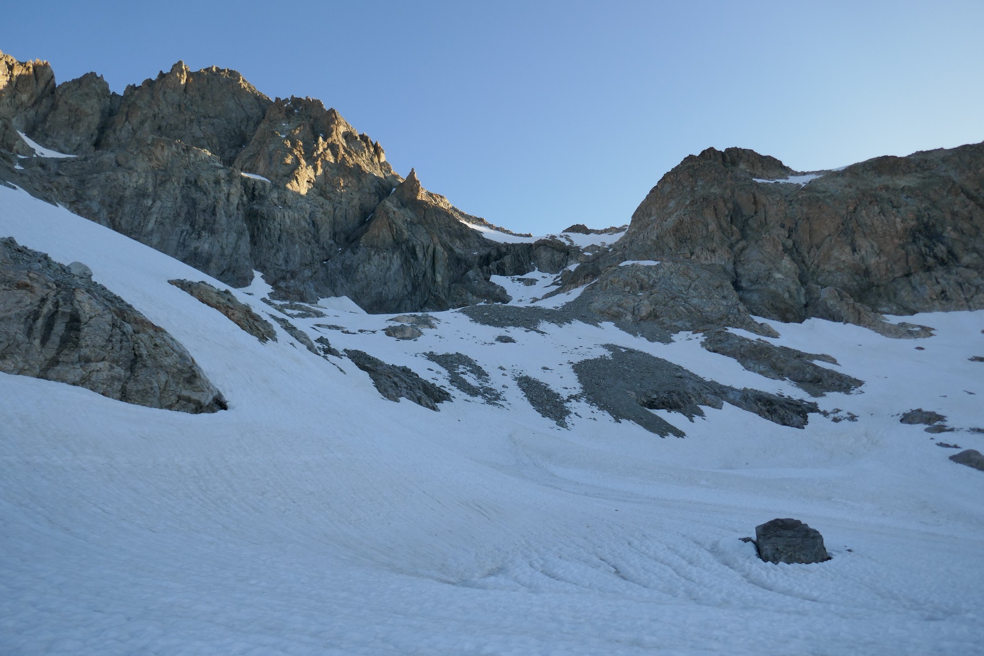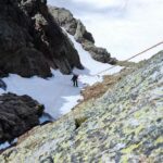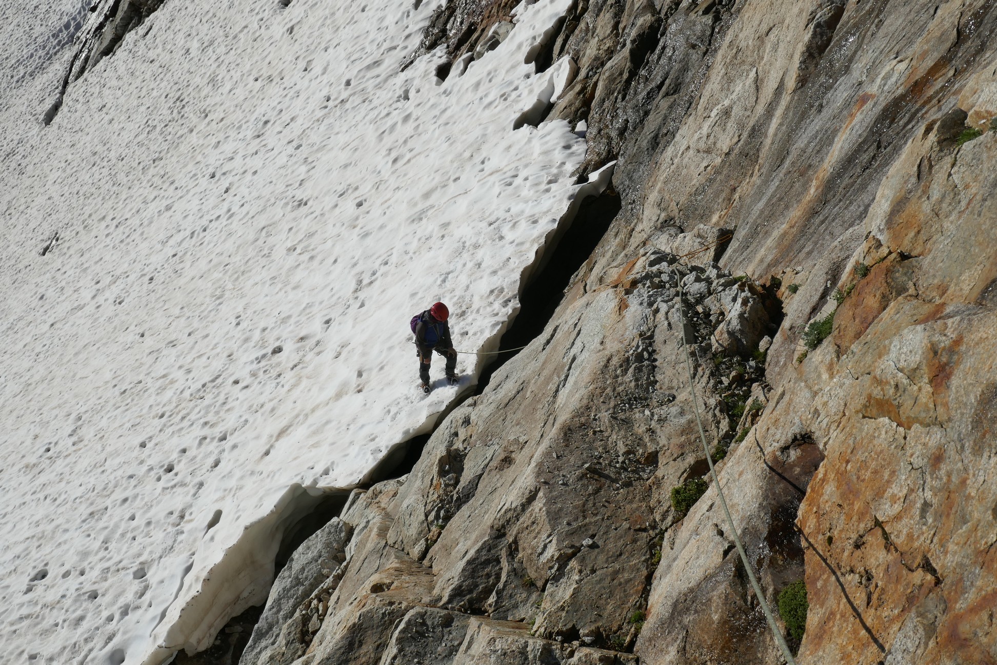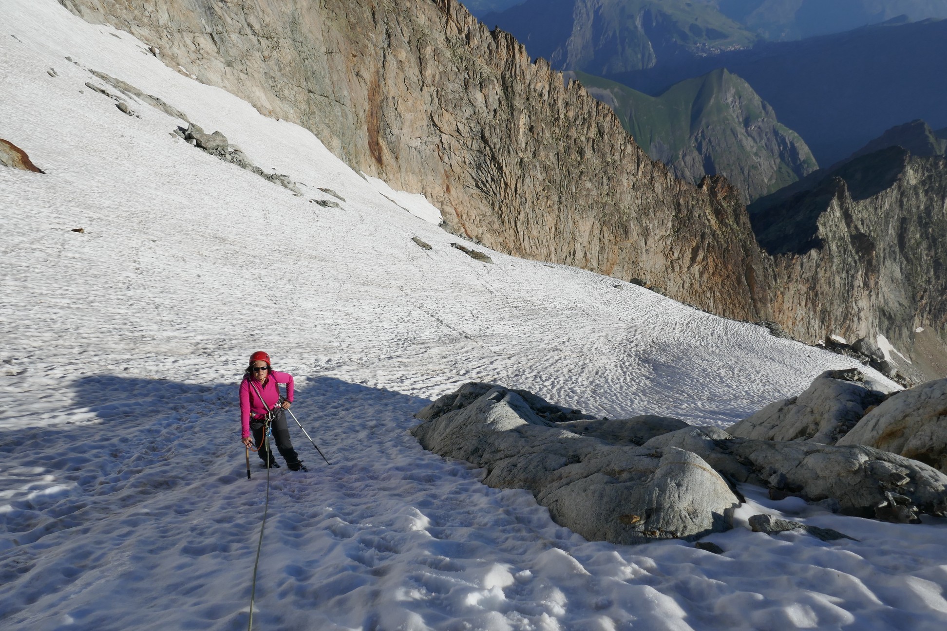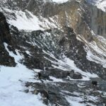 | m-gulliver | percorso parte alta (foto luglio 2020) | m-gulliver | bivacco | m-gulliver | il croux in vista | m-gulliver | superamento terminale già aperta | m-gulliver | sui quel che resta del ghiacciaio | m-gulliver | cresta finale (a dx la cima sud) | m-gulliver | cresta finale | m-gulliver | in discesa sopra la barra rocciosa | m-gulliver | doppia per superare la terminale | m-gulliver | la bellissima cascata de la Freide Pisse