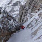 | m-gulliver | parete e percorso | m-gulliver | dopo la conoide sotto lo strapiombo | m-gulliver | la placca coperta da pochi cm di neve | m-gulliver | verso valle | m-gulliver | pendio finale | m-gulliver | l'uscita dalla vetta