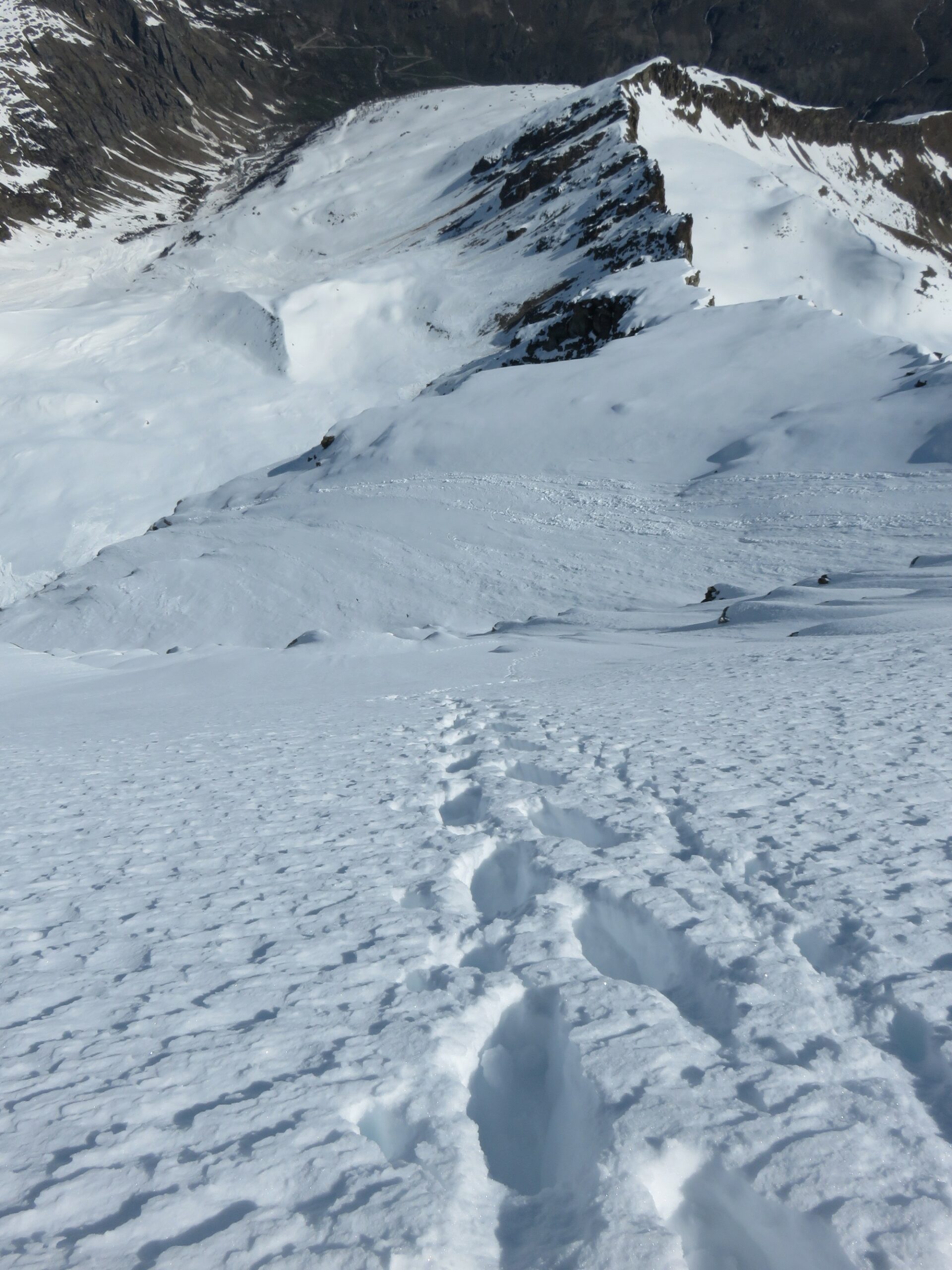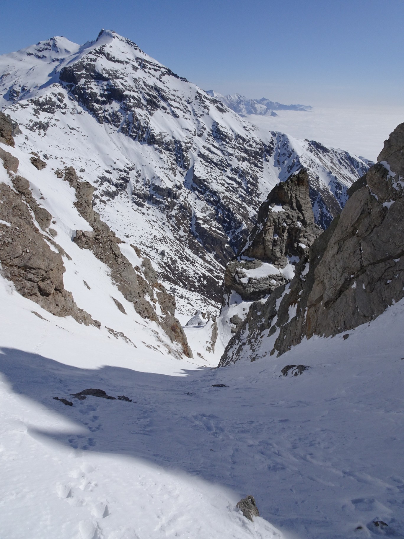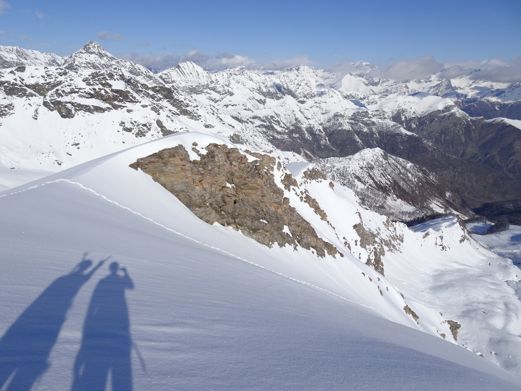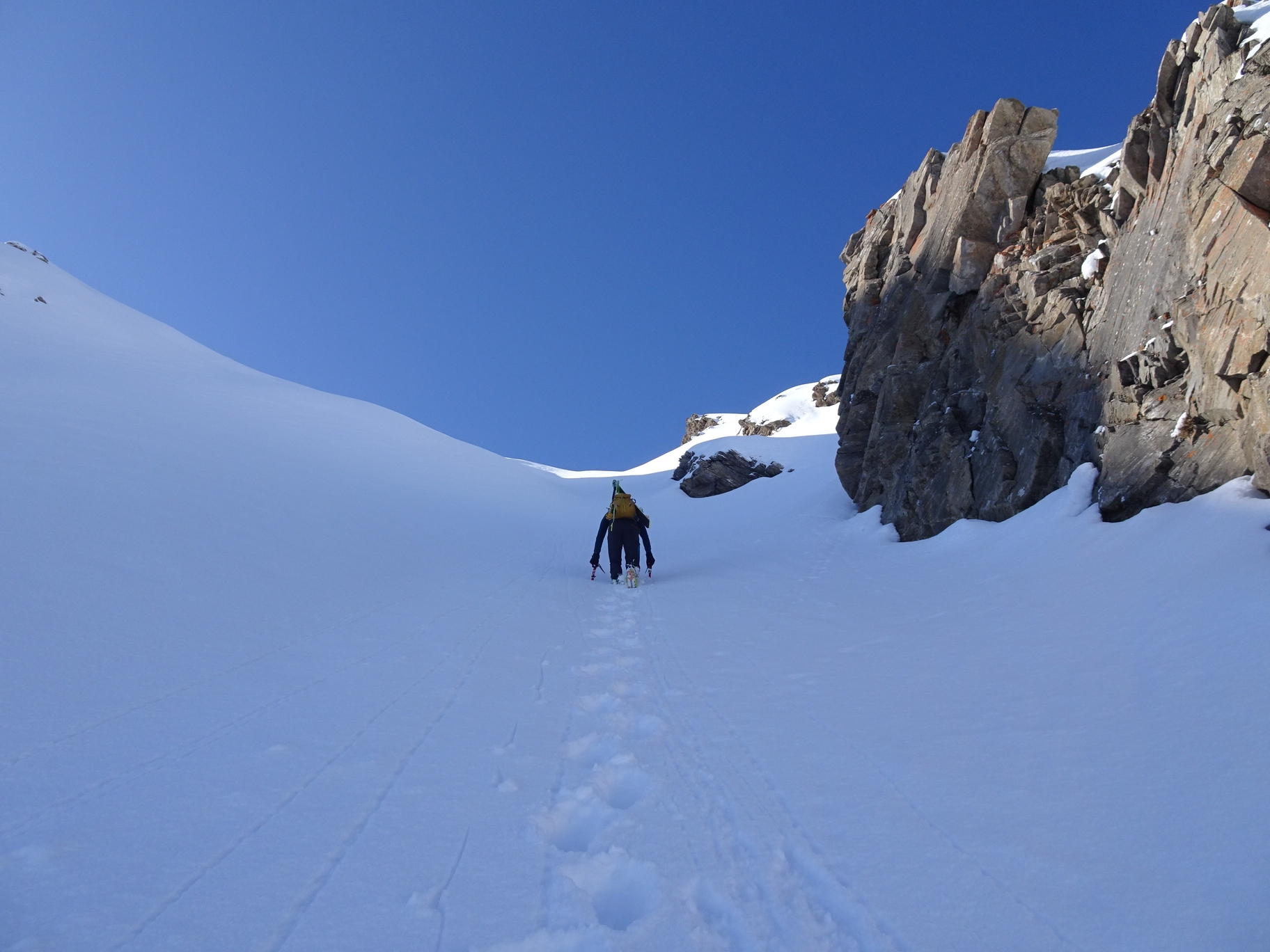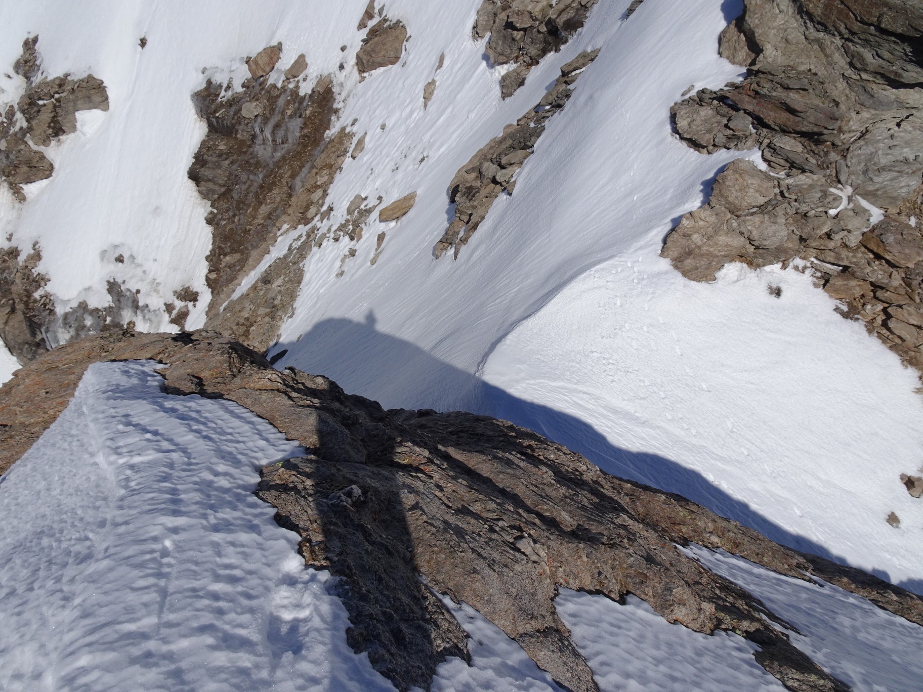 | m-gulliver | Poco sotto l'uscita in cresta | m-gulliver | I due percorsi visti dal ghiacciaio | m-gulliver | Sulla fascia mediana verso il muro finale | m-gulliver | La cresta percorsa in discesa vista da poco prima di raggiungere il colle del Carro | m-gulliver | Verso l'uscita del canale inferiore | m-gulliver | Cresta di discesa dalla cima | m-gulliver | Verso la vetta | m-gulliver | l'uscita dalla vetta | m-gulliver | pendio finale | m-gulliver | verso valle | m-gulliver | la placca coperta da pochi cm di neve | m-gulliver | dopo la conoide sotto lo strapiombo | m-gulliver | parete e percorso | m-gulliver | Alla base della bastionata | m-gulliver | Canale delle Monache