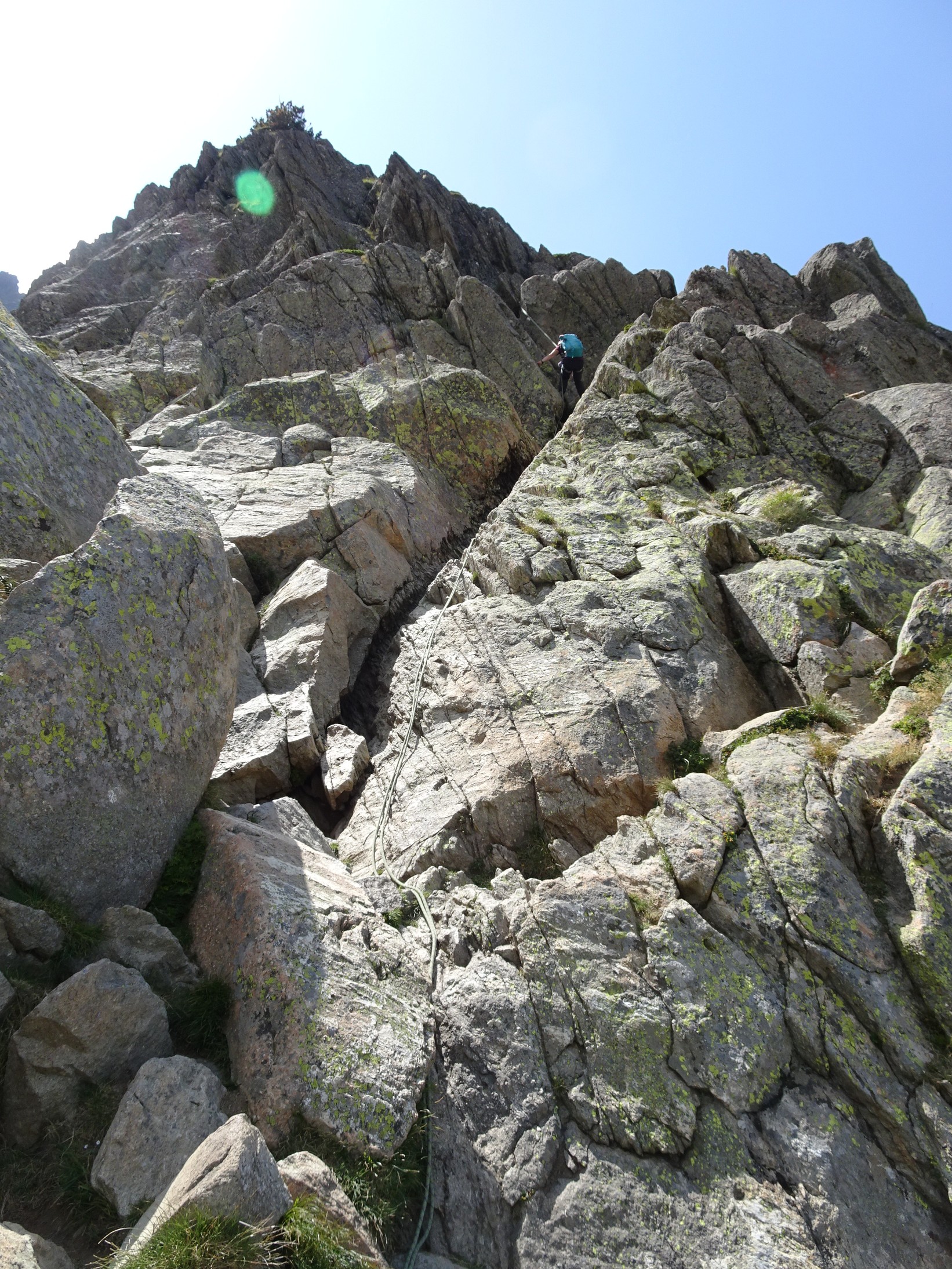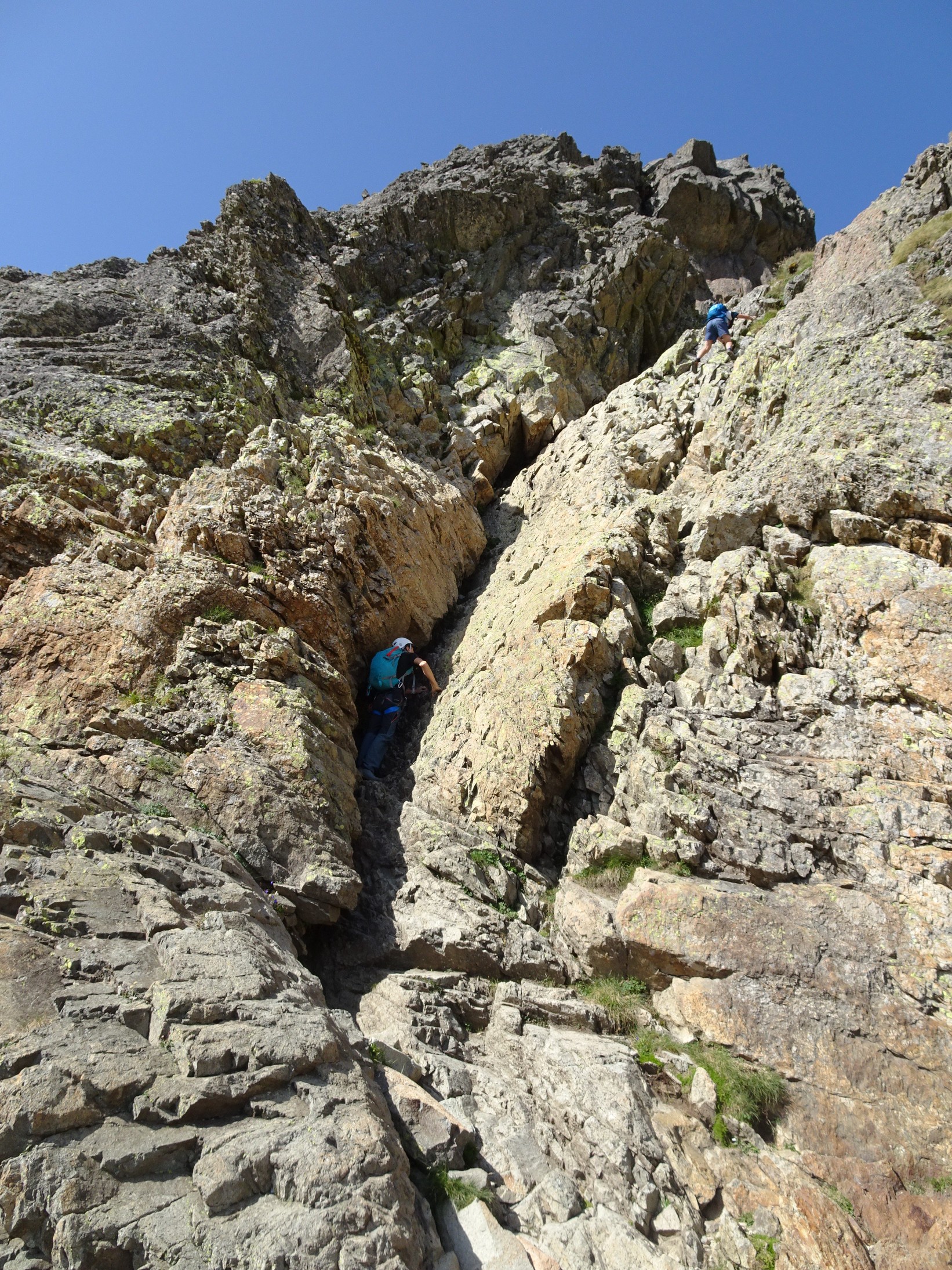| m-gulliver | Il percorso di salite visto da Nord-Est dalla stazione di arrivo degli impianti di Artouste | m-gulliver | Il versante dove passa la normale visto da poco oltre il Col de Suzon | m-gulliver | il camino iniziale poco sotto il passo chiave | m-gulliver | Il secondo camino | m-gulliver | Il terzo camino | m-gulliver | La cima di Spagna vista dal colletto fra le due cime | m-gulliver | Doppia nel camino iniziale