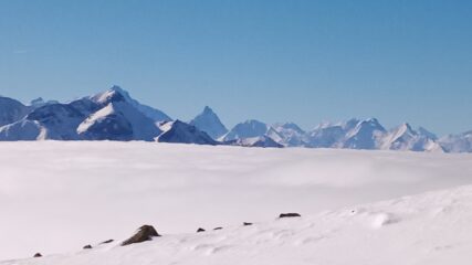 40 minuti a piedi, quasi fino a Grand Chamen. Buon rigelo notturno e firn d.o.c. sciabilità quasi ottima. Bella anche la cresta finale. Indispensabili ramponi…