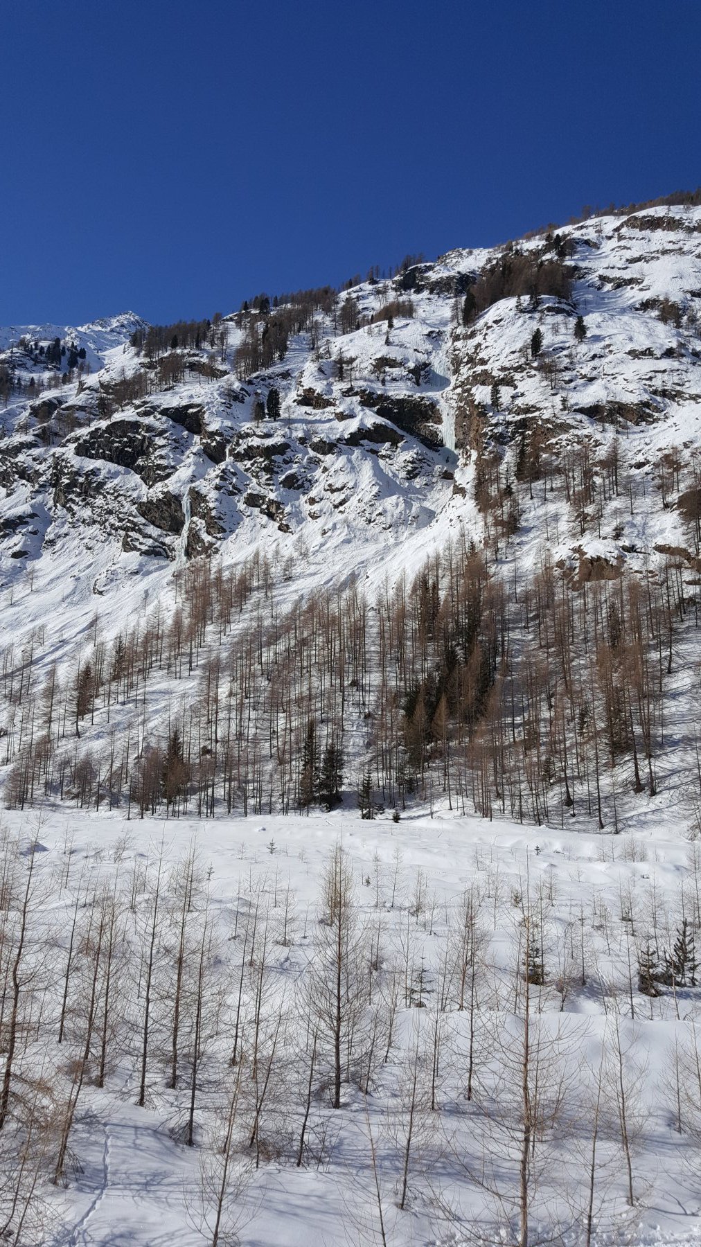 La situazione odierna: Sentiero ben tracciato sib parte dall'hotel con parcheggio. Il primo tiro è in neve con beve muro che si può fare…