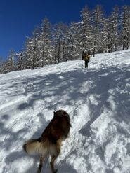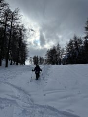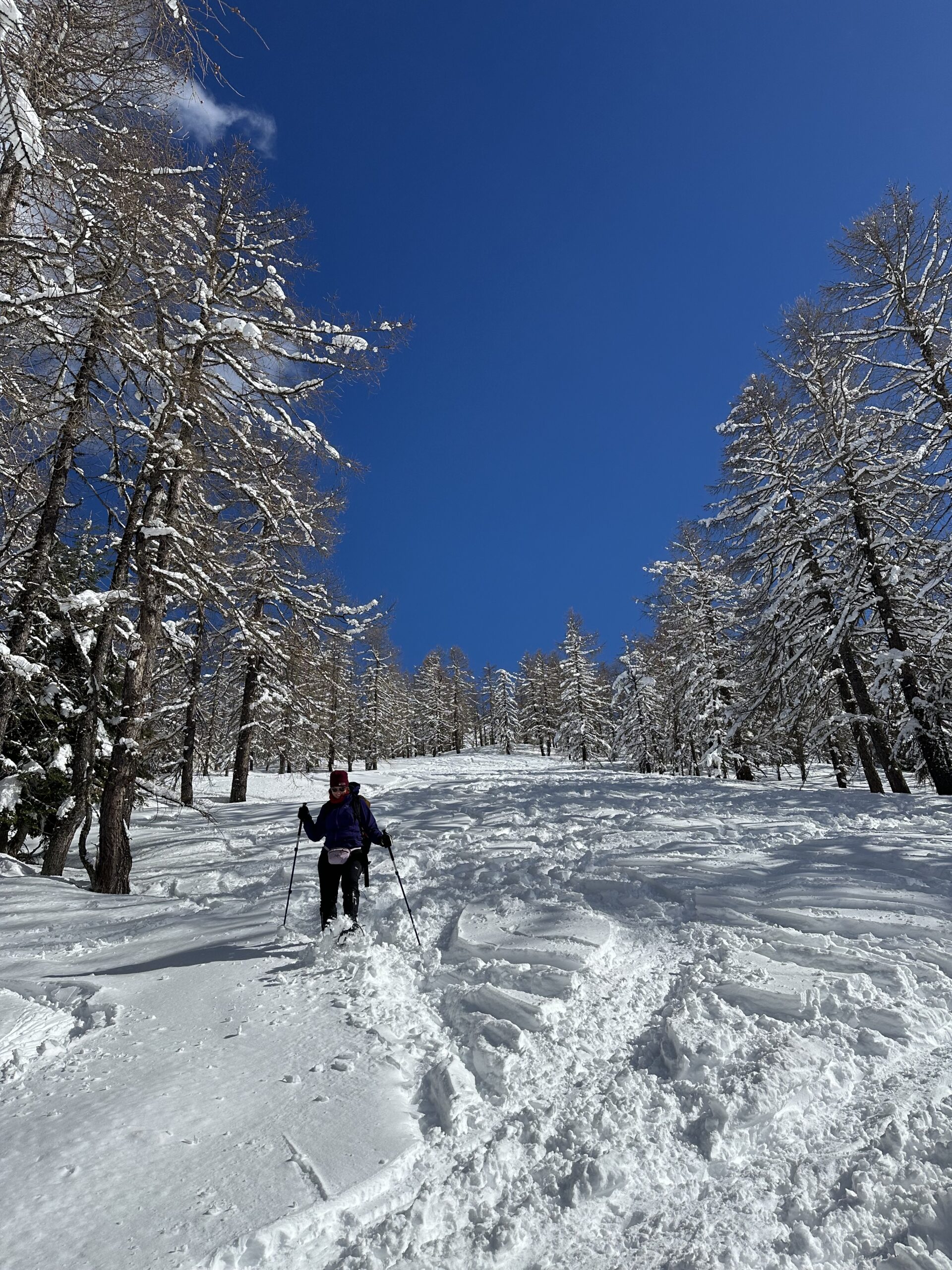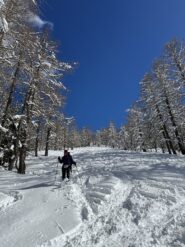 Partiti tardi e trovata neve bella bella in alto (discesa dalla cima diretta massima pendenza) e ovviamente un po’ pesante in basso ma sempre…