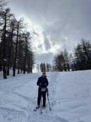 Tutto ben innevato, pure gli alberi, sembra pieno inverno. Neve che ha subito la pioggia di ieri fino a circa metà gita poi diventata neve…