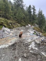 Fatto giro senza la parte di statale sentieri ben puliti con qualche brevissimo punto di fango; due cani maremmani con mucche e capre alle baite…