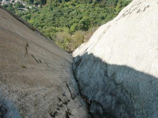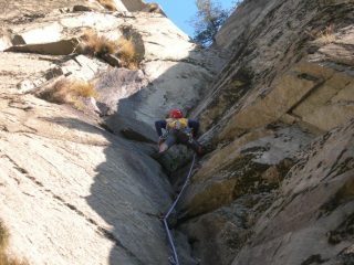 via di un certo impegno,i primi tiri servono di preparazione alla fessura che abbiamo trovato con acqua nonostante il secco, ma il diedro successivo…