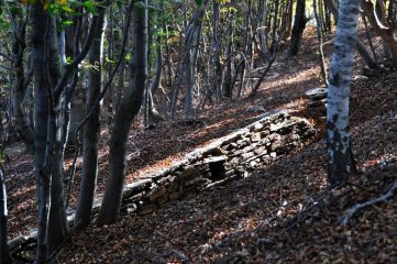 trincee ancora in buono stato che percorrono e girano la vetta, furono fatte costruire dal generale Cadorna per fronteggiare un'invasione che mai si svolse.In discesa…
