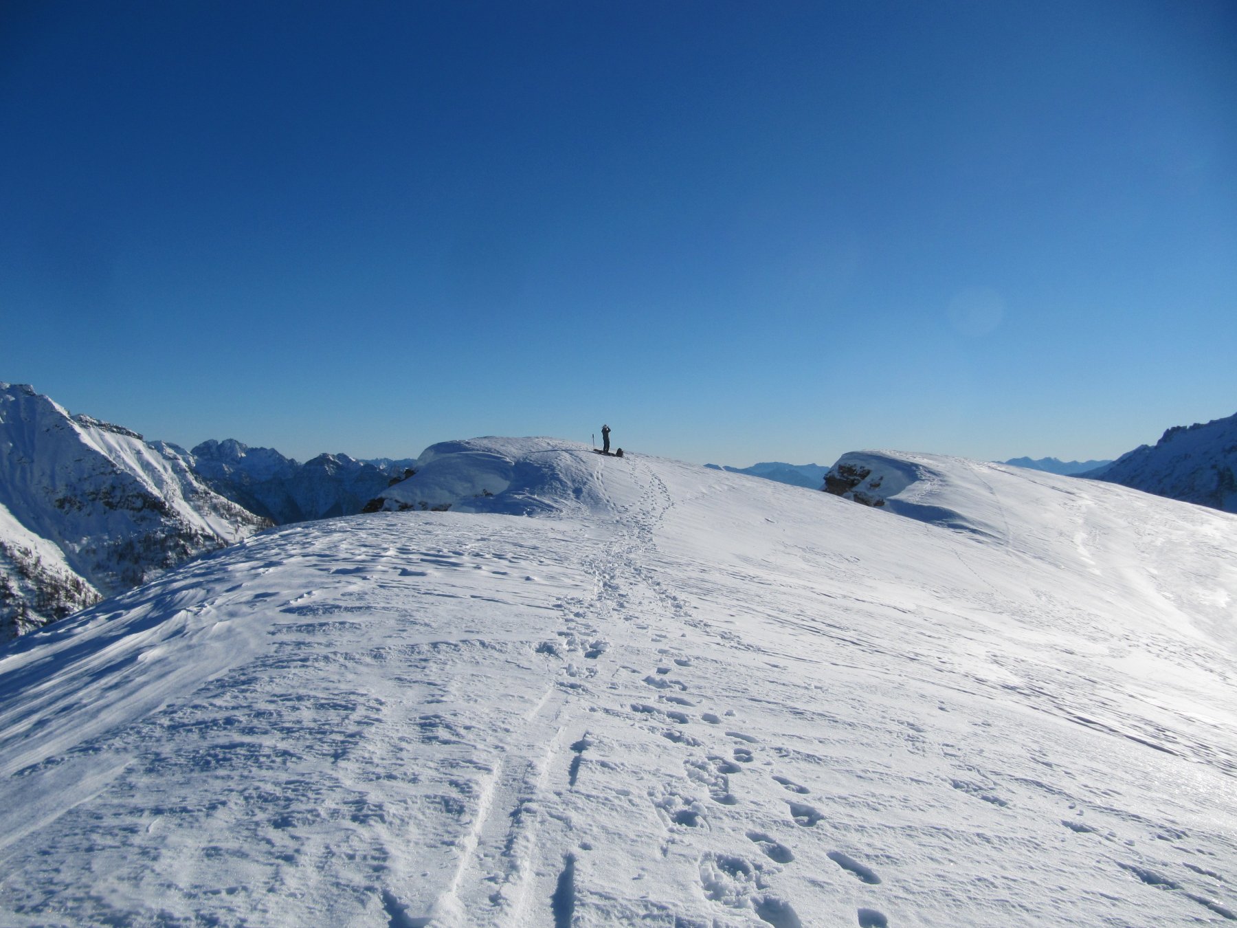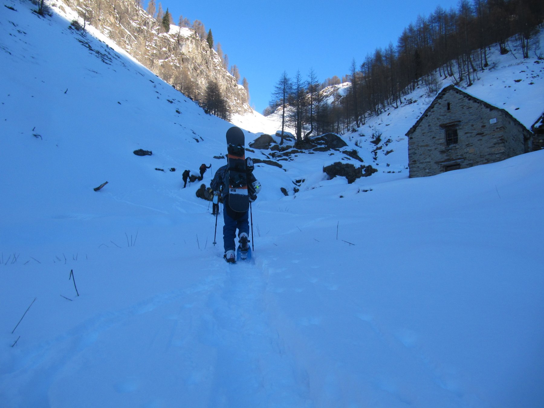 Inaspettatamente, bellissima neve. Poca però, in basso. Parte in alto della gita sicura, parte in bassa a seconda delle condizioni della neve. Vedi tutto