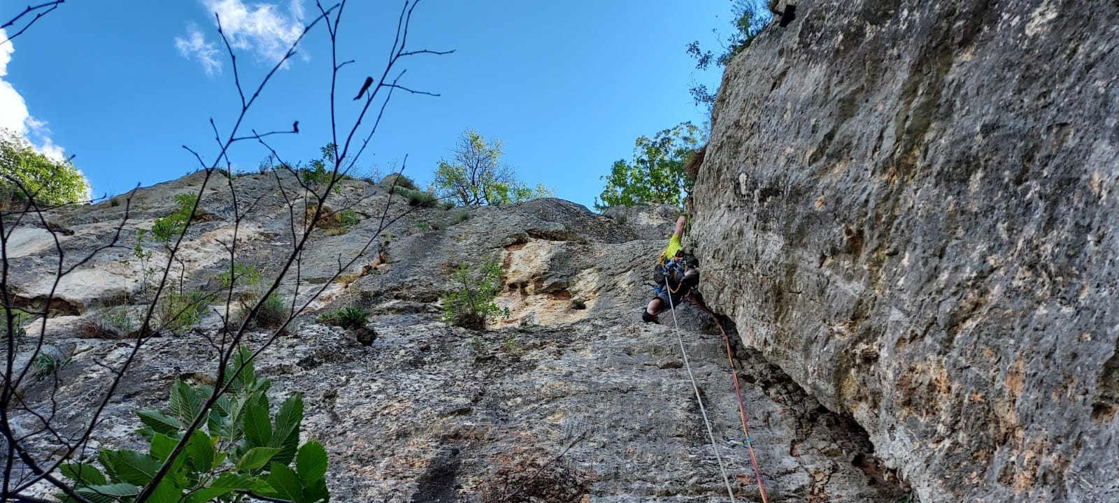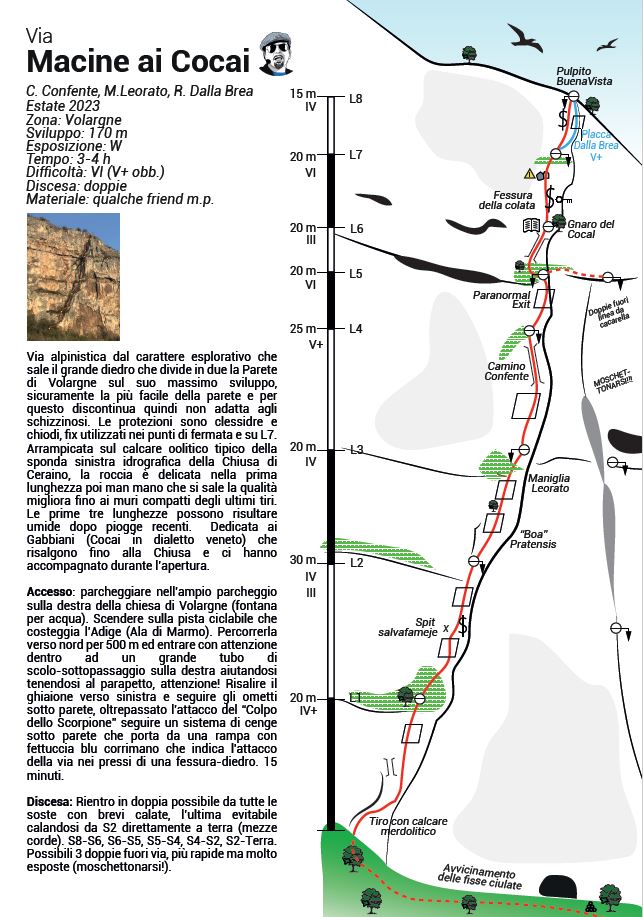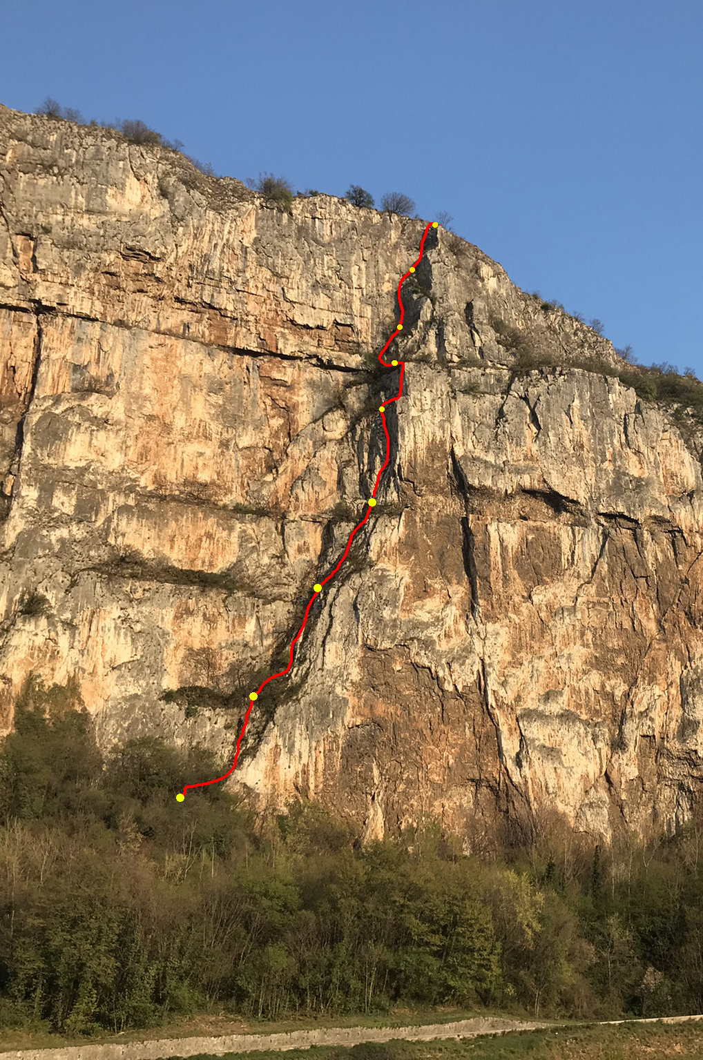 Individuata e salita con l'aiuto degli aspiranti istruttori della scuola di Alpinismo di Montecchio Maggiore (VI).