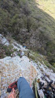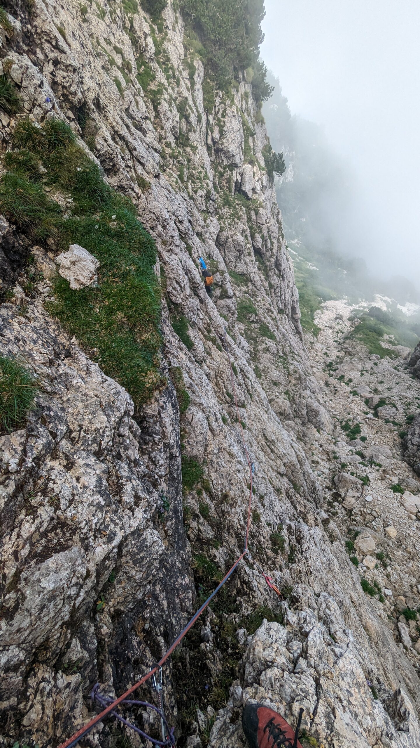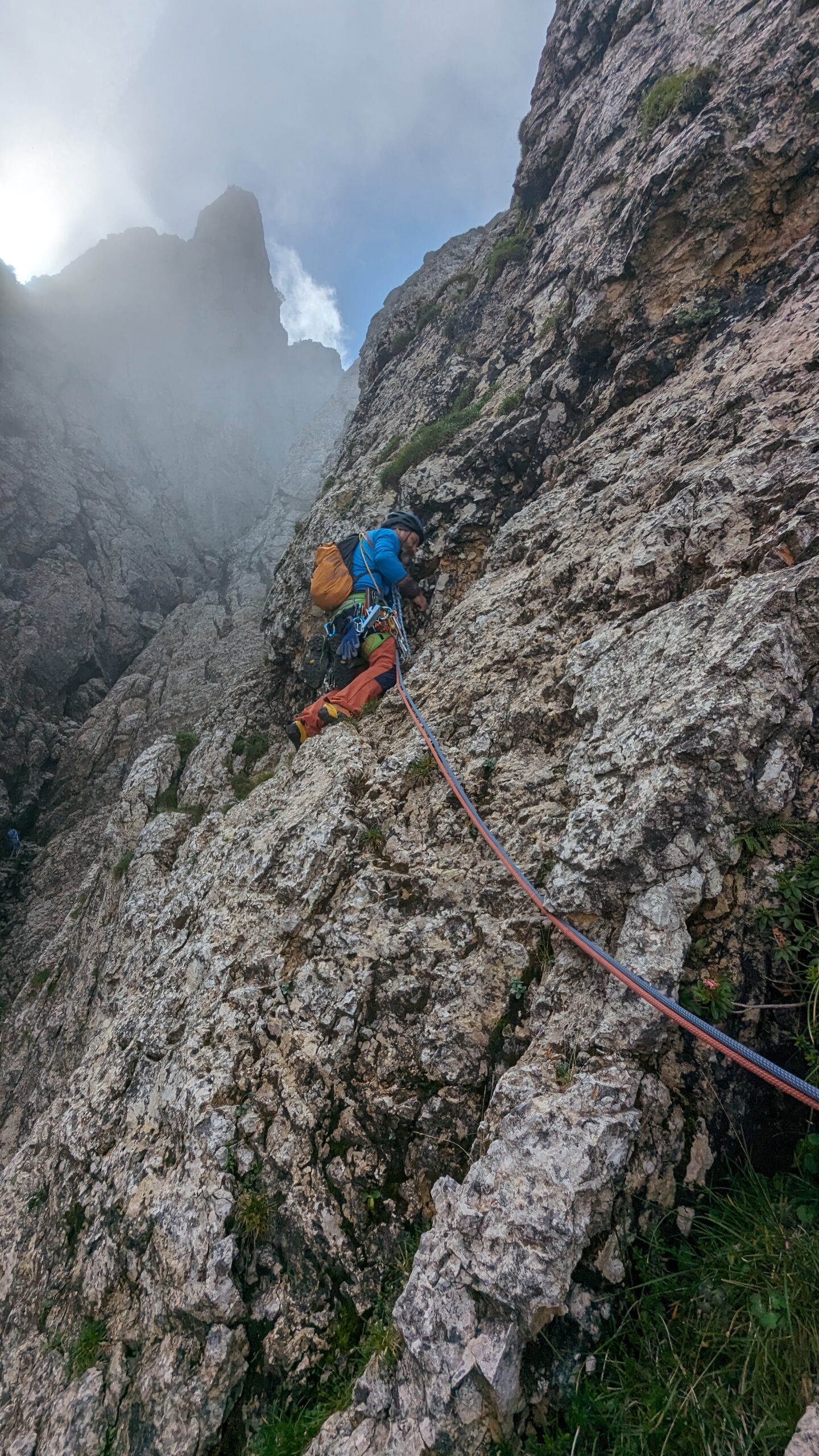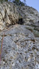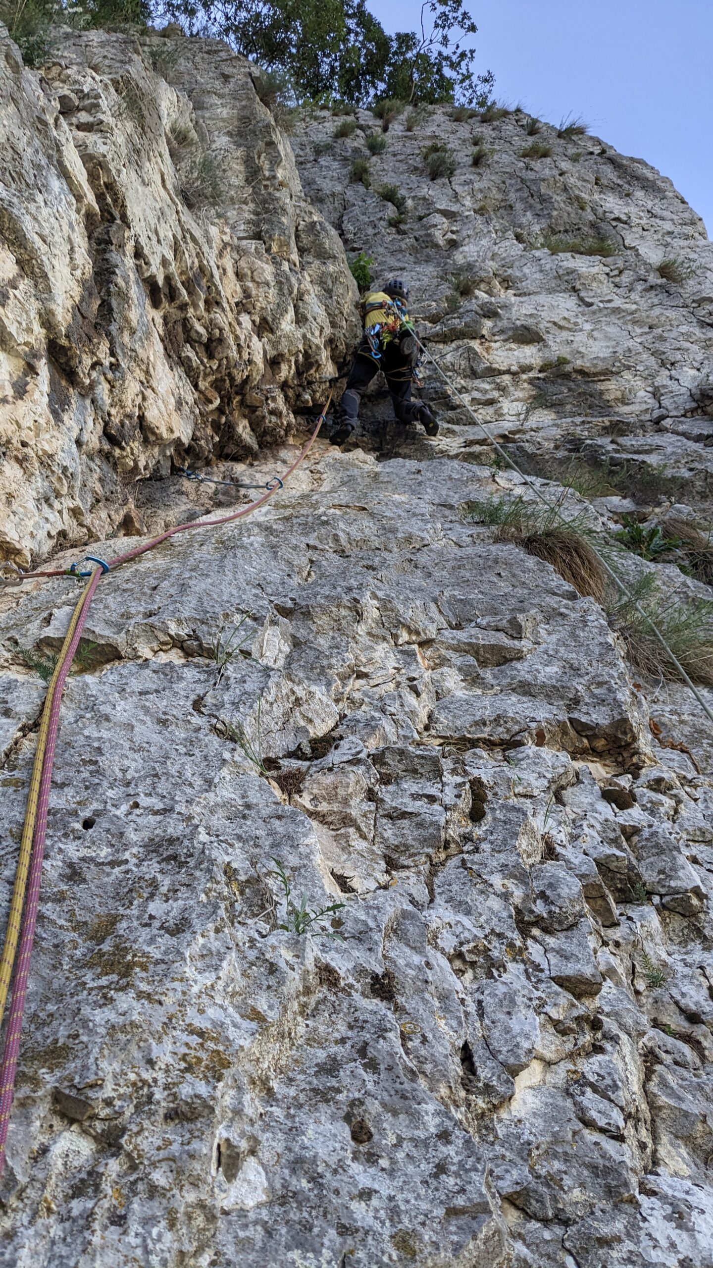 Individuata e salita con l'aiuto degli aspiranti istruttori della scuola di Alpinismo di Montecchio Maggiore (VI).