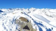| maraf | Verso Punta Tre Vescovi dalla Punta Lazoney | maraf | Piano di Loo | maraf | Punta Lazoney | maraf | dal colletto Bringuez verso il lago della Battaglia | maraf | il bellissimo Lago Bringuez | maraf | La nuovissima croce di vetta | maraf | veduta di Punta Guà scendendo verso Brusson | maraf | Al lago Gias di Beu | maraf | Verso il Colle Ferauda | maraf | Colle Ferauda in vista | maraf | Affaccio sul Gran Paradiso | maraf | Ometto all'estrema dx della cresta | maraf | la cuspide sommitale e il Monte Bianco | maraf | bellissimo lago (senza nome) nel vallone di Ferauda | maraf | Aggiramento Cima di Nivoletta