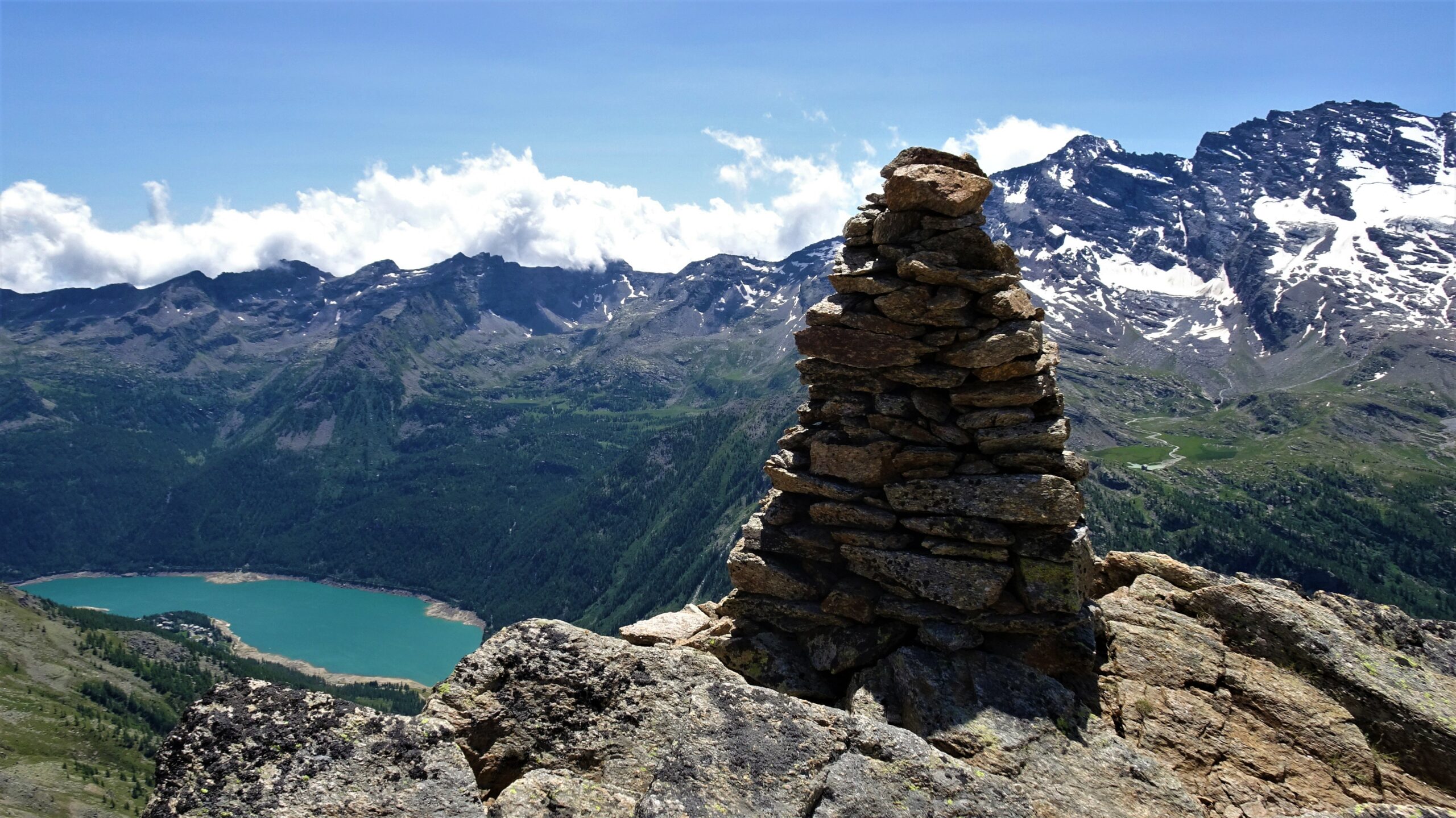 | maraf | dal colletto Bringuez verso il lago della Battaglia | maraf | il bellissimo Lago Bringuez | maraf | La nuovissima croce di vetta | maraf | veduta di Punta Guà scendendo verso Brusson
