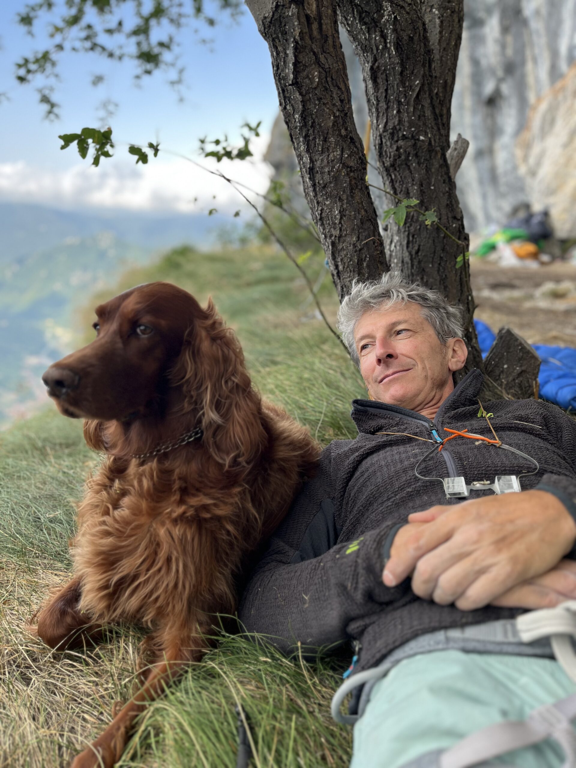 Il primo tiro è ben protetto, passetto sul primo tettino a saltare via il primo spit e poi sul tettone per beccare la frangia c'e'…