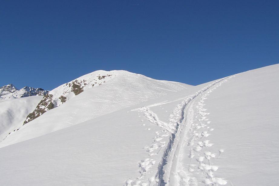 Saliti sulla traccia che segue la dorsalina in sinistra orografica e scesi nel bellissimo pendio centrale. Neve variabile a seconda delle esposizioni ma sempre molto…