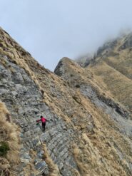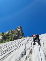 | marcestonex | Traccia verticale sulla parete | marcestonex | Terminale quasi sulla cresta, tra al massimo 2 giorni non sarà probabilmente più passabile | marcestonex | Sottile cresta finale | marcestonex | Quel che rimane del ghiacciaio arrivando al Sella