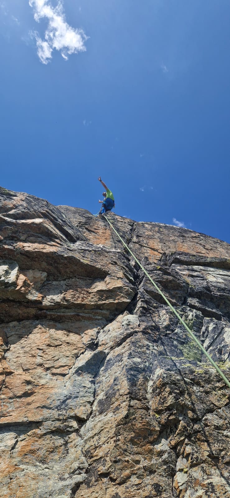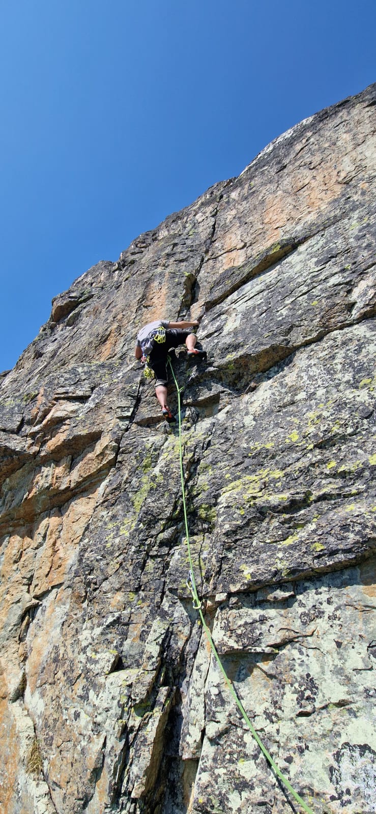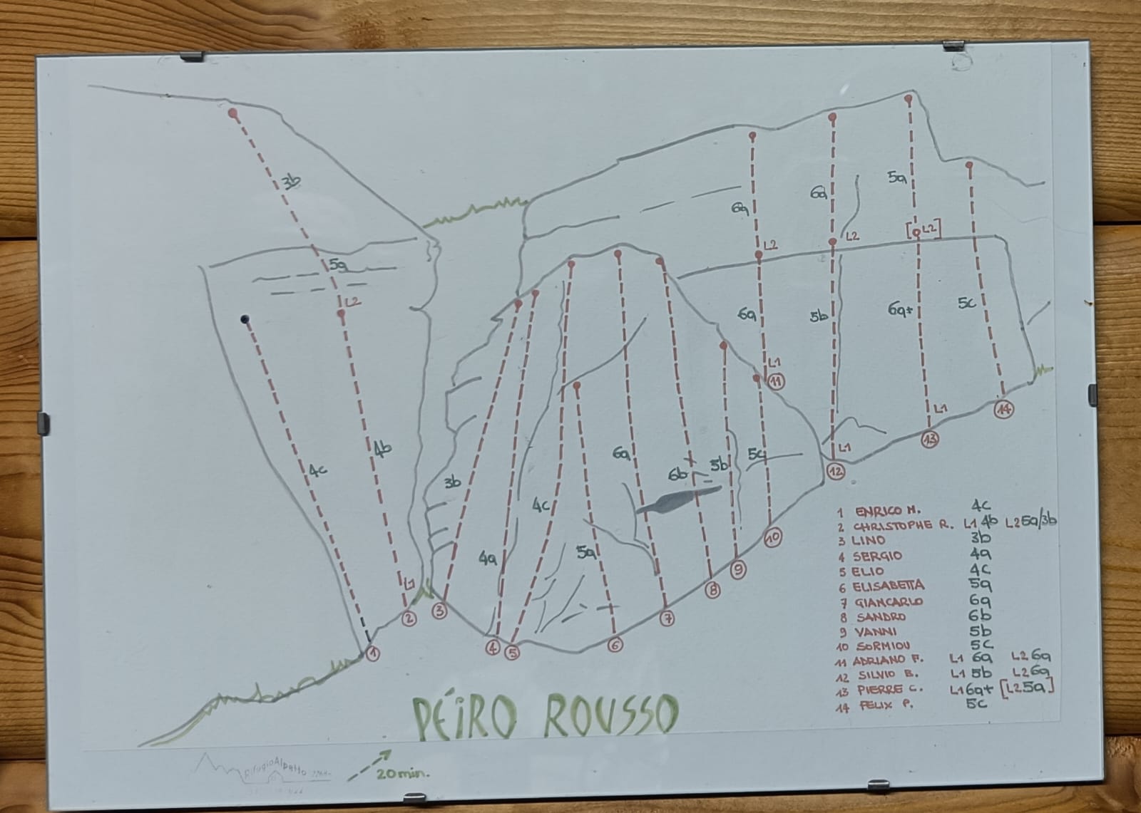 | marco-98 | | marco-98 | Il camino di L2. | marco-98 | Attacco della via. | marco-98 | Andrea su L1. | marco-98 | Dentro al camino di L2. | marco-98 | | marco-98 | Ometto di "vetta" (con sottostante diario di vetta). | marco-98 | In rosso il percorso abbozzato alla falesia superato il Rio. | marco-98 | Ometto esistente su sentiero in direzione Rif. Quintino Sella (in rosso il percorso abbozzato alla falesia). | marco-98 | Mappa falesia reperibile al Rif. Alpetto. | marco-98 | Marco in azione. | marco-98 | Simone in azione. | marco-98 | Andrea in discesa. | marco-98 | Simone in azione.